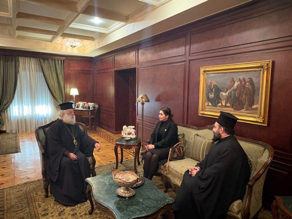 Εν συνεχεία, κατά τη συνάντηση με την αξιότιμη Βουλευτή, ο Μακαριώτατος εξέφρασε την ειλικρινή ευγνωμοσύνη του προς τον Εξοχώτατο Πρόεδρο της Αραβικής Δημοκρατίας της Αιγύπτου κ. Abdel Fattah el-Sisi, καθώς και προς το σύνολο των κρατικών θεσμών, για τη συνεχή στήριξή τους προς το Πατριαρχείο. Επεσήμανε δε ότι η στήριξη αυτή αποτελεί έμπρακτη έκφραση πρότυπο αρμονικής συνεργασίας μεταξύ Πολιτείας και Θρησκευτικών θεσμών, προς ωφέλεια του ανθρώπου και της κοινωνικής συνοχής.