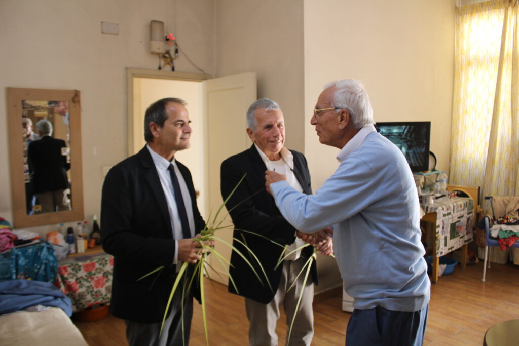 Ο κ. Βαφειάδης και ο κ. Νεαμονίτης επισκέφθηκαν και τα δωμάτια των αδύναμων – να μετακινηθούν – συμπαροίκων μας, αντάλλαξαν ευχές και συζήτησαν μαζί τους εναρμονιζόμενοι με το ανάλογο κλίμα των ημερών, της αγάπης, του σεβασμού και της προσφοράς!