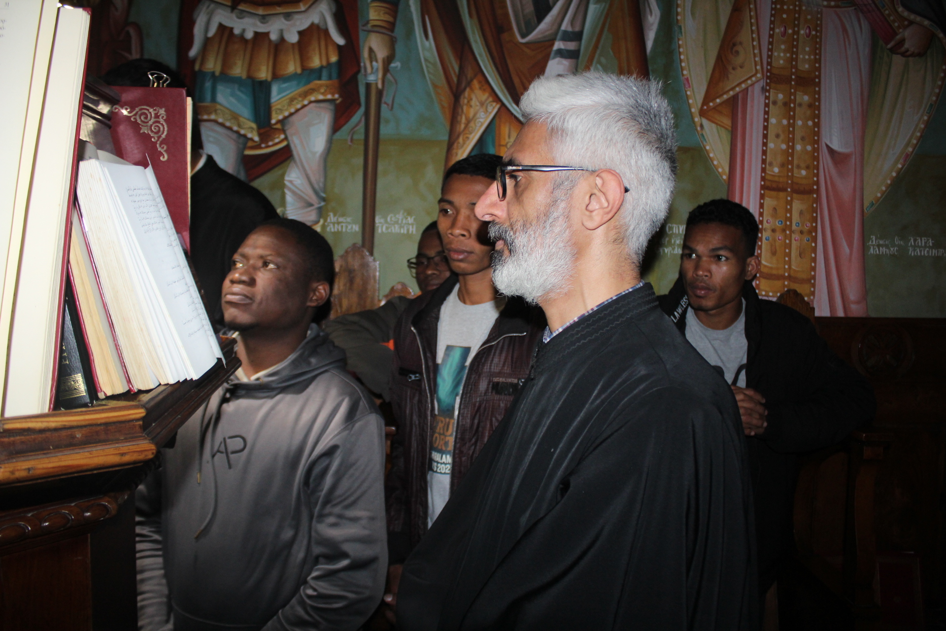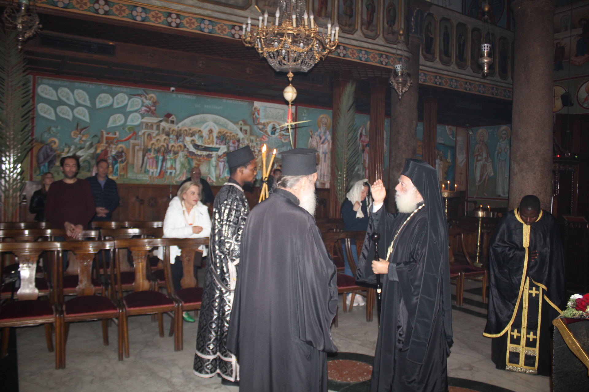 Ο Ιεράρχης της Ορθοδοξίας και του Ιεραποστολισμού, αφιχθείς πριν από λίγες μέρες απ’ το πολυκύμαντο ταξίδι του στη δύσκολη – εξαιτίας κινδύνων – χώρα του Κονγκό, σταθερός όπως κάθε Μεγάλη Εβδομάδα με κατάνυξη βιώνει την εσώτερη πορεία της ψυχής προς την Ανάσταση του Ιησού, η οποία αναγκαστικά περνά μέσα απ΄ το Θείο Μαρτύριο και την Σταύρωση του Θεανθρώπου.