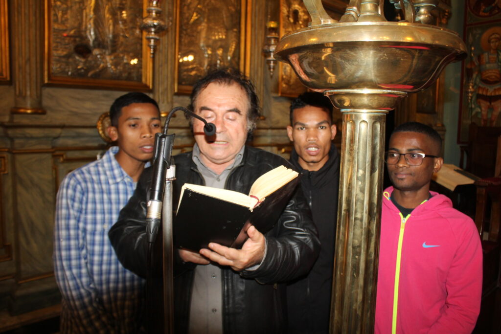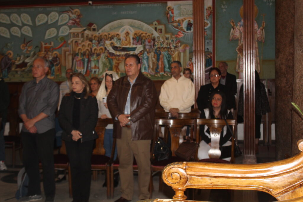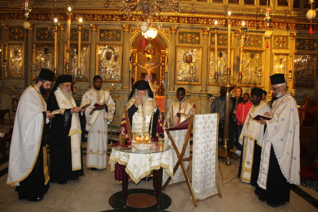 Το Ιερό Μυστήριο του Ευχελαίου τελέσθηκε στην Ιερά Μονή του Οσίου Σάββα του Ηγιασμένου, προεξάρχοντος του Πάπα και Πατριάρχη Αλεξανδρείας και Πάσης Αφρικής κ.κ. Θεοδώρου Β’ με παριστάμενο τον Πανιερώτατο Μητροπολίτη Ταμιάθεως κ. Γερμανό – Προϊστάμενο της ανωτέρω Ιεράς Μονής, και συμπροσευχόμενους τον Πανοσιολογιότατο Αρχιμανδρίτη κ. Επιφάνιο, τον Πανοσιολογιότατο Αρχιμανδρίτη κ. Μάρκο, τον Αραβόφωνο Ιερέα π. Σάμυ και όλους τους μαθητές της Πατριαρχικής Σχολής Άγιος Αθανάσιος. Ο Ιεροψάλτης Ιωάννης Γενειατάκης έψαλε μαζί με την ομάδα των μαθητών και απέδωσε με τη γνωστή του ικανότητα τους βυζαντινούς ύμνους.