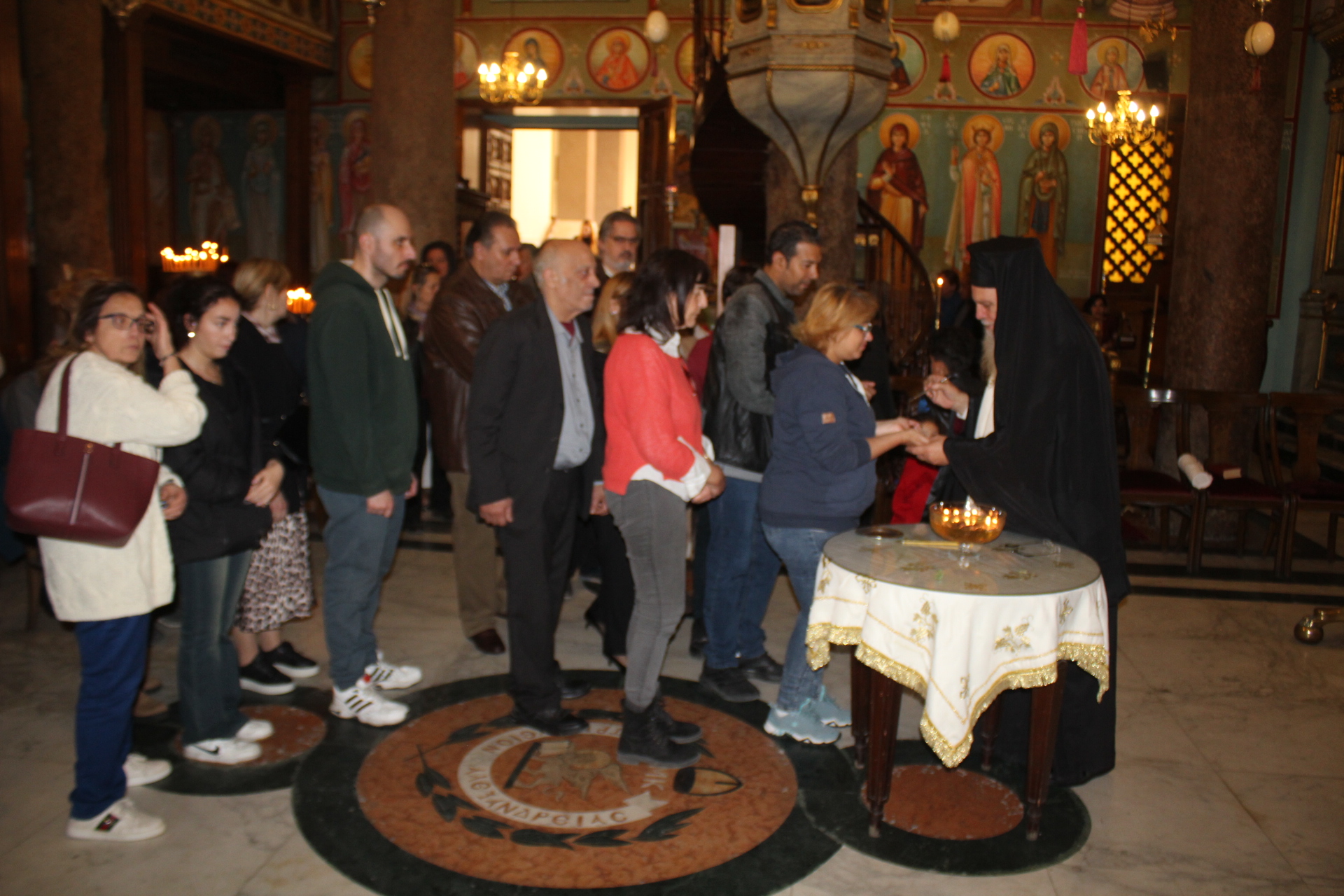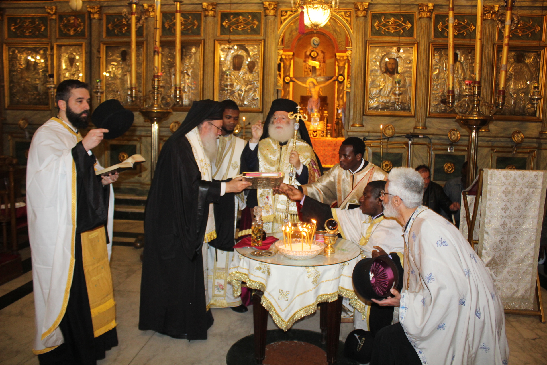 Το Ιερό Μυστήριο του Ευχελαίου τελέσθηκε στην Ιερά Μονή του Οσίου Σάββα του Ηγιασμένου, προεξάρχοντος του Πάπα και Πατριάρχη Αλεξανδρείας και Πάσης Αφρικής κ.κ. Θεοδώρου Β’ με παριστάμενο τον Πανιερώτατο Μητροπολίτη Ταμιάθεως κ. Γερμανό – Προϊστάμενο της ανωτέρω Ιεράς Μονής, και συμπροσευχόμενους τον Πανοσιολογιότατο Αρχιμανδρίτη κ. Επιφάνιο, τον Πανοσιολογιότατο Αρχιμανδρίτη κ. Μάρκο, τον Αραβόφωνο Ιερέα π. Σάμυ και όλους τους μαθητές της Πατριαρχικής Σχολής Άγιος Αθανάσιος. Ο Ιεροψάλτης Ιωάννης Γενειατάκης έψαλε μαζί με την ομάδα των μαθητών και απέδωσε με τη γνωστή του ικανότητα τους βυζαντινούς ύμνους.