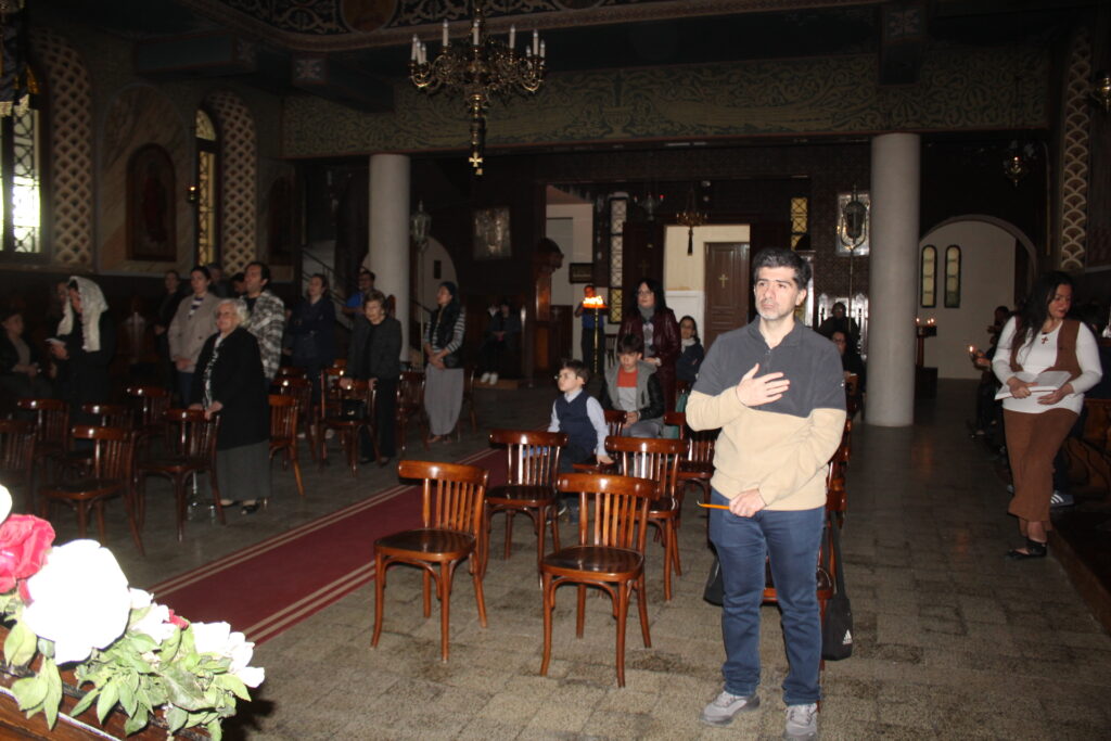 Στο μεγαλείο της Μεγάλης Πέμπτης προεξήρχε η μορφή του Πάπα και Πατριάρχη Αλεξανδρείας και Πάσης Αφρικής κ. Θεοδώρου Β’, με παριστάμενο τον εφημέριο Πανοσιολογιότατο Αρχιμανδρίτη κ. Αθανάσιο, συμπροσευχόμενους τον Πανοσιολογιότατο Αρχιμανδρίτη κ. Επιφάνιο, τον Αραβόφωνο Ιερέα π. Σάμυ και άλλους ιερείς της Πατριαρχικής Αυλής.