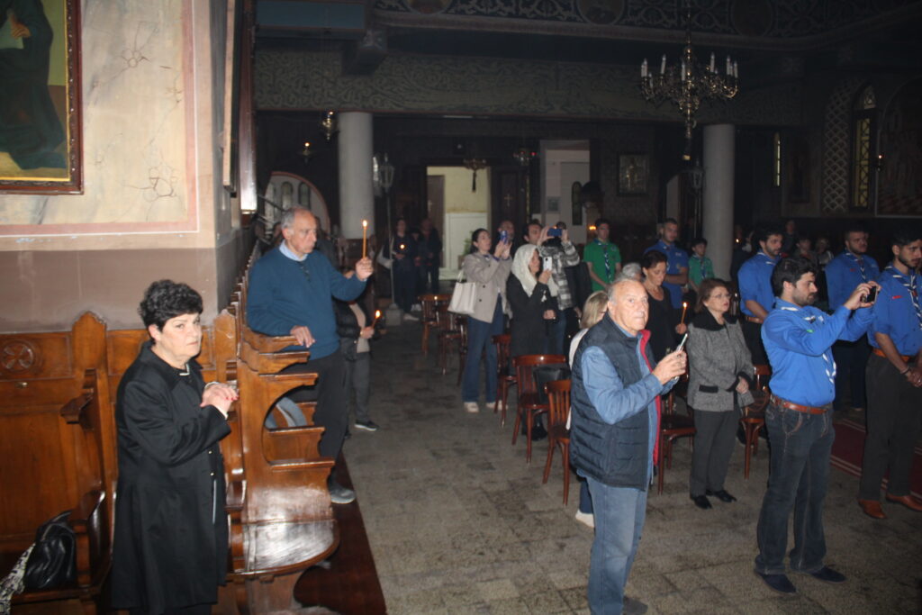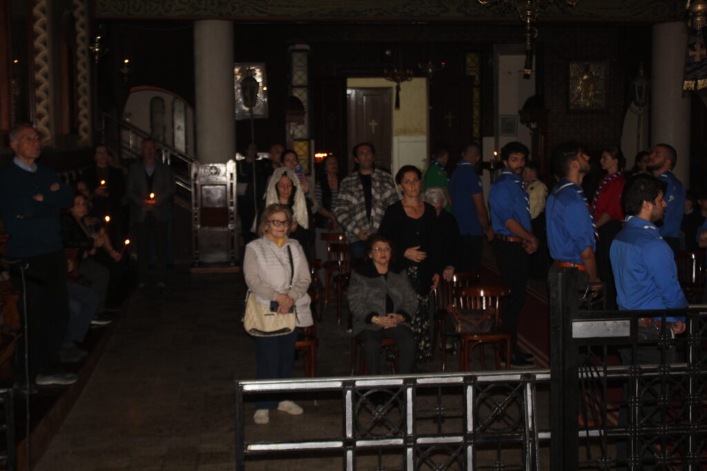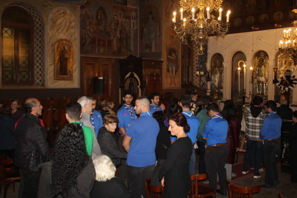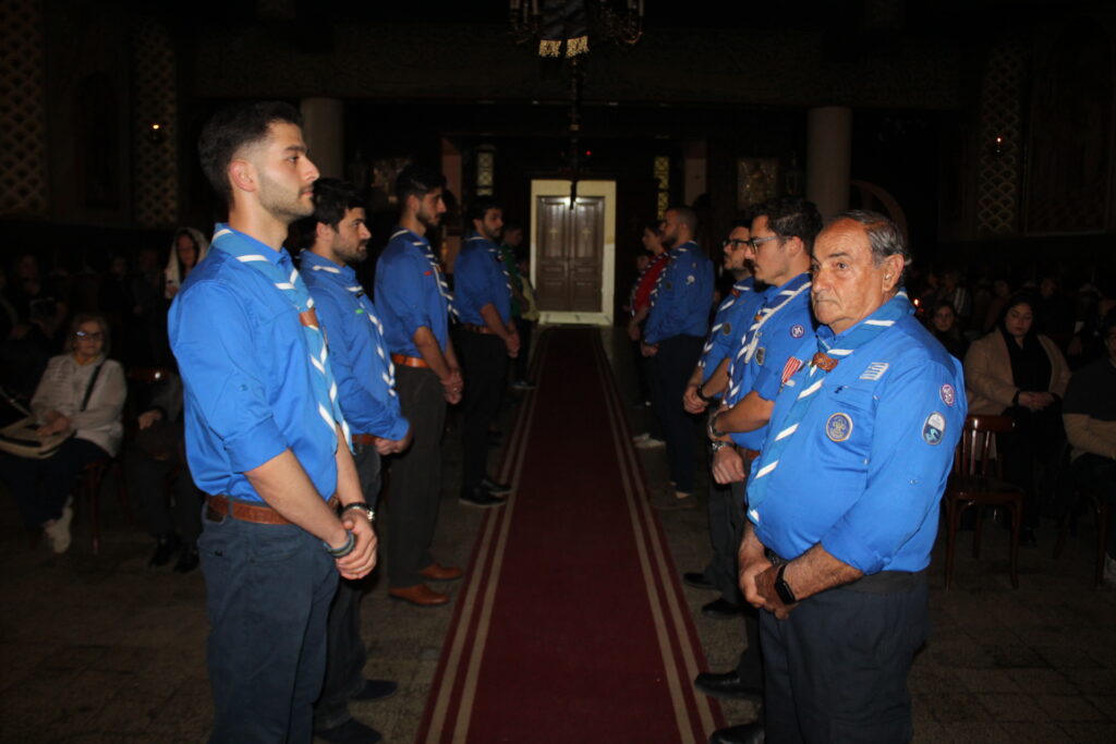 Άπαντες οι Πρόσκοποι, στα μέσα της αναγνώσεως των Ευαγγελίων και συγκεκριμένα κατά το Πέμπτο προς Έκτο Ευαγγέλιο, προσήλθαν εντός του Ιερού Ναού σχηματίζοντας έναν διάδρομο που παρέπεμπε στο δρόμο του σεβασμού, του δέους προς την Θυσία του Θεανθρώπου.
