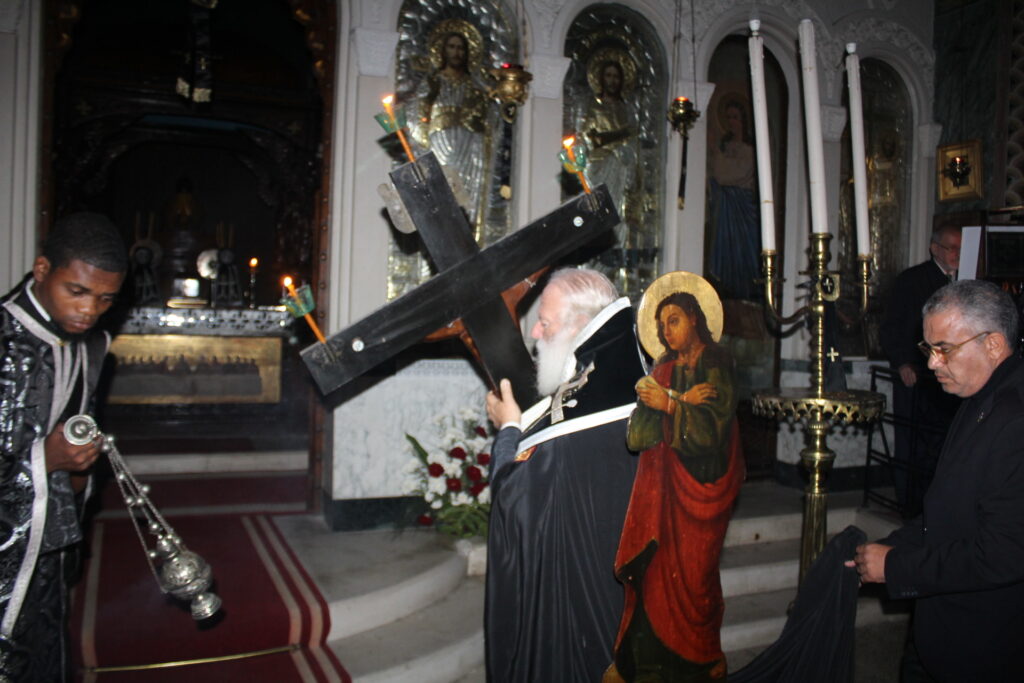 Η συγκίνηση διάχυτη στο πρόσωπο του Πάπα και Πατριάρχη Αλεξανδρείας και Πάσης Αφρικής κ. κ. Θεοδώρου Β’, καθώς μέσα στο Ναό οι φλόγες των κεριών και των καντηλιών σχημάτιζαν επί του προσώπου του έμψυχες σκιές, θαρρείς και οι παλιοί Αιγυπτιώτες που έφυγαν απ΄ τη ζωή, βίωναν μαζί με τους παριστάμενους πιστούς το μέγεθος και τη διάσταση της Υπέρτατης Θυσίας.