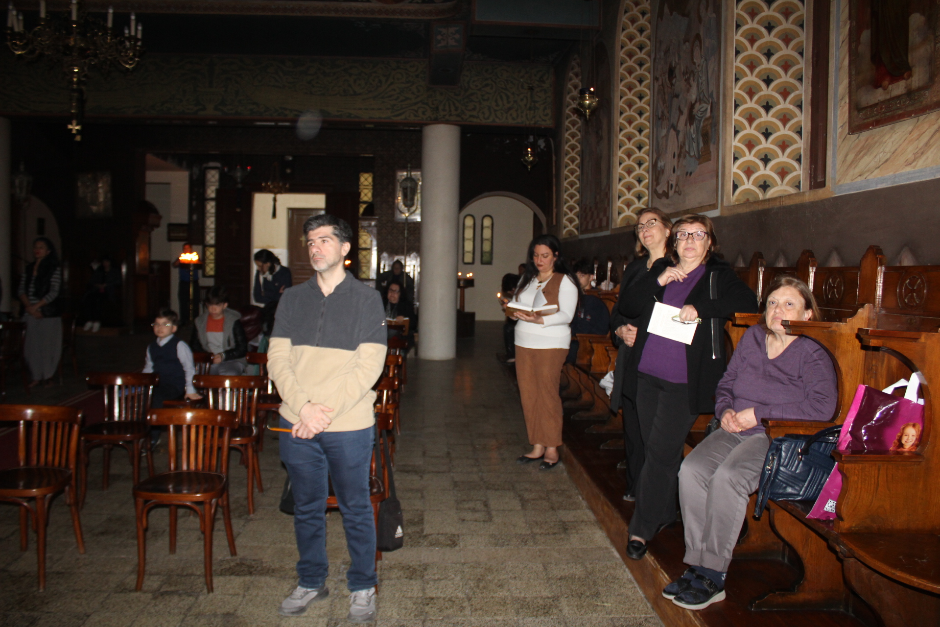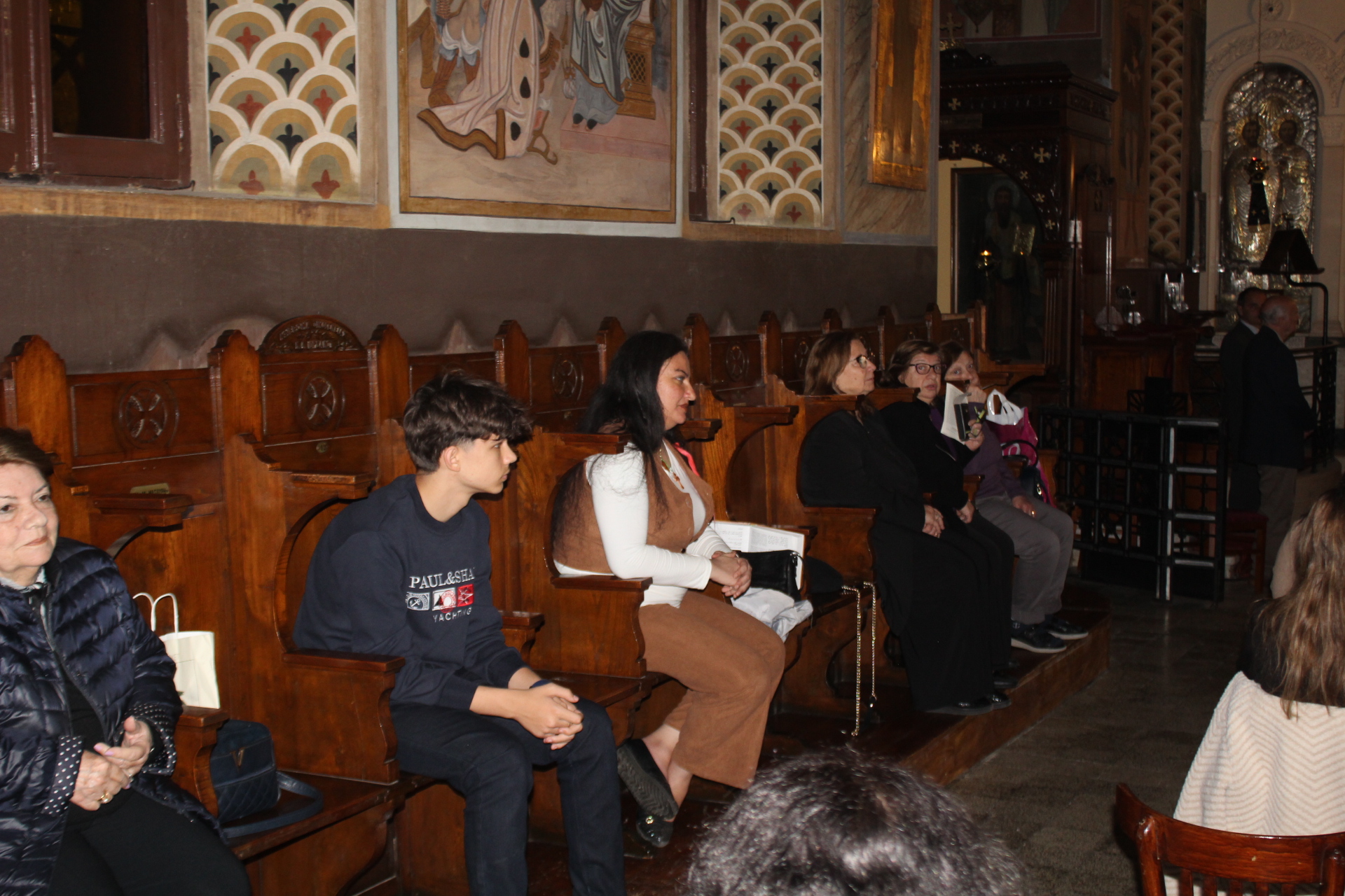 Στο μεγαλείο της Μεγάλης Πέμπτης προεξήρχε η μορφή του Πάπα και Πατριάρχη Αλεξανδρείας και Πάσης Αφρικής κ. Θεοδώρου Β’, με παριστάμενο τον εφημέριο Πανοσιολογιότατο Αρχιμανδρίτη κ. Αθανάσιο, συμπροσευχόμενους τον Πανοσιολογιότατο Αρχιμανδρίτη κ. Επιφάνιο, τον Αραβόφωνο Ιερέα π. Σάμυ και άλλους ιερείς της Πατριαρχικής Αυλής.