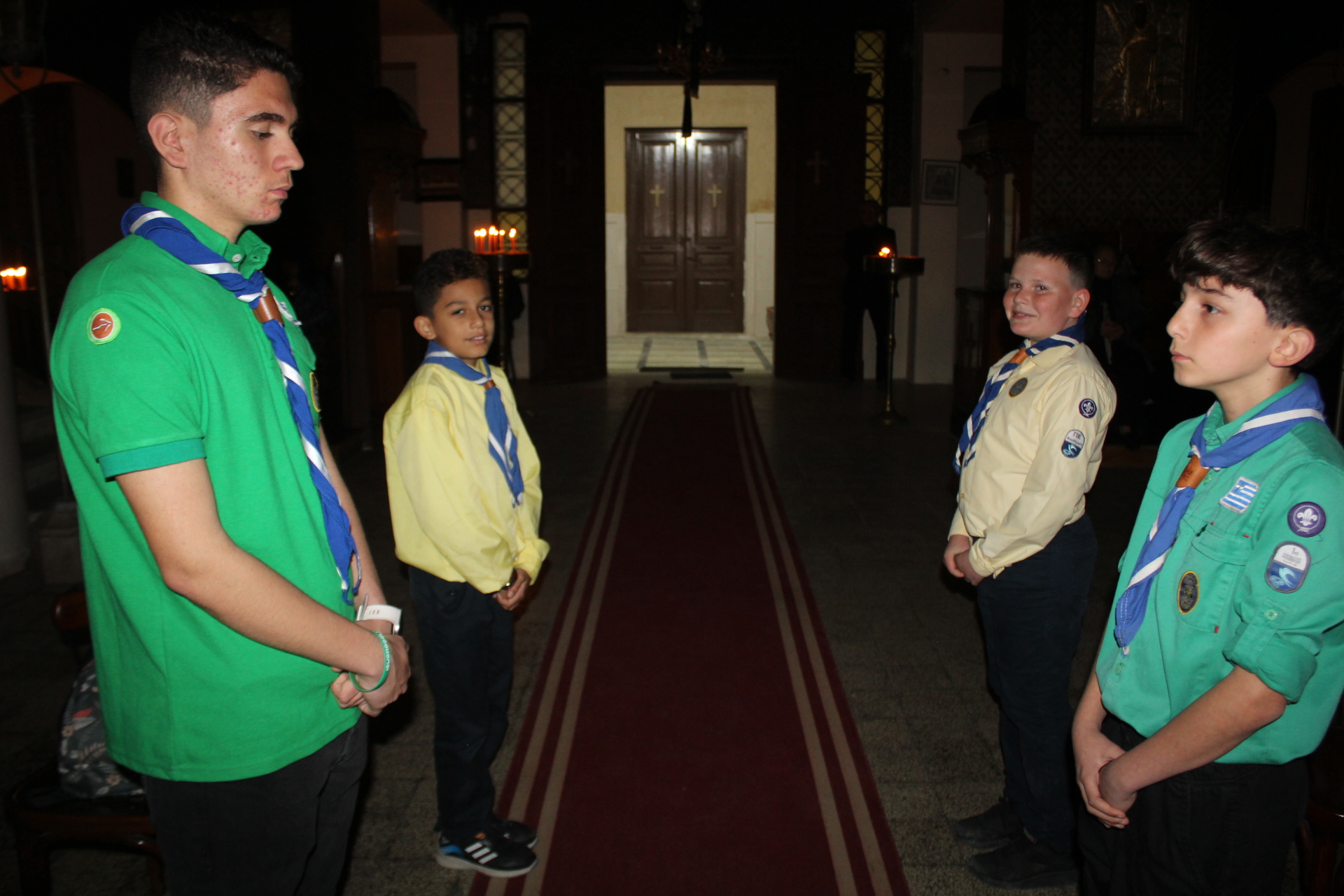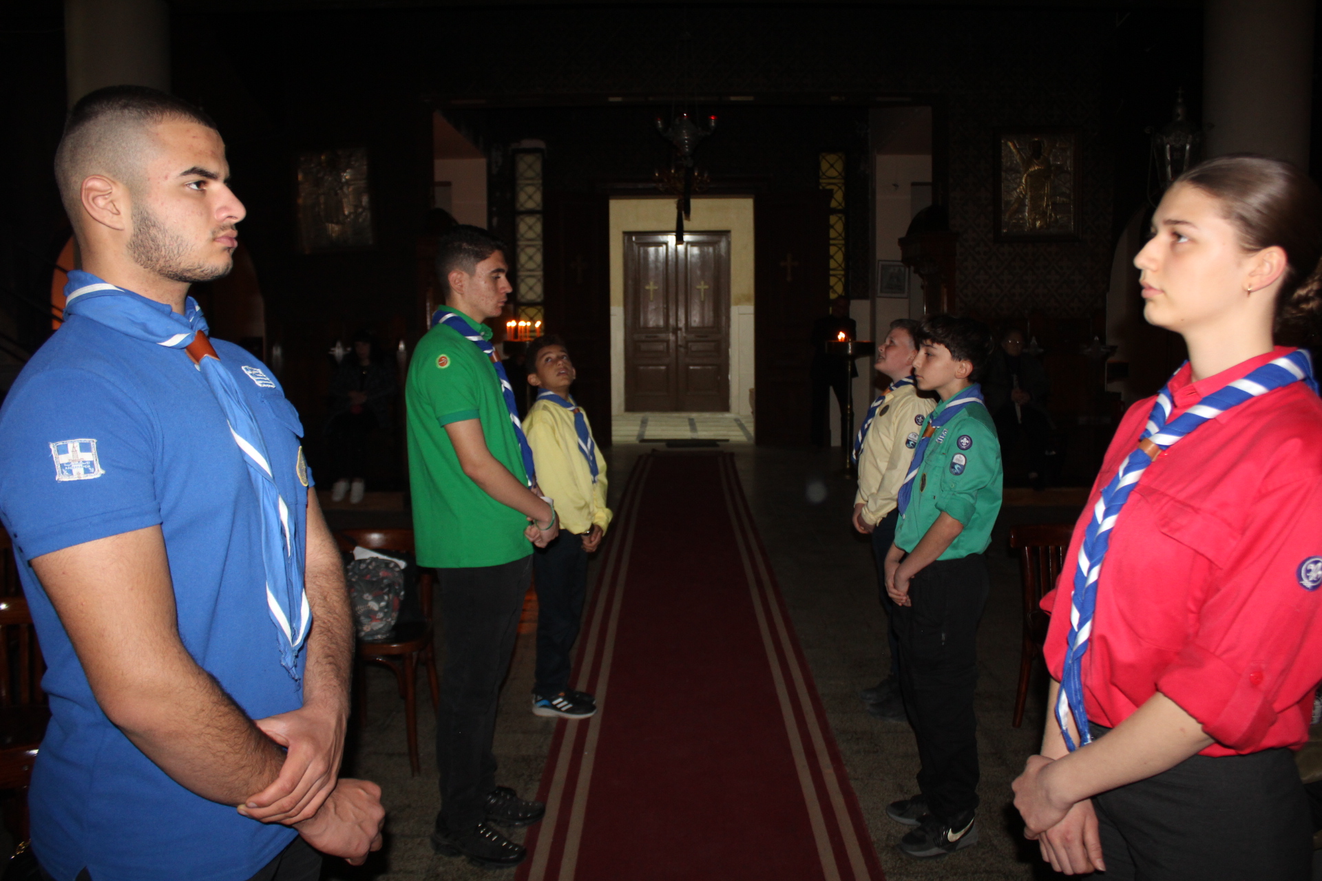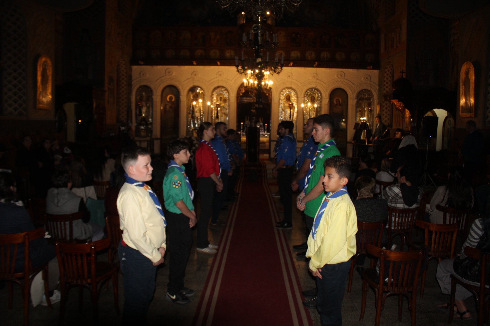 Άπαντες οι Πρόσκοποι, στα μέσα της αναγνώσεως των Ευαγγελίων και συγκεκριμένα κατά το Πέμπτο προς Έκτο Ευαγγέλιο, προσήλθαν εντός του Ιερού Ναού σχηματίζοντας έναν διάδρομο που παρέπεμπε στο δρόμο του σεβασμού, του δέους προς την Θυσία του Θεανθρώπου.