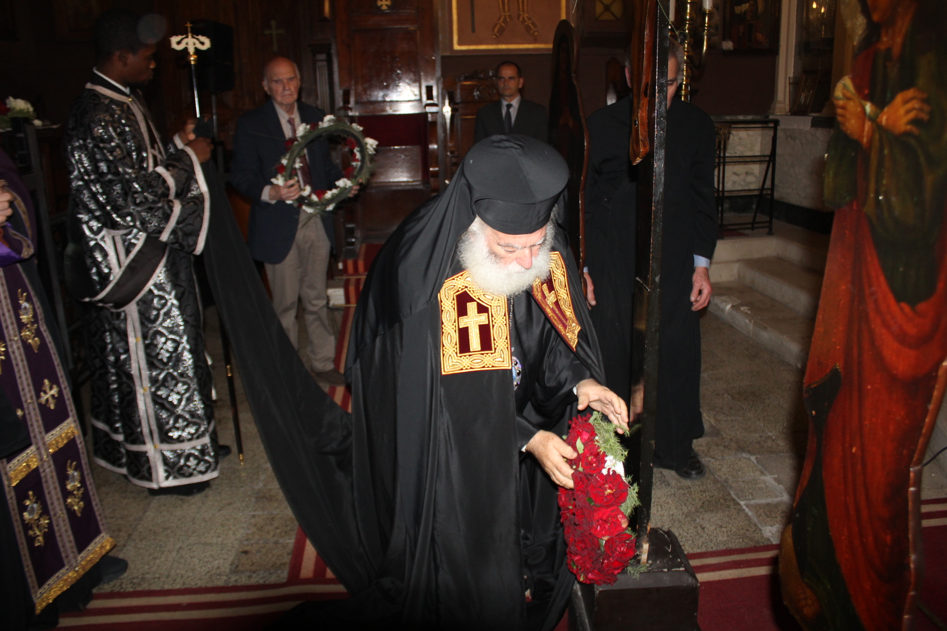 Η συγκίνηση διάχυτη στο πρόσωπο του Πάπα και Πατριάρχη Αλεξανδρείας και Πάσης Αφρικής κ. κ. Θεοδώρου Β’, καθώς μέσα στο Ναό οι φλόγες των κεριών και των καντηλιών σχημάτιζαν επί του προσώπου του έμψυχες σκιές, θαρρείς και οι παλιοί Αιγυπτιώτες που έφυγαν απ΄ τη ζωή, βίωναν μαζί με τους παριστάμενους πιστούς το μέγεθος και τη διάσταση της Υπέρτατης Θυσίας.