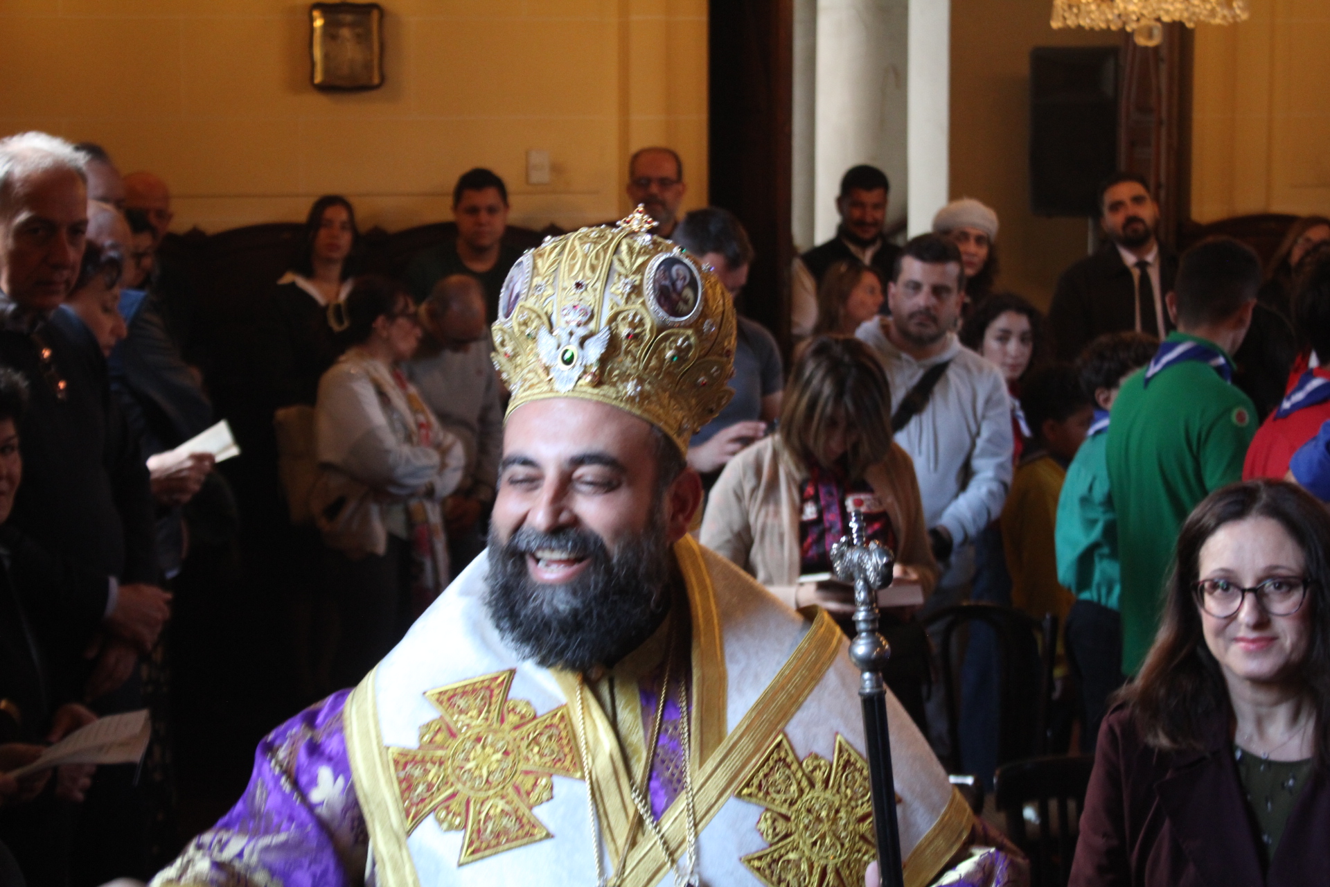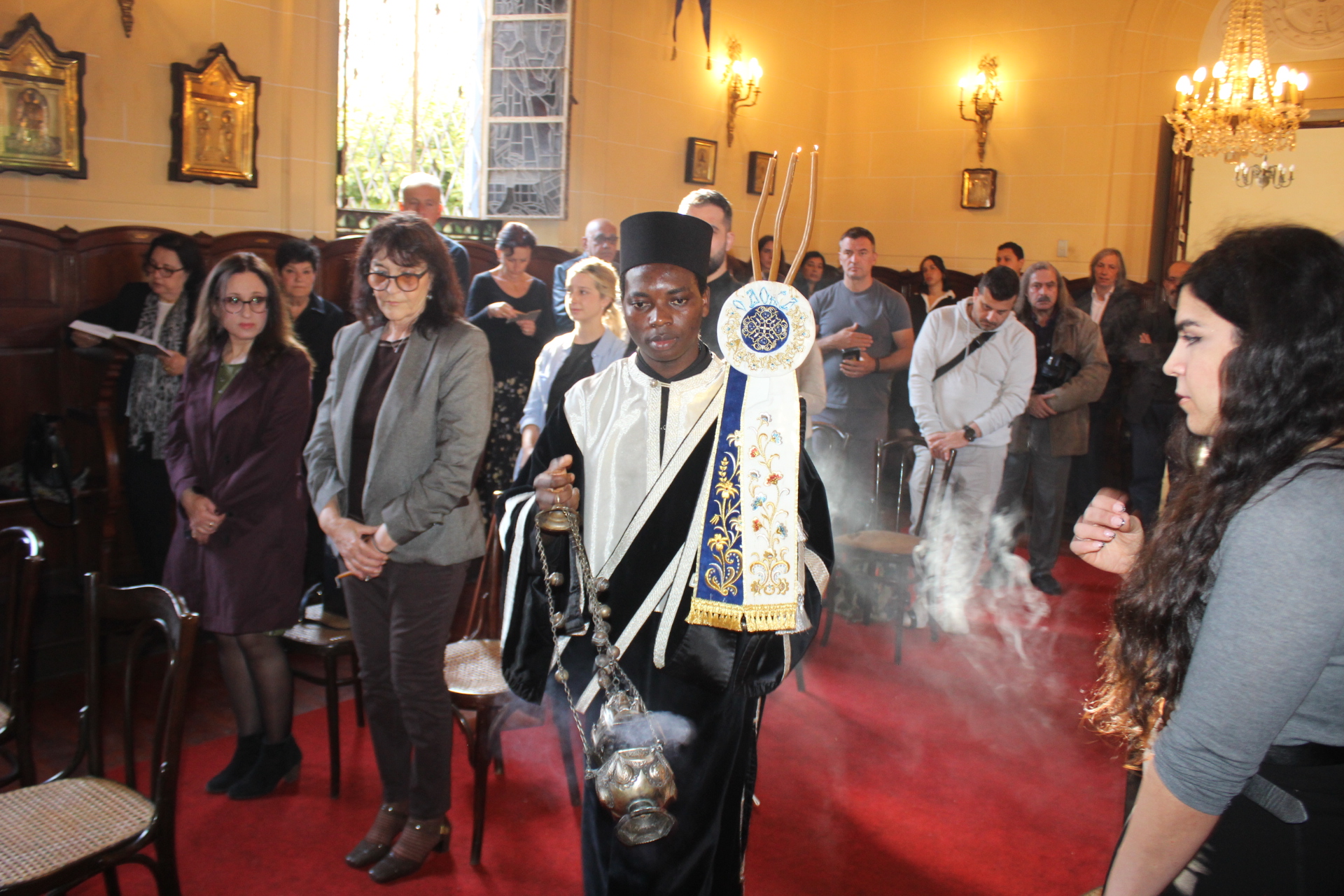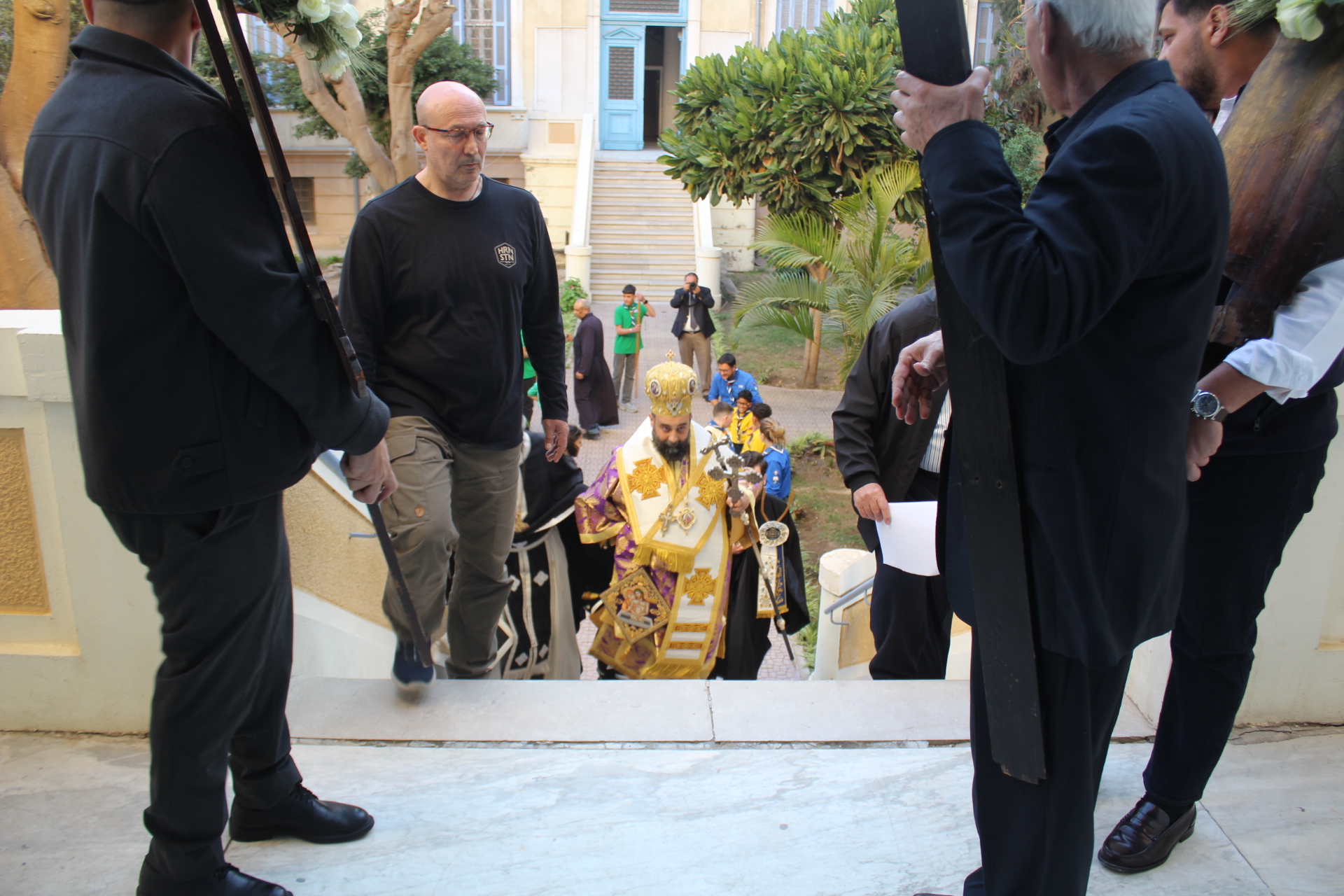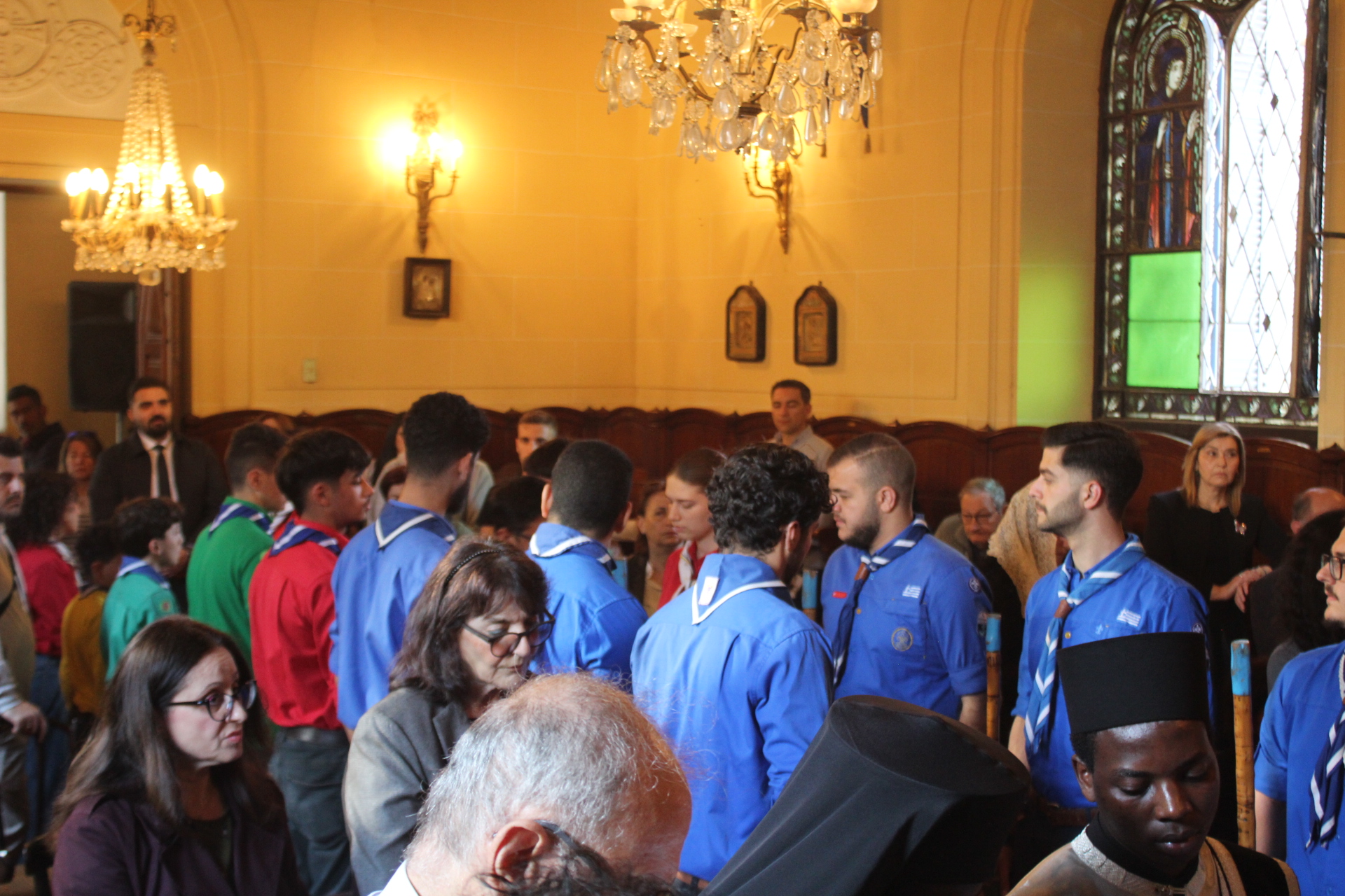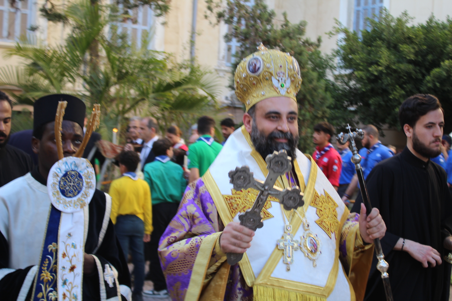 Το Ελληνικό Τετράγωνο ξαναγύρισε στο όχι και τόσο μακρινό παρελθόν – της ένδοξης εποχής, που έσφυζε από ζωή. Οι πιστοί της παροικίας προσήλθαν με ευλάβεια να συμμετάσχουν στην πλέον κατανυκτική στιγμή της Μεγάλης Εβδομάδας, του Αγίου Επιταφίου. Πρόσκοποι, φιλαρμονική, θεσμικοί εκπρόσωποι και πάροικοι Αιγυπτιώτες ήταν όλοι τους εκεί στον Ιερό Ναό της Αγίας Αικατερίνης του Μπενακείου συγκροτήματος. Τού όλου ιερού τελετουργικού προεξήρχε ο Θεοφιλέστατος Επίσκοπος Μαρεώτιδος κ. Δαμασκηνός, Πατριαρχικός Επίτροπος, ενδεδυμένος τα άμφια που άρμοζαν και αναλογούσαν στην Ακολουθία του Επιταφίου, προσδίδοντας με το λόγο του και την παρουσία του, τη μελαγχολία που δημιουργεί η θλιμμένη ημέρα της Μεγάλης Παρασκευής. Μαζί του συμπροσευχόμενοι οι κληρικοί της Πατριαρχικής Αυλής.