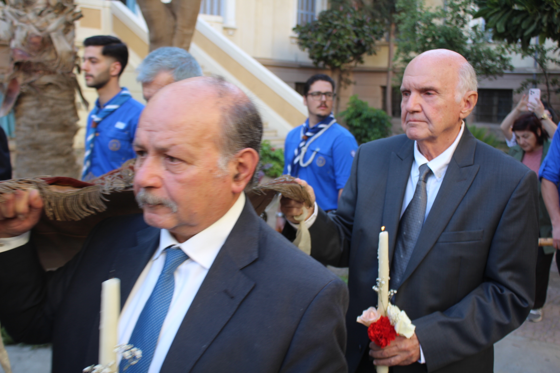 Την Μεγάλη Παρασκευή στην Περιφορά του Αγίου Επιταφίου στο Ελληνικό Τετράγωνο, παρέστησαν: Εκ μέρους του Γενικού Προξενείου το στέλεχος κ. Θρασύβουλος Μακρής, ο Πρόεδρος της ΕΚΑ κ. Ανδρέας Βαφειάδης, ο Αντιπρόεδρος Α΄κ. Ιωάννης Παπαδόπουλος, ο Γενικός Γραμματέας κ. Νικόλαος Κατσιμπρής μετά της συζύγου του Ελένης, ο Αντιπρόεδρος Β΄ κ. Νικόλαος Κόπελος μετά της συζύγου του Σούζης, ο Οικονομικός Επόπτης κ. Εμμανουήλ Τατάκης μετά τυς συζύγου του Λωρίς, ο Αναπληρωτής Γενικός Γρααμματέας κ. Δημήτριος Κάβουρας μετά της συζύγου του Μάρτας, ο Κοινοτικός Επίτροπος κ. Ευάγγελος Νεαμονίτης, ο Διευθυντής κ. Γεώργιος Μπούλος μετά της συζύγου του Αλίν, η Διευθύντρια του Τοσιτσαίου – Πρατσίκειου Δημοτικού κα. Αμάντα Νικολακοπούλου, μετά της οικογενείας της, Διευθύντρια του Νηπιαγωγείου κα. Λένα Βοστάνη, ο Εκπρόσωπος της Κυπριακής Αδελφότητας κ. Πέτρος Λούτσης, ο Έφορος Διοίκησης των Προσκόπων κ. Άρης Μαρκοζάνης μετά της συζύγου του Τούλας, η Διευθύντρια του Μάννα και των Κοινοτικών Ξενώνων κα. Ελένη Άστωρ, ο καλλιτέχνης κ. Ηλίας Πίτσικας, ο μουσικός κ. Μανώλης Χναράκης, η συγγαρφέας κα Ιωάννα Παπασιδέρη, η καλλιτέχνης – εικαστικός κα. Στεφανία Μισάρα, καθώς και πολλοί πάροικοι, αλεξανδρινοί επισκέπτες και πιστοί της Μεγάλης Πόλεως.