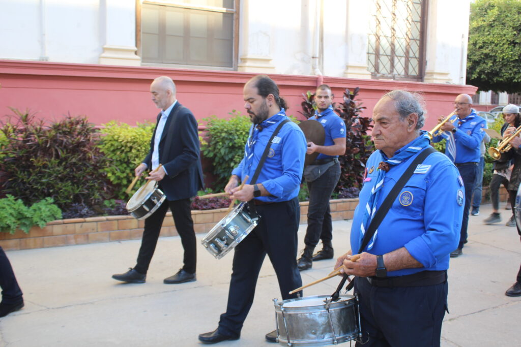 Η πομπή εξήλθε του Ιερού Ναού και, μέσα σε κλίμα κατάνυξης και βαθιάς συγκίνησης, διέσχισε το Ελληνικό Τετράγωνο υπό τους πένθιμους ήχους της φιλαρμονικής. Οι πιστοί ακολουθούσαν σιωπηλά, κρατώντας κεριά αναμμένα, συνοδεύοντας τον Επιτάφιο στη συμβολική αυτή διαδρομή πίστης και μνήμης.