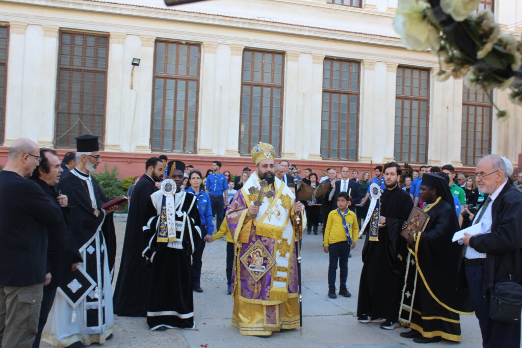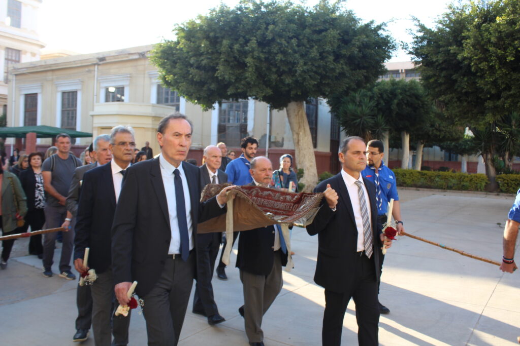 Ο Θεοφιλέστατος Επίσκοπος Μαρεώτιδος κ. Δαμασκηνός, απευθυνόμενος στους παρισταμένους, εξέφρασε λόγια παρηγοριάς και ελπίδας, τονίζοντας τη σημασία της ενότητας και της διατήρησης των ιερών παραδόσεων. Παράλληλα, ευχαρίστησε θερμά τον Πρόεδρο της Ελληνικής Κοινότητας Αλεξανδρείας κ. Ανδρέα Βαφειάδη για τη συνεχή φροντίδα και μέριμνα που επιδεικνύει στη διατήρηση των ναών σε άριστη κατάσταση, υπογραμμίζοντας παράλληλα «η καρδιά της Κοινότητας μας χτυπά δυνατά μετά από δυο χιλιάδες χρόνια και πλέον παρουσίας στην Αίγυπτο. Η κάθε γωνιά, το κάθε κτίριο, η κάθε πόρτα, το κάθε δέντρο σίγουρα έχει μια ιστορία, σίγουρα συνδέεται με ένα πρόσωπο που πέρασε από αυτό το μέρος. Για αυτό θα ήθελα να σας ευχαριστήσω και όλους τους συντελεστές για να γίνει αυτή η τελετή κάθε έτος, ώστε να δίνουμε το μήνυμα ότι υπάρχουμε, ότι είμαστε εδώ ως Ελληνορθόδοξη Εκκλησία του Πατριαρχείου Αλεξανδρείας μαζί με την ιστορική Ελληνική Κοινότητα της Αλεξάνδρειας. Θέλω να σας μεταφέρω τις ευχές του Μακαριωτάτου, ο οποίος φέτος θα τελεί όλες αυτές τις τελετές στους Ταξιάρχες, στην Ιμπραημία ώστε δια μέσω αυτών των τελετών που γίνονται φέτος κατ’ εξαίρεση, θα γίνεται μνημόσυνο επίσης για τις ψυχές των ανθρώπων, αυτές τις μεγάλες προσωπικότητες, άγνωστοι και γνωστοί που έχτισαν το Ναό στους Ταξιάρχες. Αλλά και ταυτόχρονα τελούμε τις Ακολουθίες στους Ταξιάρχες φέτος, με τη λαχτάρα και την αναμονή να ολοκληρωθούν οι εργασίες αναστήλωσης και ανακαίνισης του Ναού του Ευαγγελισμού, του Καθεδρικού μας στην Αλεξάνδρεια, ώστε με τη χάρη του Θεού, του χρόνου να τελούνται καθώς πρέπει με πάσα μεγαλοπρέπεια όπως πάντα οι Ακολουθίες εκεί, στο καμάρι όχι μόνο των Ελλήνων της Αιγύπτου αλλά όλων των Ελλήνων του κόσμου. Διότι οι Ναοί της Αλεξάνδρειας είναι όλοι ιστορικοί, όλοι με μεγαλοπρέπεια χτίστηκαν, μα πάνω απ’ όλα με αγάπη προς το Χριστό και προς την πατρίδα την Ελλάδα».