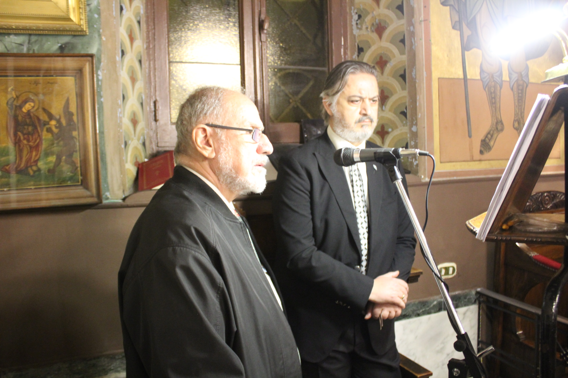 Έψαλλαν, ο δεινός στην ιεροψαλτική βυζαντινή υμνωδία, Γενικός Πρόξενος κ. Ιωάννης Πυργάκης και ο εκπαιδευτικός κ. Αλέξανδρος Μπάσης.