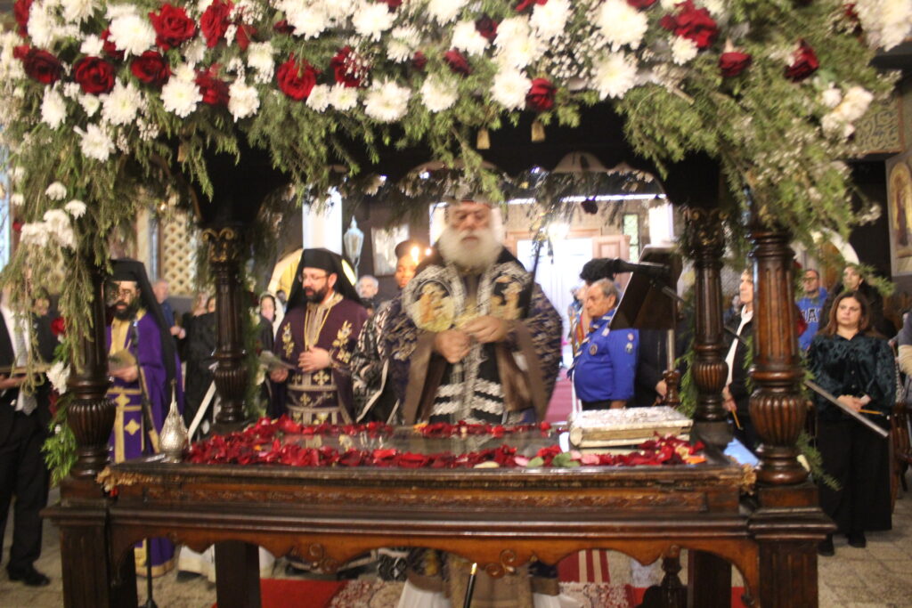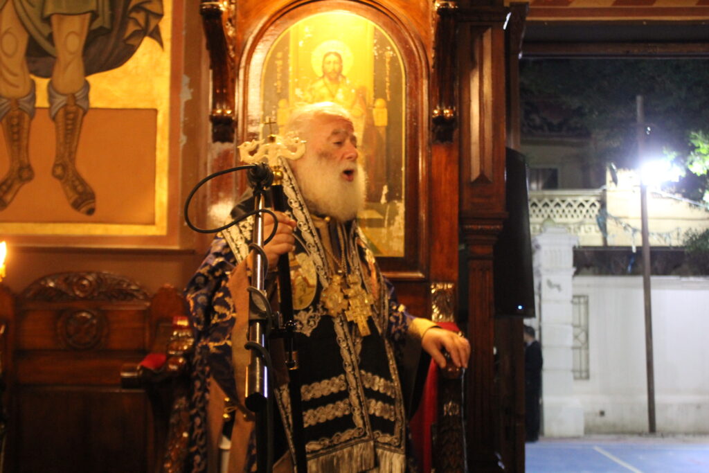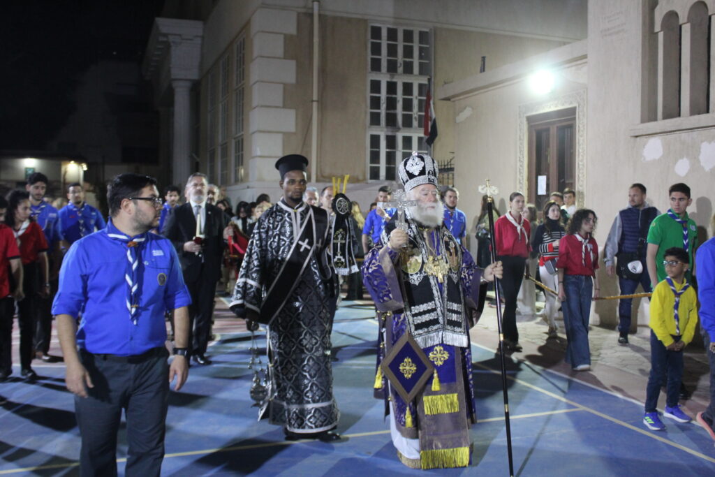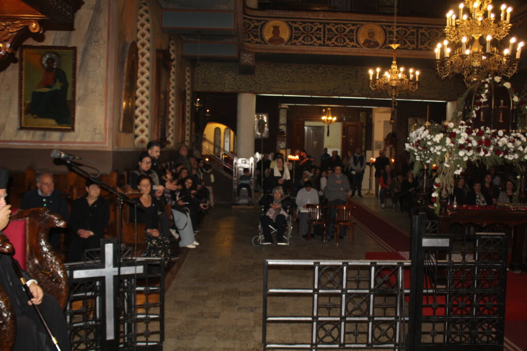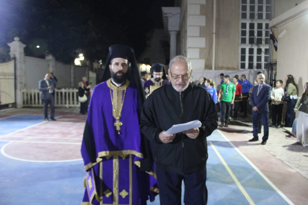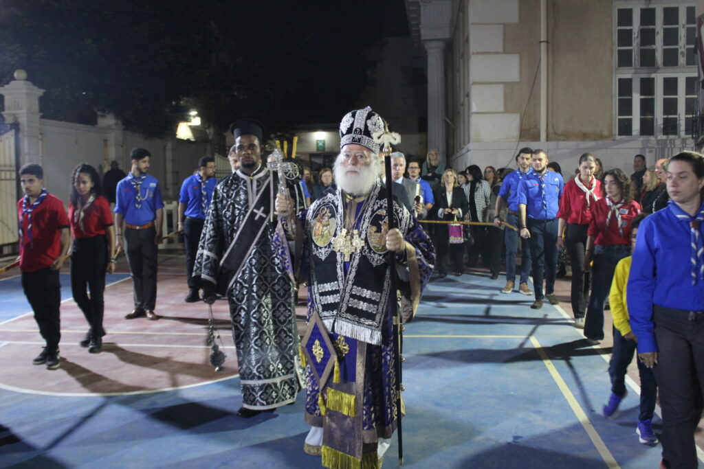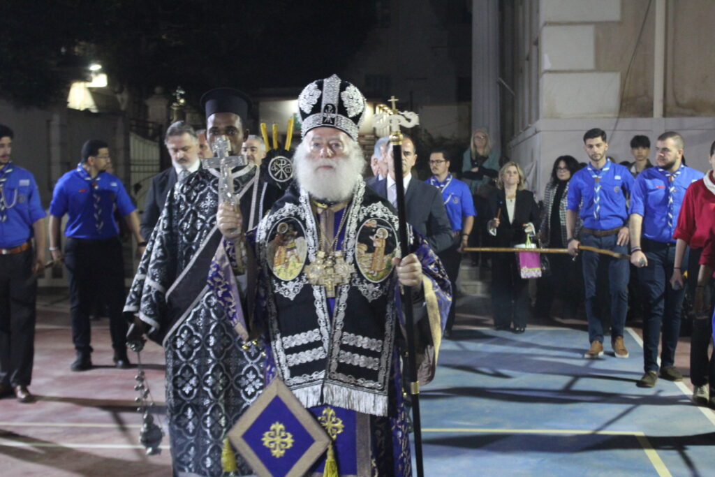 Μαζί του ο Κλήρος της Πατριαρχικής Αυλής, με συμπροσευχόμενο τον Πανοσιολογιότατο Αρχιμανδρίτη κ. Αθανάσιο, προϊστάμενο του Ιερού Ναού, τον επίσης Πανοσιολογιότατο Αρχιμανδρίτη κ. Επιφάνιο, τον αραβόφωνο ιερέα κ. Σάμυ και μαθητές της Πατριαρχικής Σχολής.