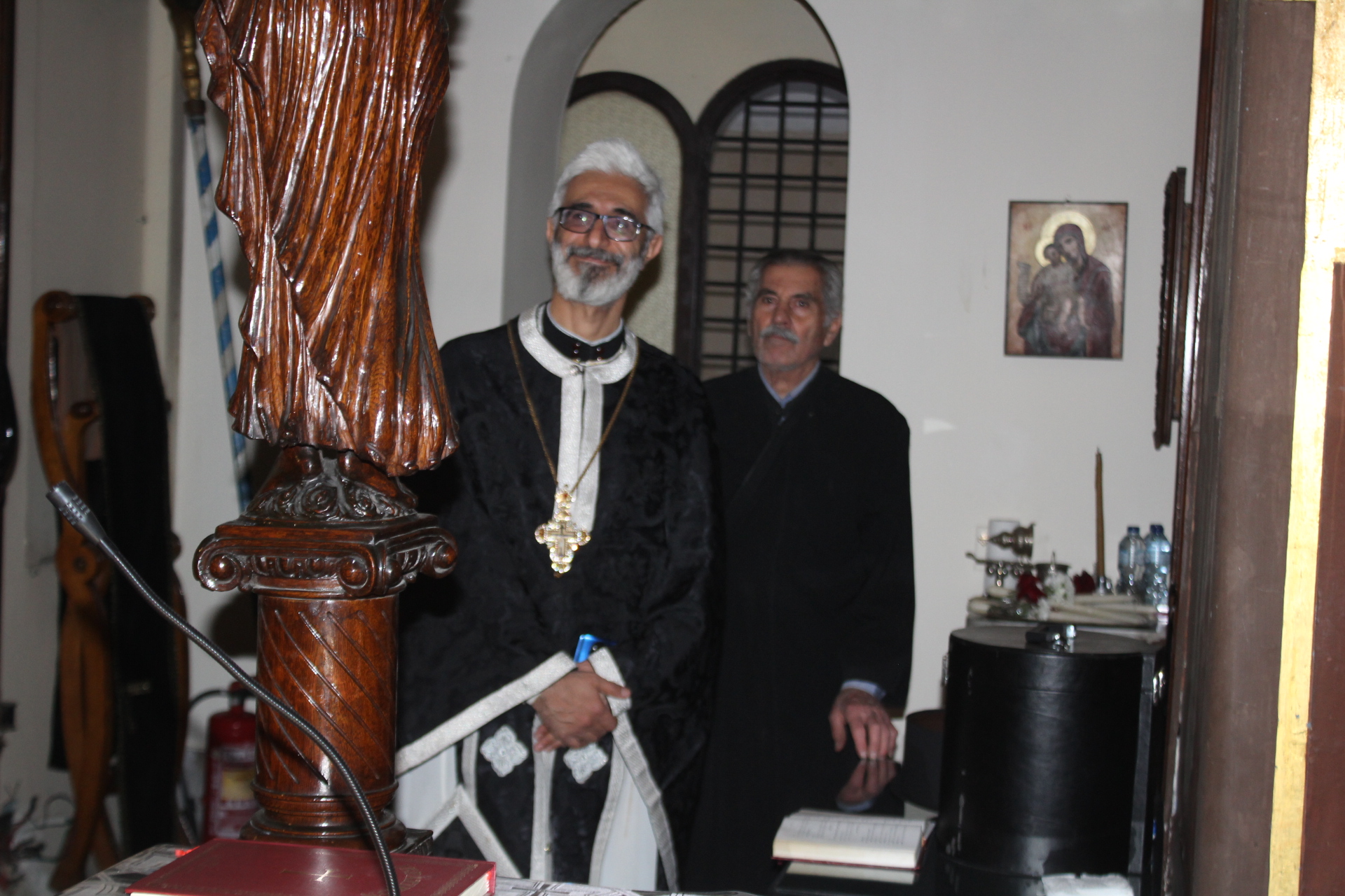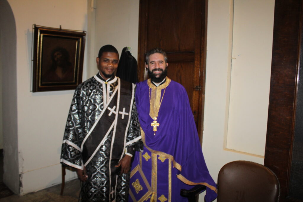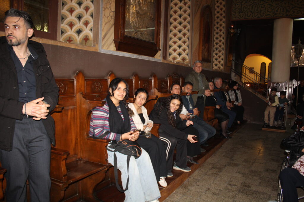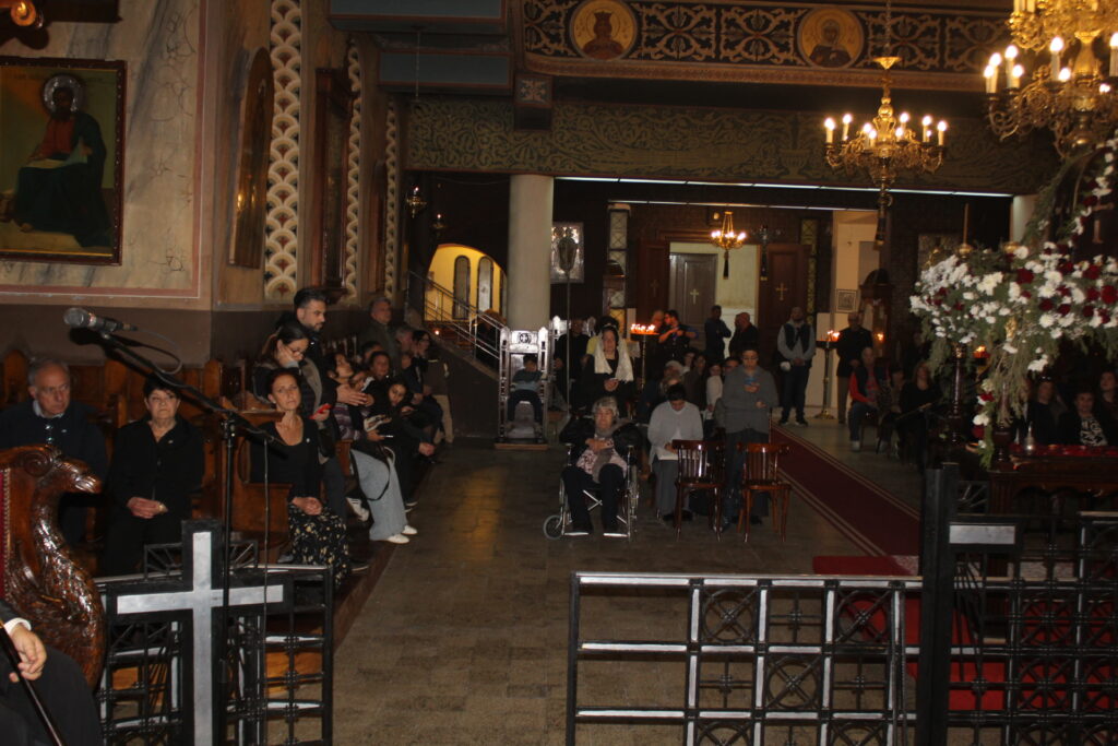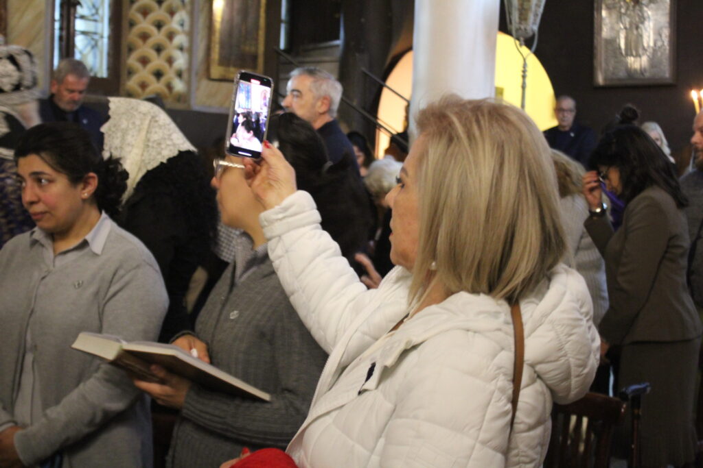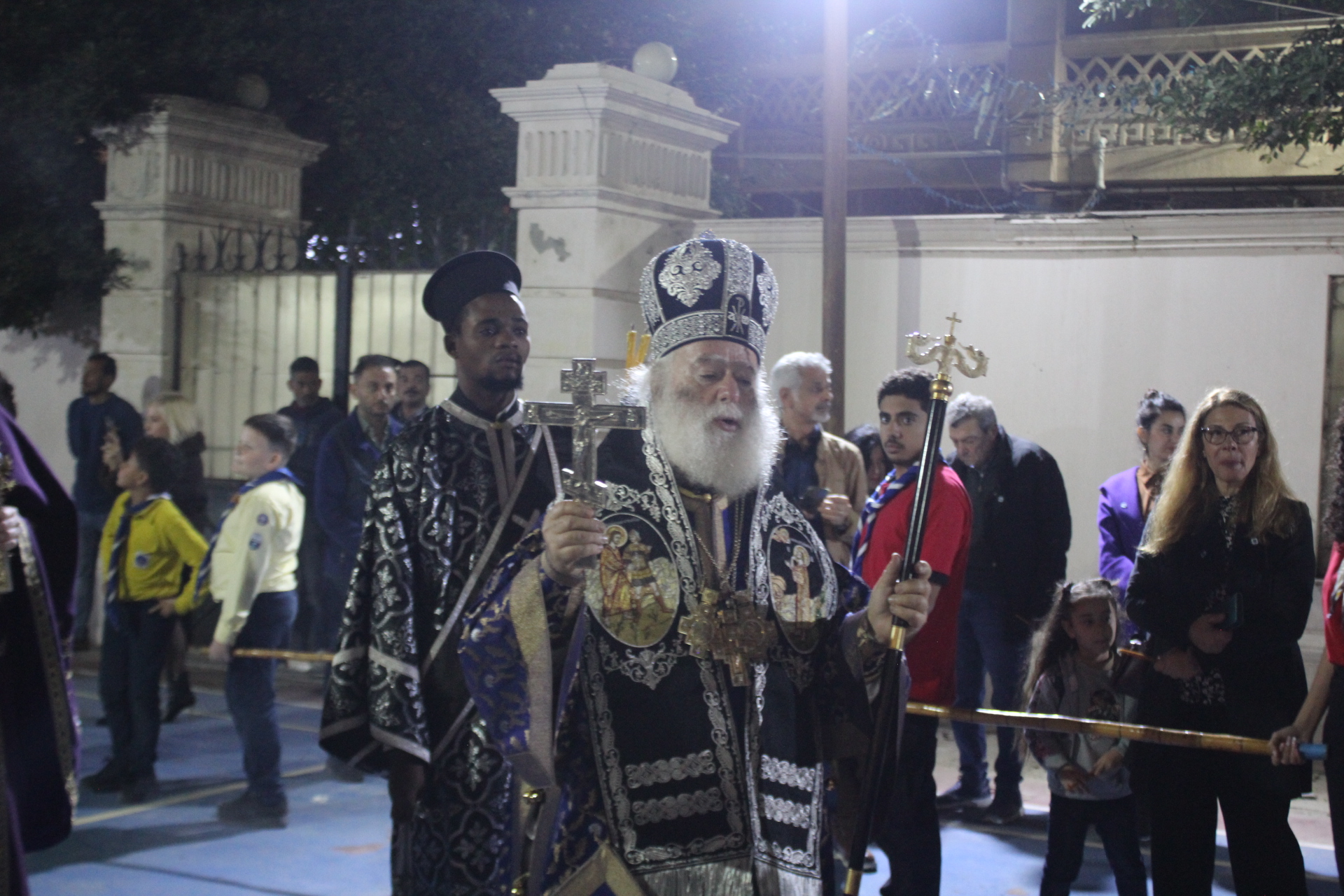 Μαζί του ο Κλήρος της Πατριαρχικής Αυλής, με συμπροσευχόμενο τον Πανοσιολογιότατο Αρχιμανδρίτη κ. Αθανάσιο, προϊστάμενο του Ιερού Ναού, τον επίσης Πανοσιολογιότατο Αρχιμανδρίτη κ. Επιφάνιο, τον αραβόφωνο ιερέα κ. Σάμυ και μαθητές της Πατριαρχικής Σχολής.