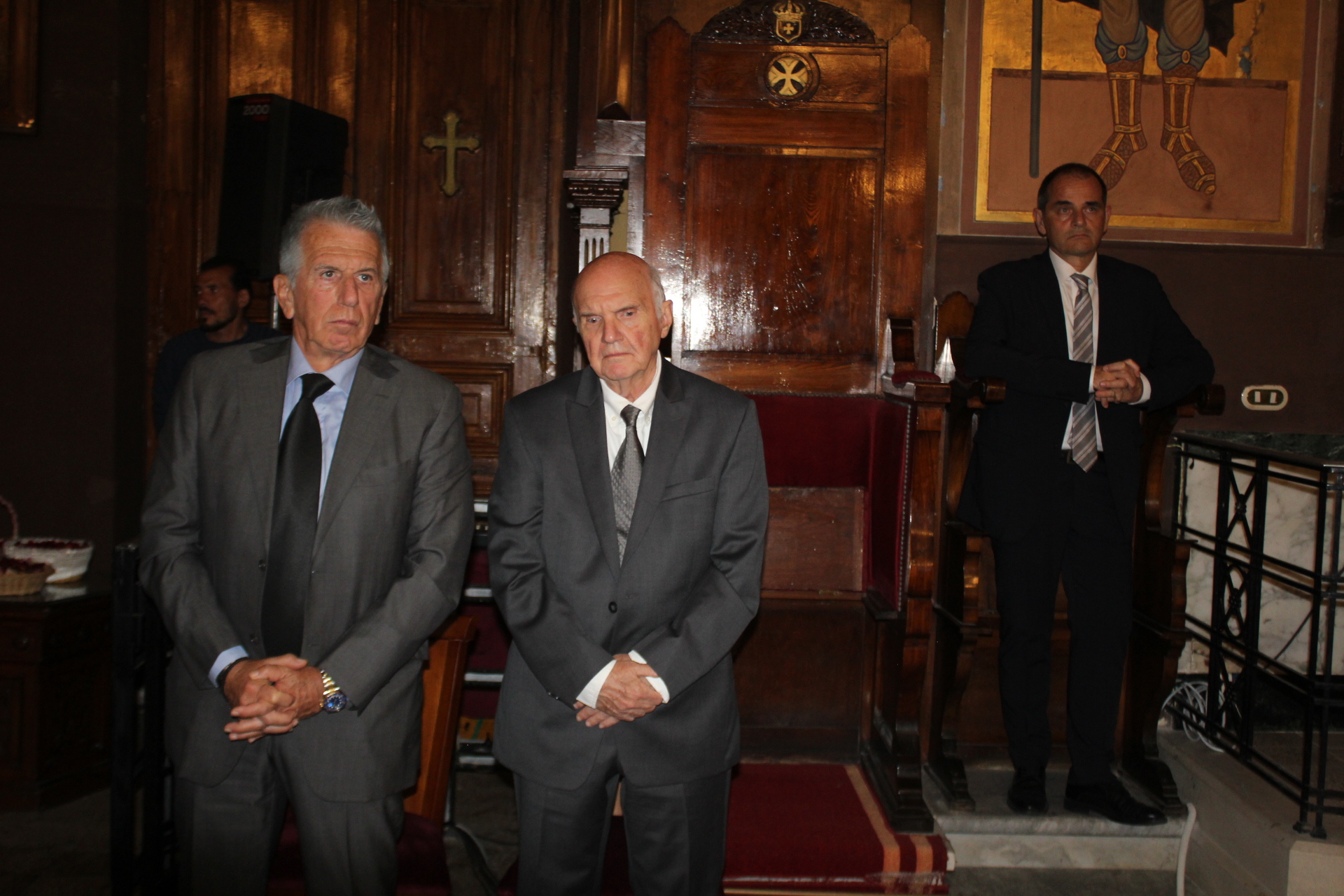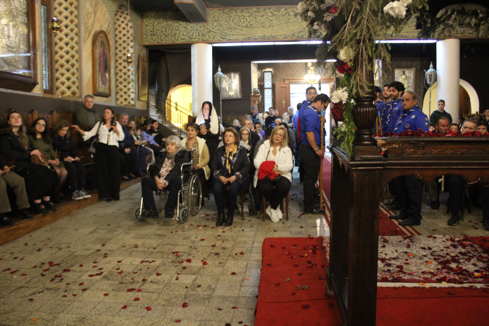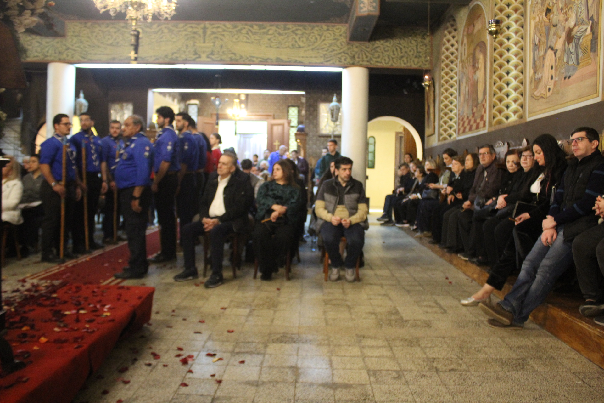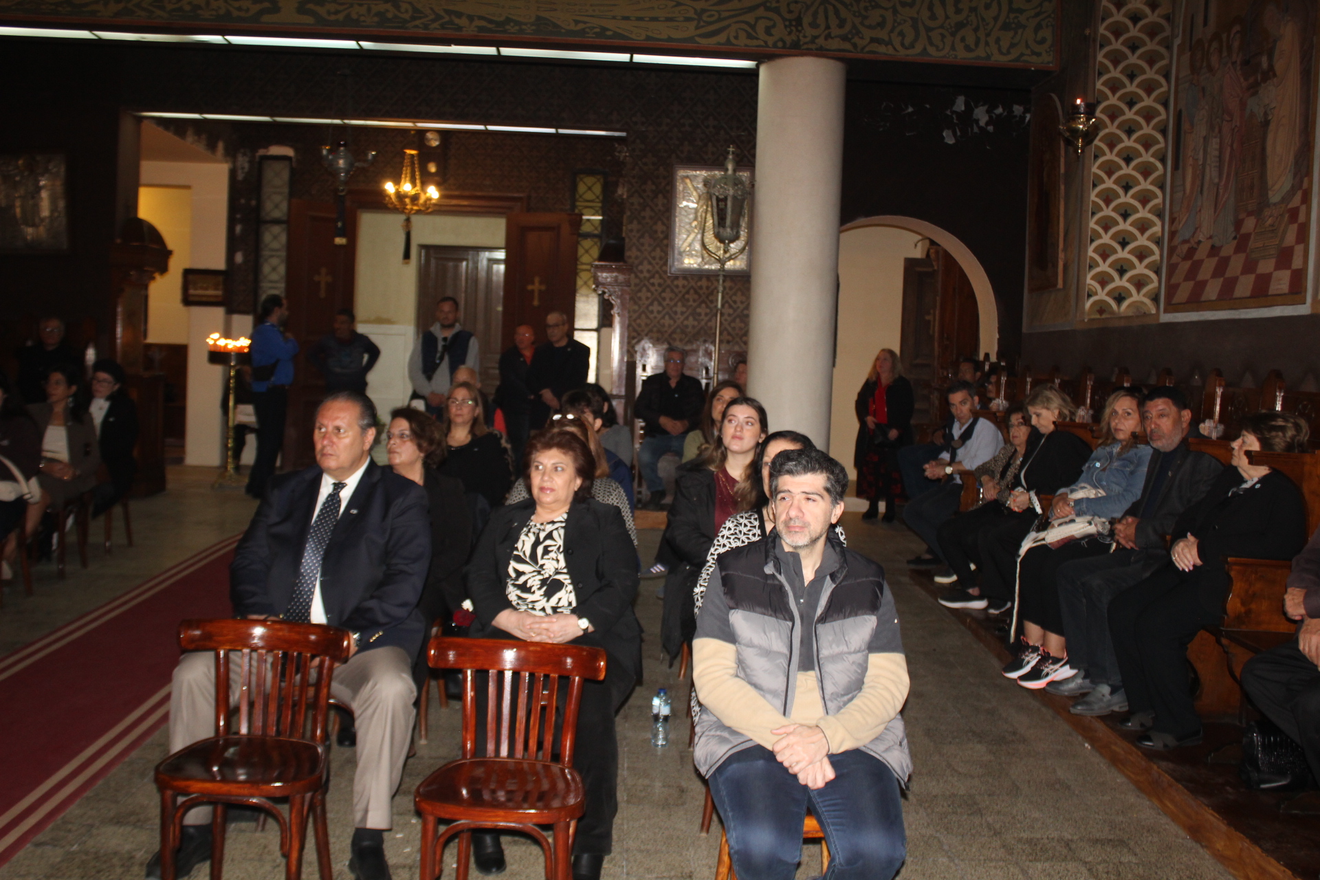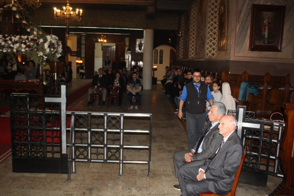 Παρέστησαν εκ των θεσμών της παροικίας ο Γενικός Πρόξενος κ. Ιωάννης Πυργάκης, μετά της συζύγου του Αικατερίνης και του συνόλου των τέκνων τους, ο Πρόεδρος της Ελληνικής Κοινότητας Αλεξανδρείας κ. Ανδρέας Βαφειάδης, ο Οικονομικός επόπτης κ. Εμμανουήλ Τατάκης μετά της συζύγου του Λωρίς, ο ενδεδυμένος την προσκοπική στολή Αναπληρωτής Γενικός Γραμματέας κ. Δημήτριος Κάβουρας, μετά της συζύγου του Οδηγού, Μάρτας, ο Κοινοτικός Επίτροπος κ. Ευάγγελος Νεαμονίτης, η Πρόεδρος του Λυκείου Ελληνίδων Αλεξανδρείας κα Αλίκη Αντωνίου, η αδελφή του Μακαριωτάτου κα Ρούλα Μαχλά, ο Έφορος Διοίκησης των Προσκόπων Αλεξανδρείας κ. Άρης Μαρκοζάνης, η Γενική Έφορος των Οδηγών Αλεξανδρείας κα. Μαίρη Κάβουρα, ο Αβερωφίτης καλλιτέχνης και ακτιβιστής κ. Ηλίας Πίτσικας, το στέλεχος της Πρεσβείας κ. Μιχάλης Μαυρίκος, οι δύο αδελφές κες. Μιχαηλίδου του ΣΑΕ, η Πρόεδρος του Εμπορικού Επιμελητηρίου κα. Μάχη Γαβαλά, και πολλοί άλλοι πιστοί Αιγυπτιώτες που κατέφθασαν στη γενέτειρά τους για να βιώσουν τη Μεγάλη Εβδομάδα, την Ανάσταση και το Πάσχα.