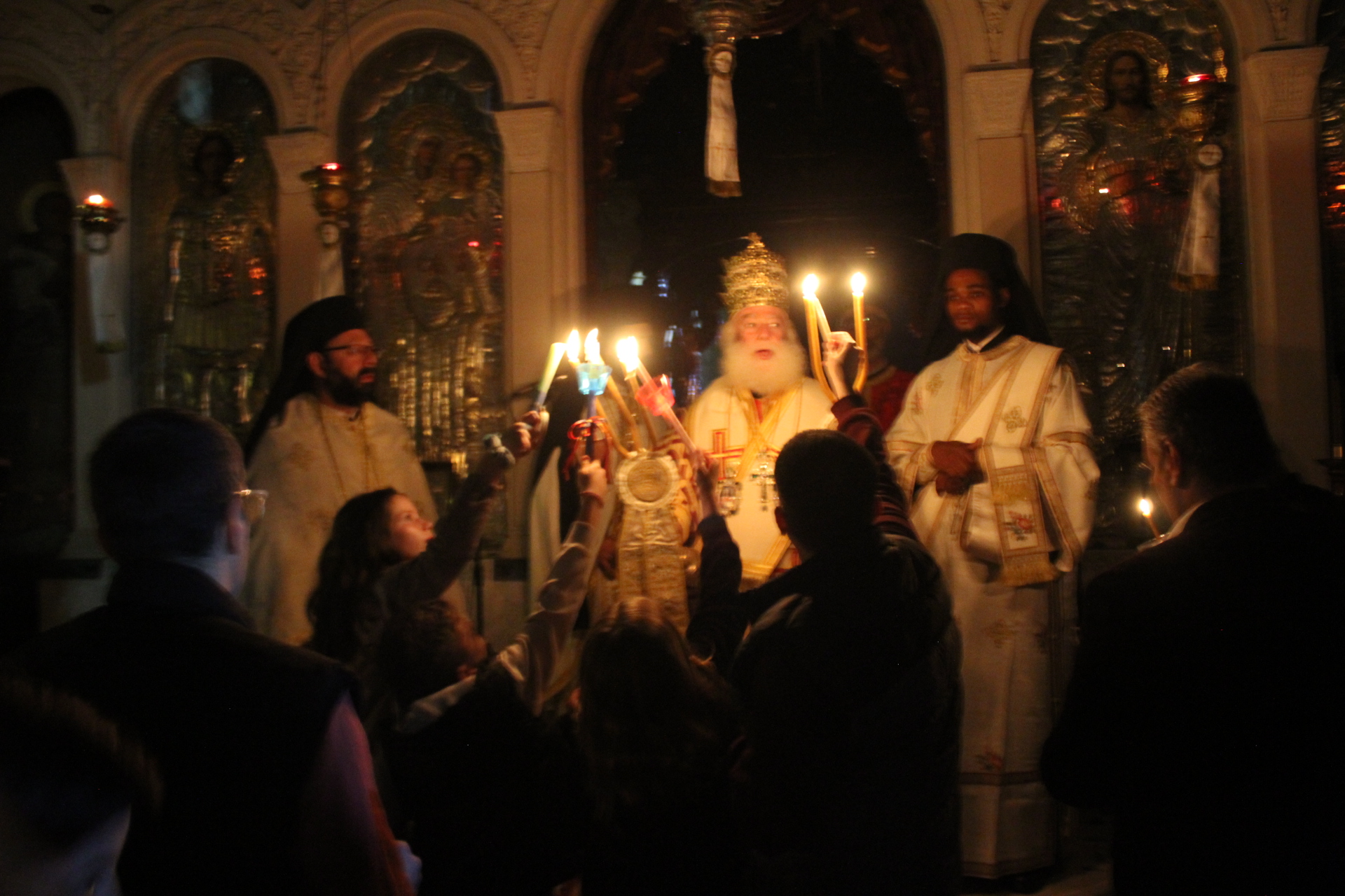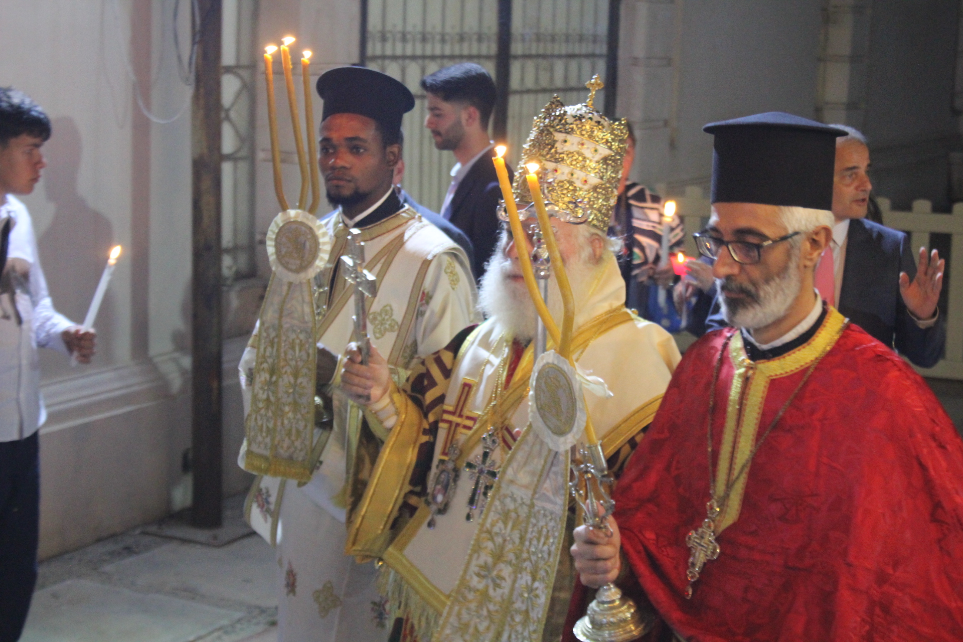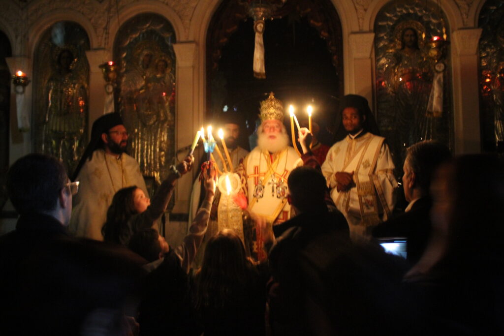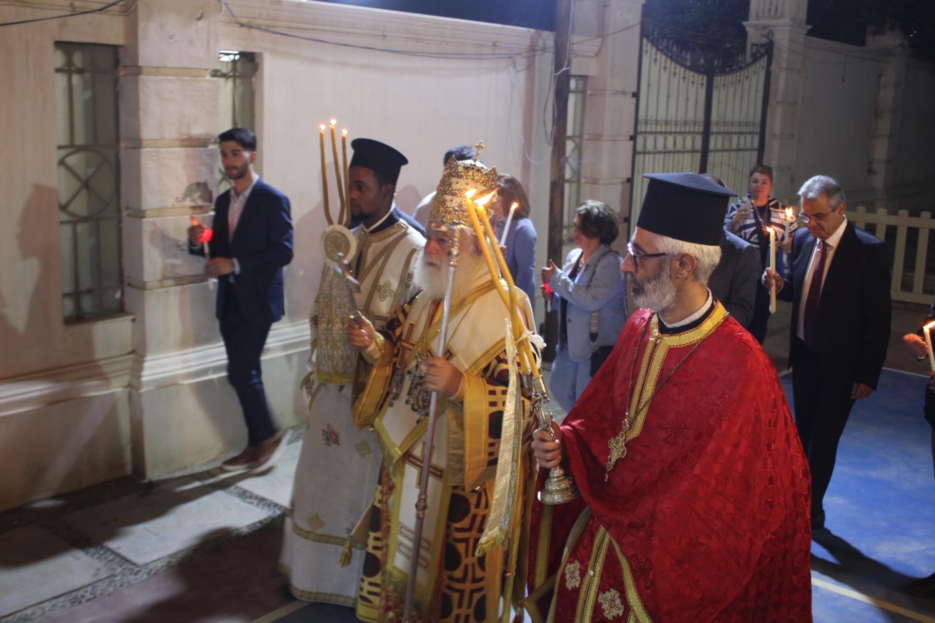 Τη στιγμή που ο Πάπας και Πατριάρχης Αλεξανδρείας και Πάσης Αφρικής κ.κ. Θεόδωρος Β’ ,άνοιξε την Ωραία Πύλη και φώναξε «Δεύτε λάβετε φως» το σκοτάδι του Θανάτου μετατράπηκε μέσα απ΄ τις φλόγες των κεριών, που άναβαν από την λαμπάδας που κρατούσε ο Μακαριώτατος, η Ζωή είχε ήδη νικήσει. Κι όταν επάνω στην εξέδρα ανέβηκε με τους κληρικούς της Πατριαρχικής Αυλής το Φως από τις ηλεκτρικές λάμπες των προβολέων του ιστορικού συγκροτήματος με το Ναό και τα σχολεία. Ηττήθηκε κατά κράτος καθώς η λάμψη που διαχέετο από τα πρόσωπα των πιστών ήταν ισχυρότερο και εκθαμβωτικό ένεκα πνευματικότητας, λύτρωσης και εσώτερης βαθιάς κάθαρσης,