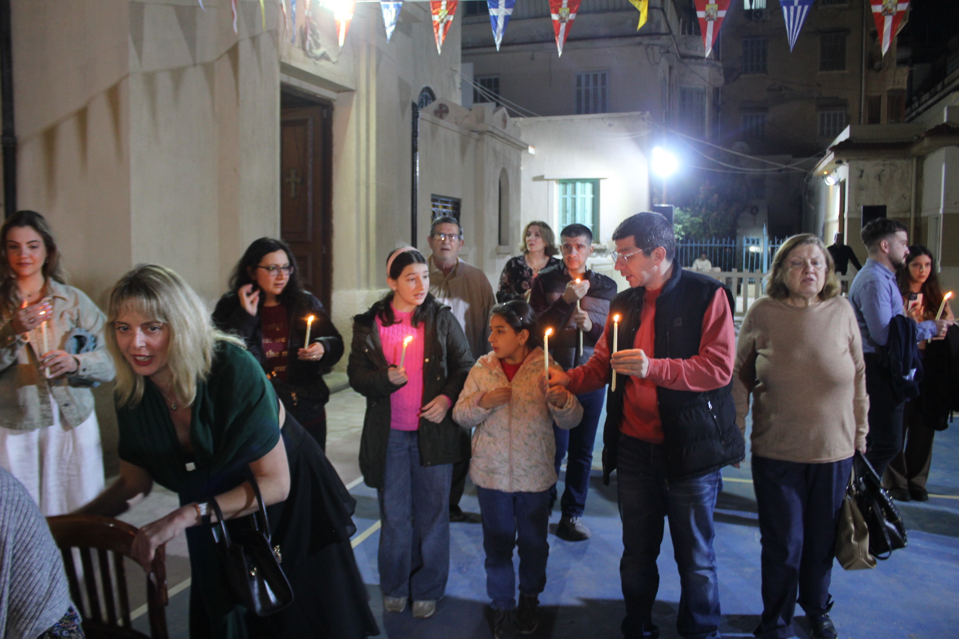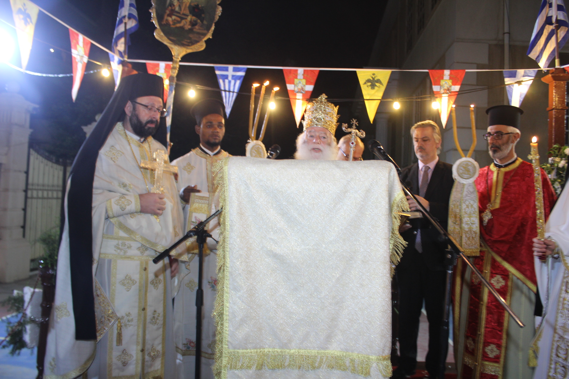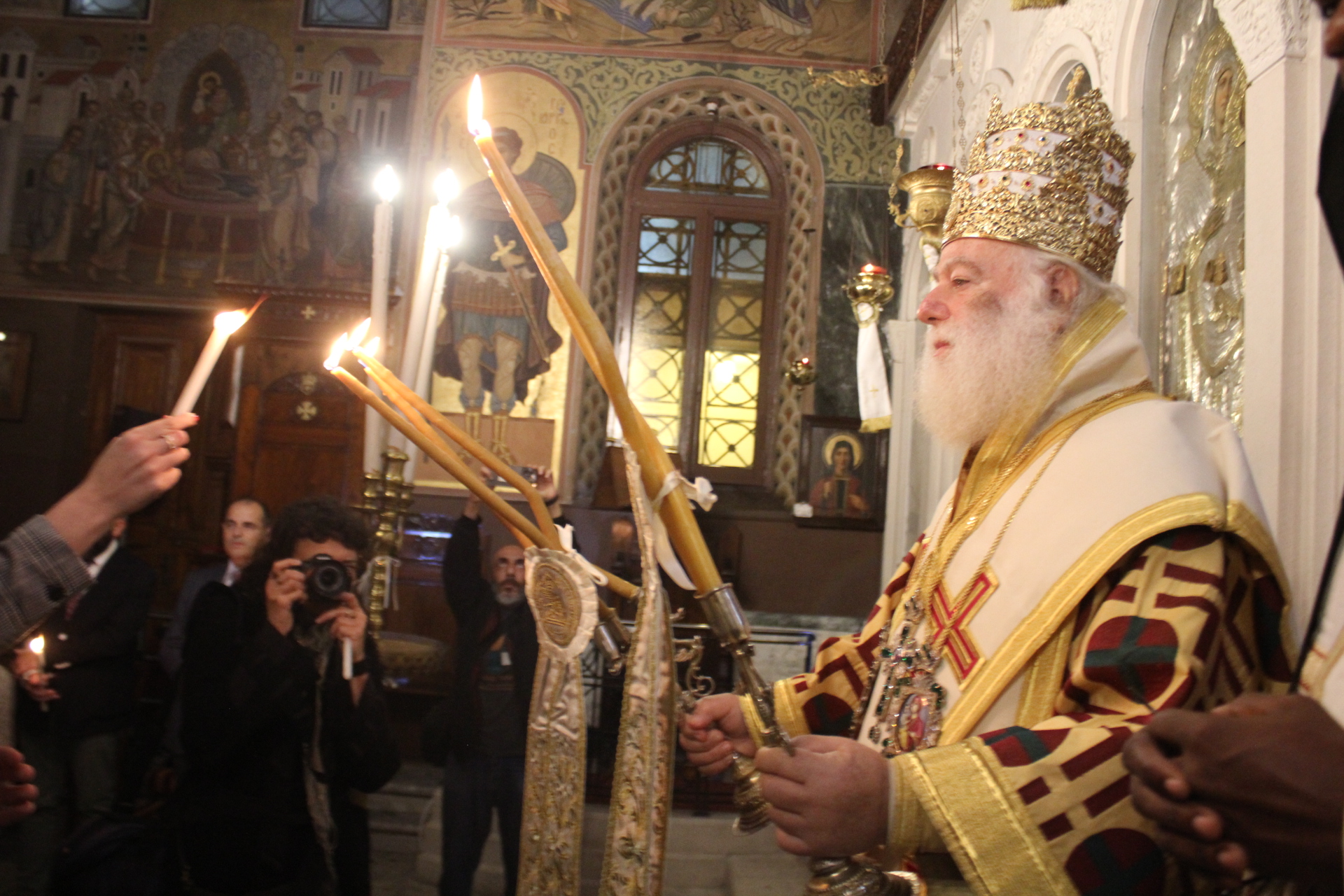 Τη στιγμή που ο Πάπας και Πατριάρχης Αλεξανδρείας και Πάσης Αφρικής κ.κ. Θεόδωρος Β’ ,άνοιξε την Ωραία Πύλη και φώναξε «Δεύτε λάβετε φως» το σκοτάδι του Θανάτου μετατράπηκε μέσα απ΄ τις φλόγες των κεριών, που άναβαν από την λαμπάδας που κρατούσε ο Μακαριώτατος, η Ζωή είχε ήδη νικήσει. Κι όταν επάνω στην εξέδρα ανέβηκε με τους κληρικούς της Πατριαρχικής Αυλής το Φως από τις ηλεκτρικές λάμπες των προβολέων του ιστορικού συγκροτήματος με το Ναό και τα σχολεία. Ηττήθηκε κατά κράτος καθώς η λάμψη που διαχέετο από τα πρόσωπα των πιστών ήταν ισχυρότερο και εκθαμβωτικό ένεκα πνευματικότητας, λύτρωσης και εσώτερης βαθιάς κάθαρσης,