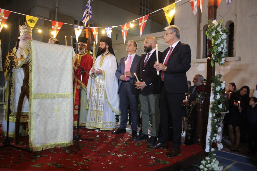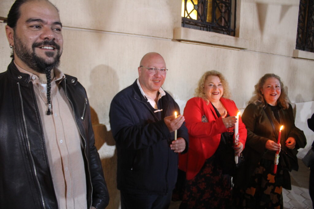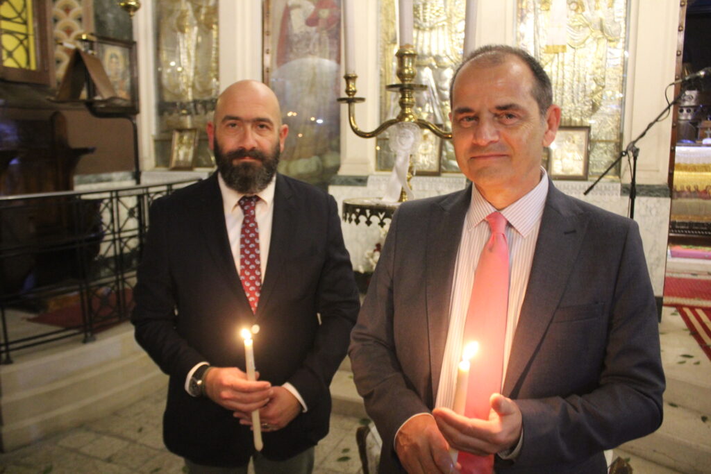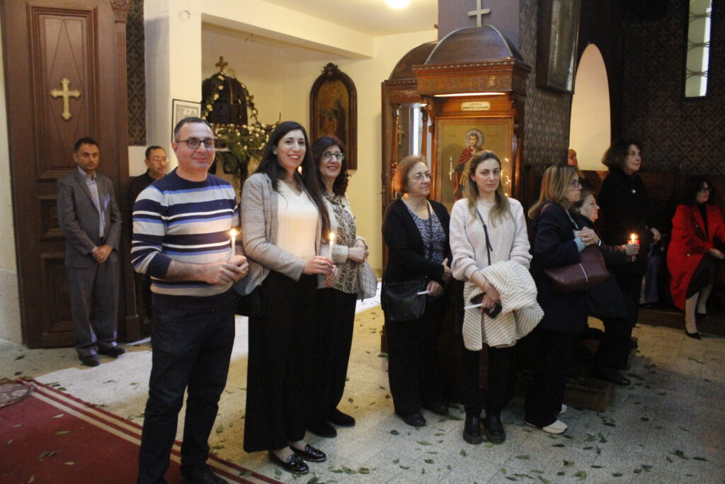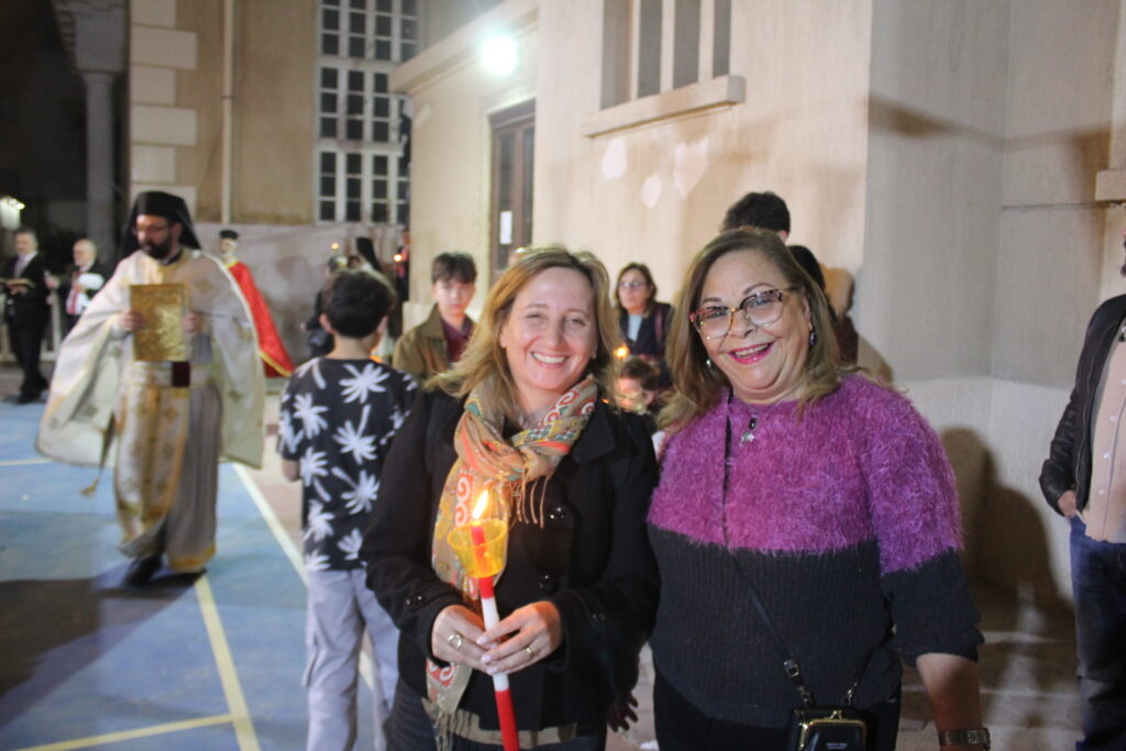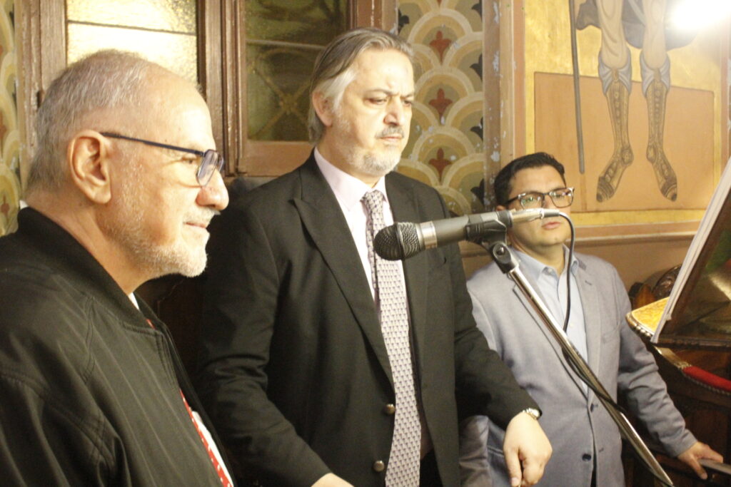 Δίπλα στον Μακαριώτατο, συμπροσευχόντουσαν  ο Προϊστάμενος του Ναού των Ταξιαρχών Πανοσιολογιότατος Αρχιμανδρίτης κ. Αθανάσιος, ο Πανοσιολογιότατος Αρχιμανδρίτης κ. Επιφάνιος, ο αραβόφωνος ιερές π. Σάμυ και άλλοι ιερείς του Πατριαρχείου. Έψαλλαν  με τις εξαίσιες φωνές τους, ο Γενικός Πρόξενος κ. Ιωάννης Πυργάκης και ο εκπαιδευτικός κ. Αλέξανδρος Μπάσης.