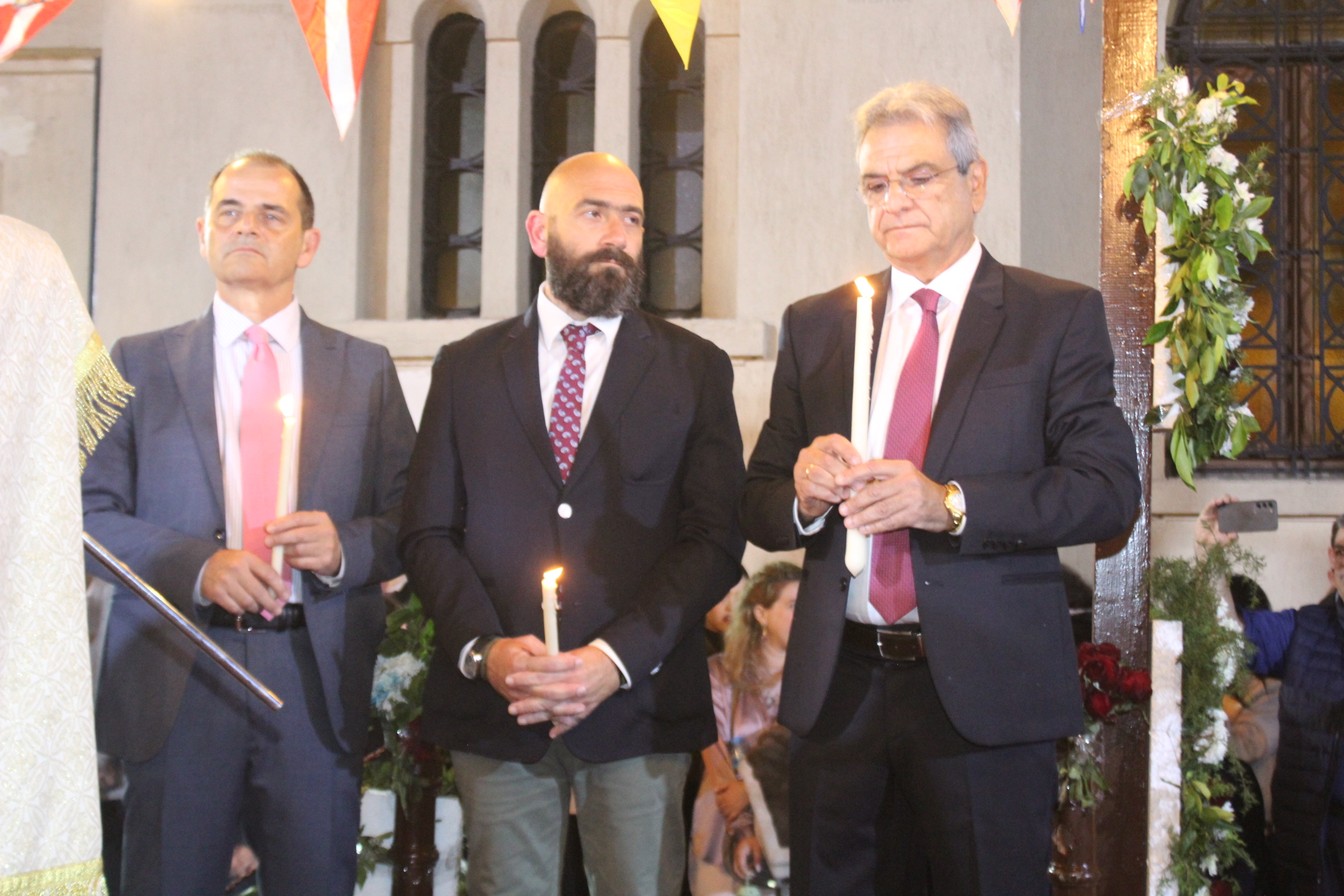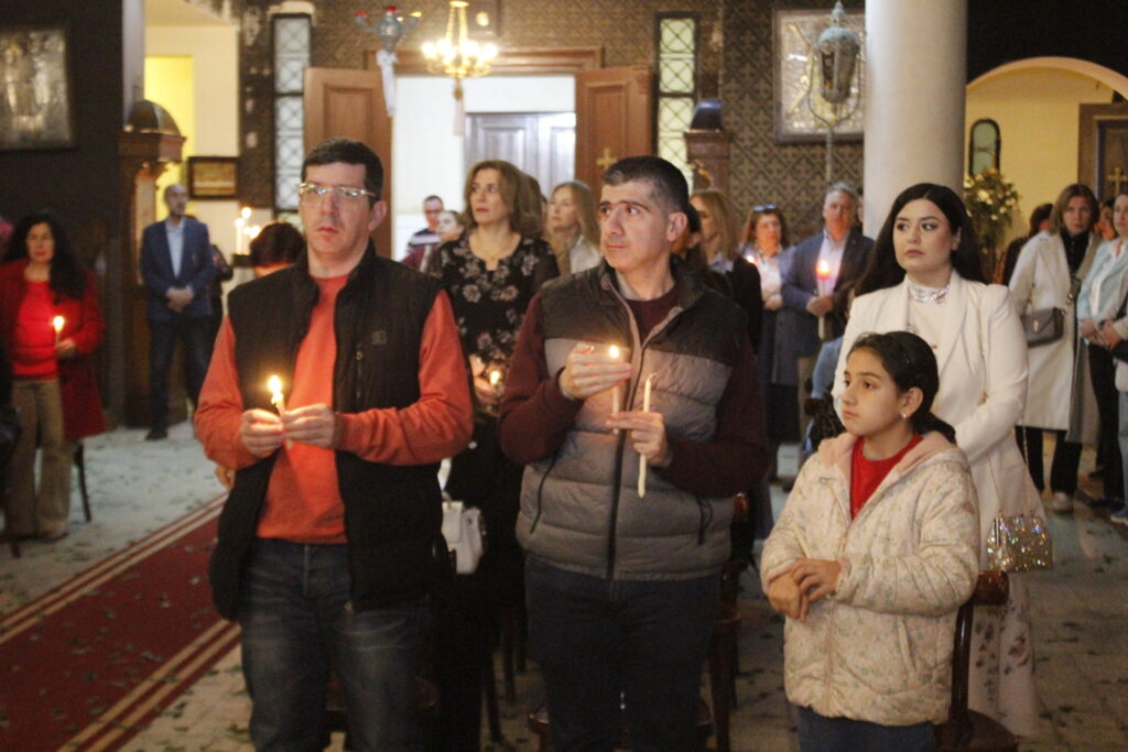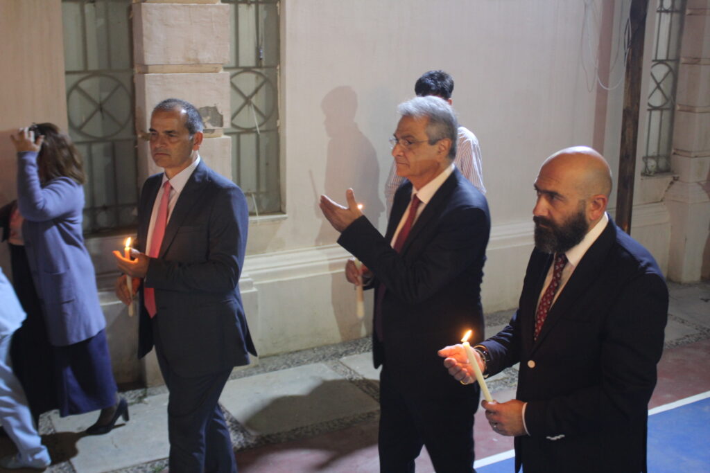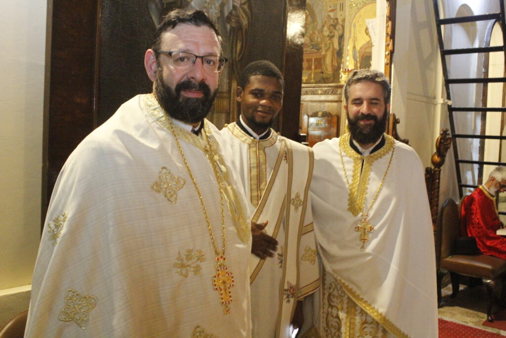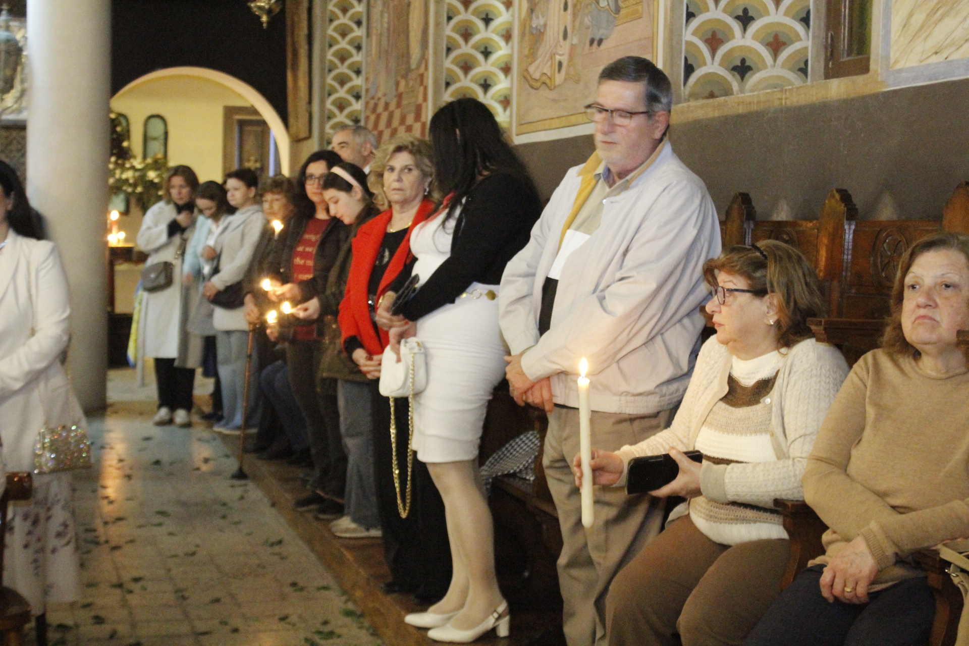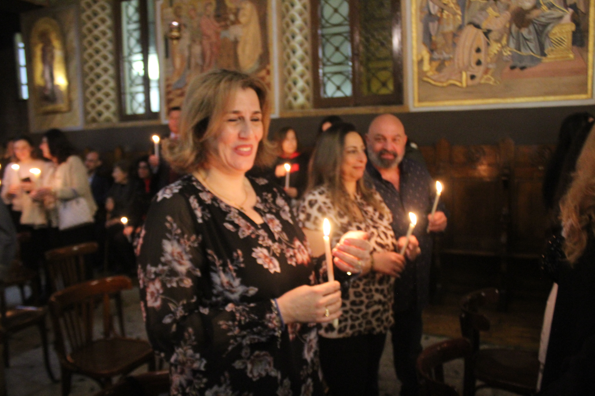 Δίπλα στον Μακαριώτατο, συμπροσευχόντουσαν  ο Προϊστάμενος του Ναού των Ταξιαρχών Πανοσιολογιότατος Αρχιμανδρίτης κ. Αθανάσιος, ο Πανοσιολογιότατος Αρχιμανδρίτης κ. Επιφάνιος, ο αραβόφωνος ιερές π. Σάμυ και άλλοι ιερείς του Πατριαρχείου. Έψαλλαν  με τις εξαίσιες φωνές τους, ο Γενικός Πρόξενος κ. Ιωάννης Πυργάκης και ο εκπαιδευτικός κ. Αλέξανδρος Μπάσης.