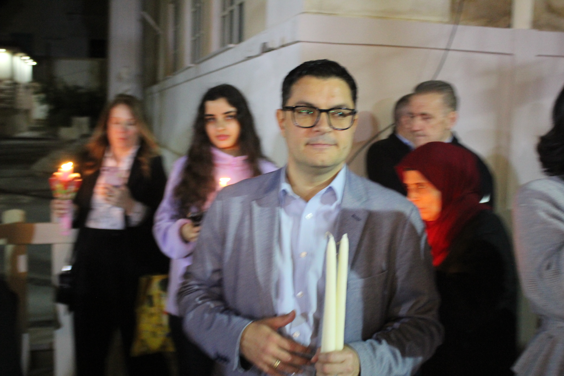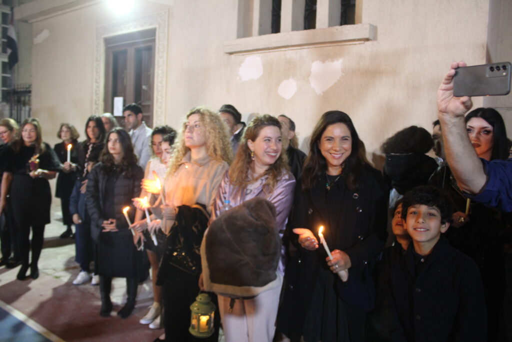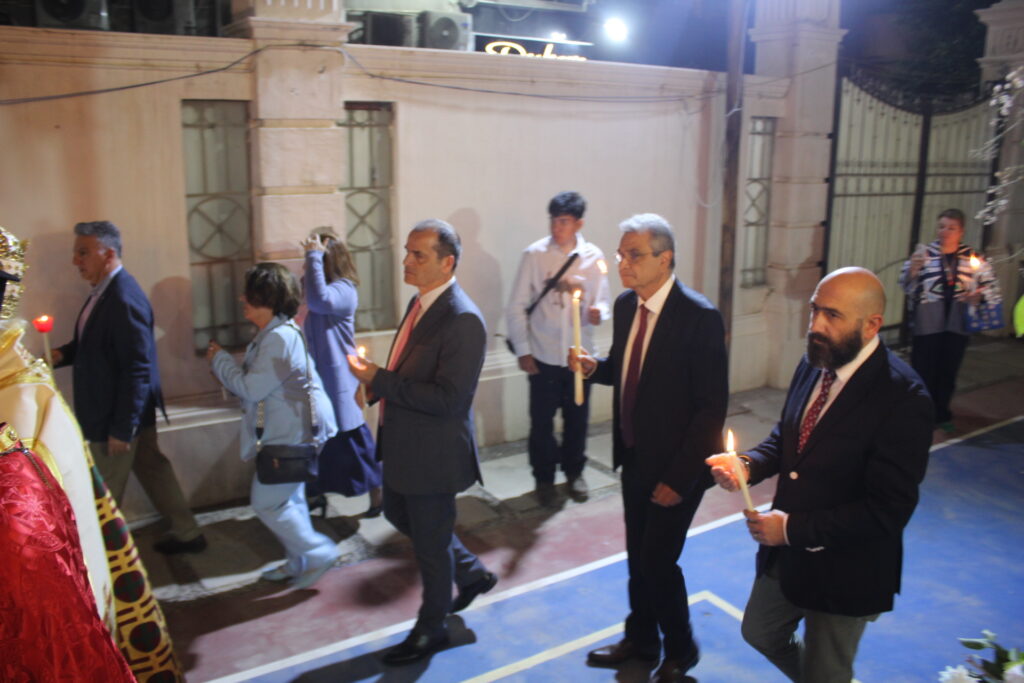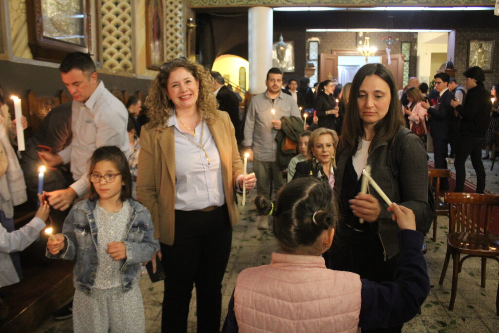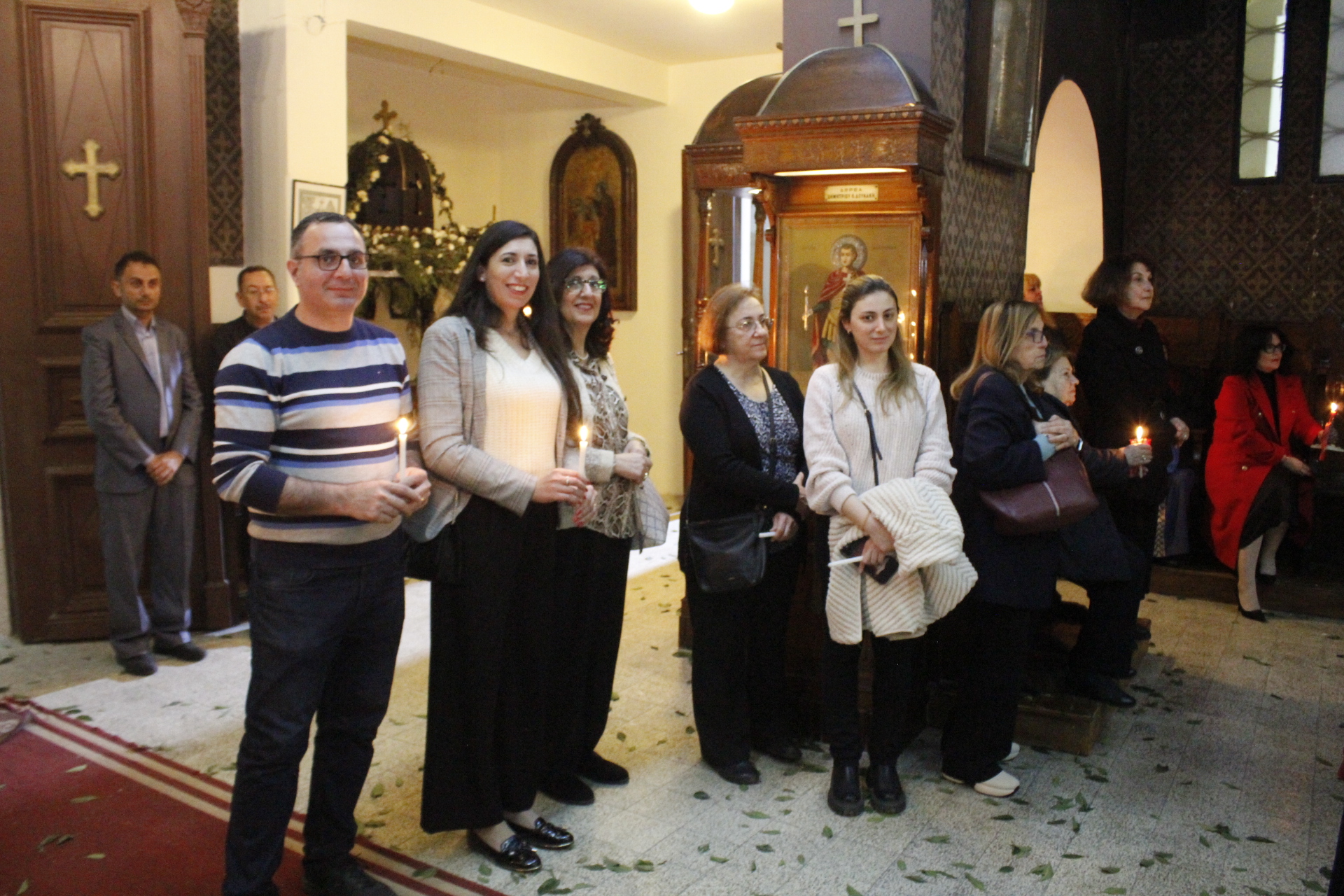 Δίπλα στον Μακαριώτατο, συμπροσευχόντουσαν  ο Προϊστάμενος του Ναού των Ταξιαρχών Πανοσιολογιότατος Αρχιμανδρίτης κ. Αθανάσιος, ο Πανοσιολογιότατος Αρχιμανδρίτης κ. Επιφάνιος, ο αραβόφωνος ιερές π. Σάμυ και άλλοι ιερείς του Πατριαρχείου. Έψαλλαν  με τις εξαίσιες φωνές τους, ο Γενικός Πρόξενος κ. Ιωάννης Πυργάκης και ο εκπαιδευτικός κ. Αλέξανδρος Μπάσης.