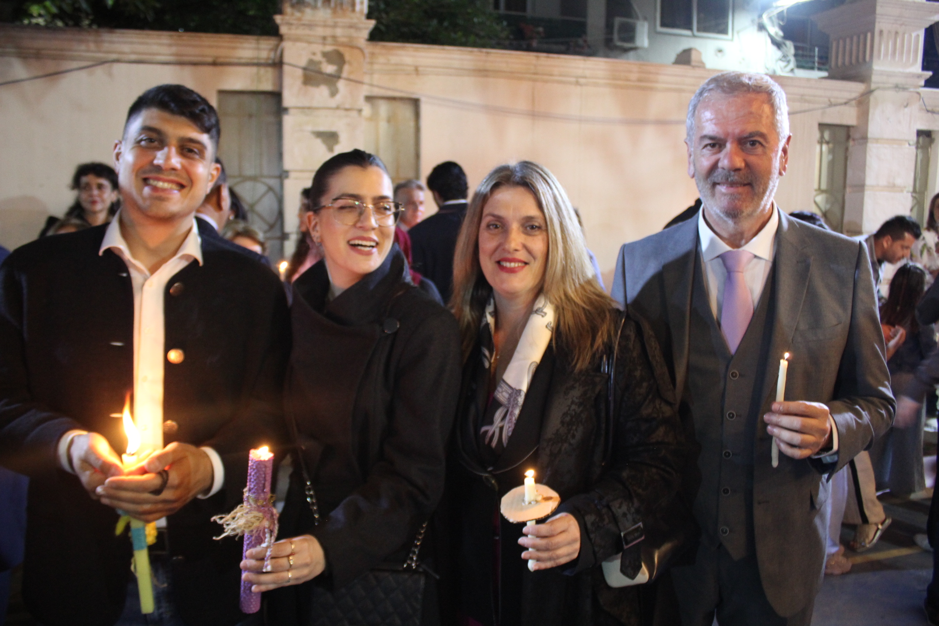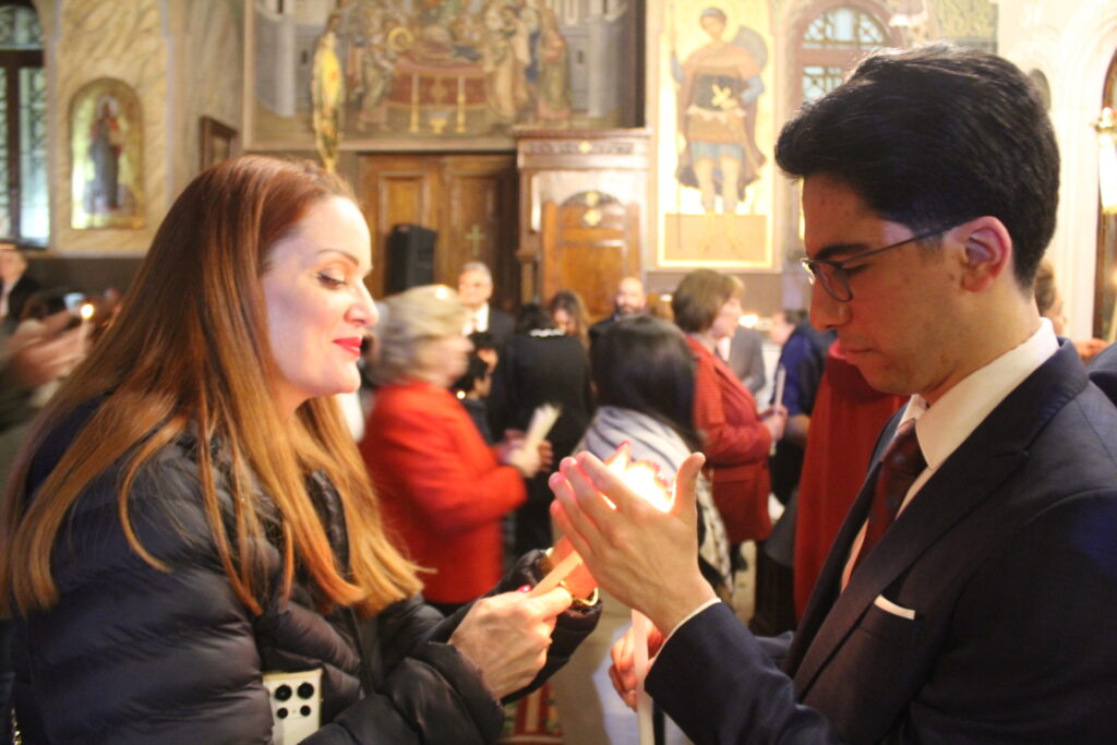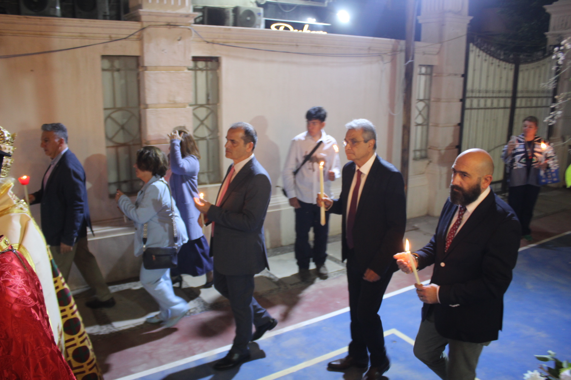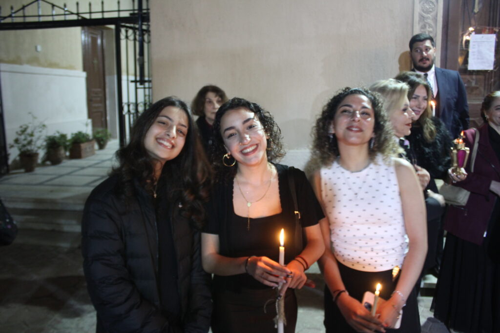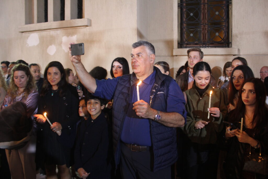 Δίπλα στον Μακαριώτατο, συμπροσευχόντουσαν  ο Προϊστάμενος του Ναού των Ταξιαρχών Πανοσιολογιότατος Αρχιμανδρίτης κ. Αθανάσιος, ο Πανοσιολογιότατος Αρχιμανδρίτης κ. Επιφάνιος, ο αραβόφωνος ιερές π. Σάμυ και άλλοι ιερείς του Πατριαρχείου. Έψαλλαν  με τις εξαίσιες φωνές τους, ο Γενικός Πρόξενος κ. Ιωάννης Πυργάκης και ο εκπαιδευτικός κ. Αλέξανδρος Μπάσης.
