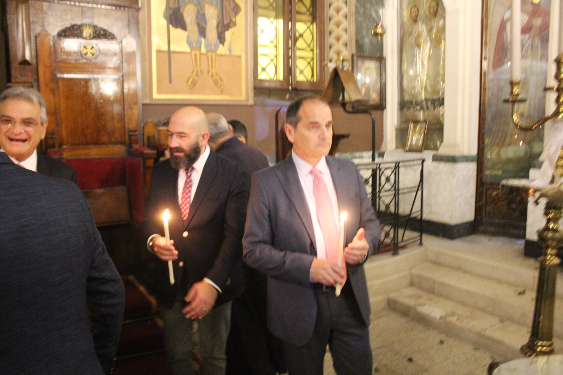 Παρέστησαν εκ των αλεξανδρινών θεσμών, ο Γενικός Πρόξενος της Ελλάδας στην Αλεξάνδρεια κ. Ιωάννης Πυργάκης μετά της συζύγου του Κατερίνας και των τέκνων τους, ο Πρόεδρος της ΕΚΑ κ. Ανδρέας Βαφειάδης, ο Αντιπρόεδρος κ. Ιωάννης Παπαδόπουλος μετά της συζύγου του Ζίζο, των θυγατέρων και εγγονών, ο Αναπληρωτής Γενικός Γραμματέας κ. Δημήτριος Κάβουρας μετά της συζύγου του Μάρτας, ο Διευθυντής κ. Γεώργιος Μπούλος μετά της συζύγου του Αλίν και όλης της οικογενείας προεξαρχούσης της μητρός Αναστασίας που εόρταζε, το στέλεχος της Ελληνικής Πρεσβείας στο Κάΐρο κ. Μιχάλης Μαυρίκος μετά της συζύγου του Σοφίας και σύσσωμης της οικογενείας του, η Διευθύντρια του «Μάννα» και των Κοινοτικών Ξενώνων κα Ελένη Άστωρ, η Υπεύθυνη της Κοινοτικής Κουζίνας κα Σερίν Σακκελάρη μετά της οικογενείας της, πολλοί πιστοί εξ Ελλάδος Αιγυπτιώτες όπως η Επίκουρος Καθηγήτρια του Πανεπιστημίου Ναυπλίου κα. Κατερίνα Ελ Ράχεμπ, ο μουσικός κ. Μανώλης Χναράκης, ο οποίος συνετέλεσε στην εξαιρετική ηχητική καθαρότητα των μικροφώνων με την αρωγή του κοινοτικού κ. Άϊμαν, η συγγραφέας κα Ιωάννα Παπασιδέρη, οι δικές μας, αδελφές Μιχαηλίδη του ΣΑΕ και πολλοί άλλοι πάροικοι και επισκέπτες.