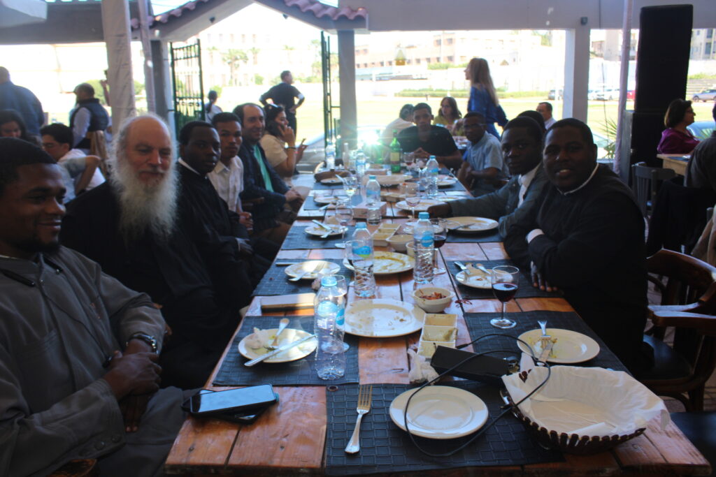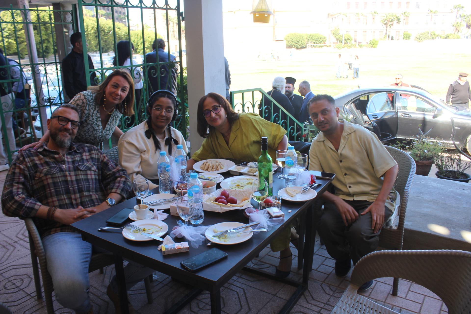 Εκ των θεσμών Αλεξανδρείας παρέστησαν οι κάτωθι: Εκτός του Μακαριωτάτου, συνοδευομένου από τον Πανιερώτατο Μητροπολίτη Ταμιάθεως κ. Γερμανό – Προϊστάμενο της Ιεράς Μονής του Οσίου Σάββα του Ηγιασμένου, τον Θεοφιλέστατο Επίσκοπο Μαρεώτιδος κ. Δαμασκηνό, Πατριαρχικό Επίτροπο, τους Πανοσιολογιότατους Αρχιμανδρίτες κους: Αθανάσιο, Επιφάνιο και Μάρκο, τους αραβόφωνους ιερείς π. Νεκτάριο και π. Σάμυ, τον προσφάτως χειροτονηθέντα Διάκονο κ. Ειρηναίο και όλους τους μαθητές της Πατριαρχικής Σχολής «Άγιος Αθανάσιος», το «παρών» έδωσαν ακόμα οι οι εξής: ο Γενικός Πρόξενος της Ελλάδας στην Αλεξάνδρεια κ. Ιωάννης Πυργάκης μετά της συζύγου του Κατερίνας και των τέκνων τους,  ο προαναφερθείς Πρόεδρος της ΕΚΑ και οικοδεσπότης κ. Ανδρέας Βαφειάδης μετά των παρακάτω συναδέλφων του: Αντιπρόεδρο Α΄ κ. Ιωάννη Παπαδόπουλο μετά της συζύγου του Ζίζο, των θυγατέρων τους και εγγονών, Γενικό Γραμματέα κ. Νικόλαο Κατσιμπρή,  Αντιπρόεδρο Β΄ κ. Νικόλαο Κόπελο, Οικονομικό Επόπτη κ. Εμμανουήλ Τατάκη μετά της συζύγου του Λωρίς,  Αναπληρωτή Γενικό Γραμματέα κ. Δημήτριο Κάβουρα μετά τυς συζύγου του Μάρτα, Κοινοτικό Επίτροπο κ. Ευάγγελο Νεαμονίτη, Διευθυντή κ. Γεώργιο Μπούλο μετά της συζύγου του Αλίν, από τον ΕΝΟΑ και Πτολεμαίο Α΄ η Πρόεδρος κα Λιλίκα Θλιβίτου, η Πρόεδρος του Λυκείου Ελληνίδων Αλεξανδρείας κα Αλίκη Αντωνίου, η αδελφή του Μακαριωτάτου κα Ρούλα Μαχλά, ο Έφορος Διοίκησης των Προσκόπων κ. Άρης Μαρκοζάνης μετά της συζύγου του Τούλας, η Έφορος των Οδηγών κα. Μαίρη Κάβουρα, ο εκπρόσωπος της Κυπριακής Αδελφότητας κ. Πέτρος Λούτσης, η διευθύντρια του Αβερωφείου κα. Αφροδίτη Πεβερέτου, ο καλλιτέχνης κ. Ηλίας Πίτσικας, η εικαστικός και φωτογράφος κα Στεφανία Πισάρα, εκπαιδευτικοί, υπάλληλοι του Προξενείου, εργαζόμενοι στην ΕΚΑ και πλήθος άλλων.