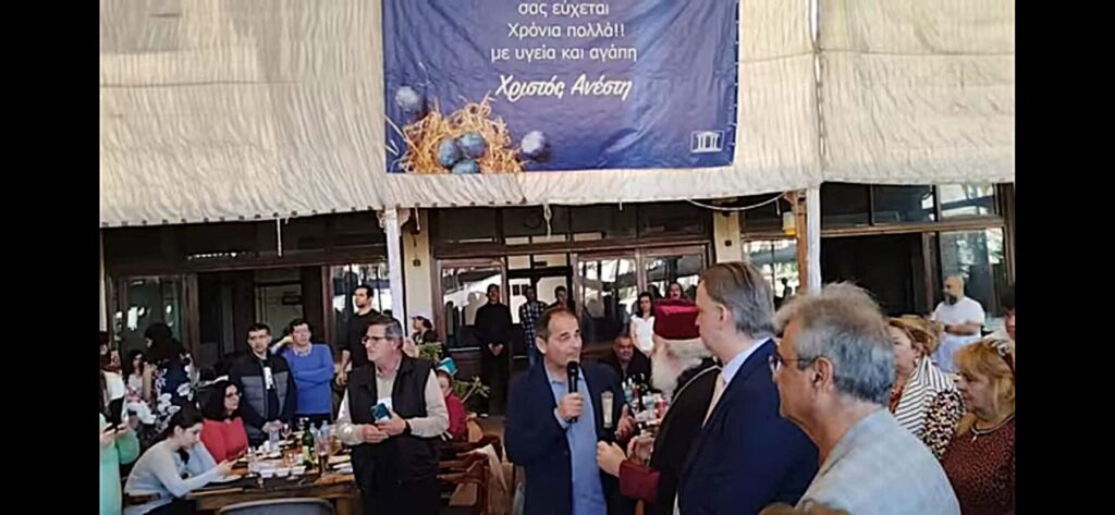 Ο οικοδεσπότης Πρόεδρος κ. Ανδρέας Βαφειάδης,  ανεφέρθη στην σημαντική ημέρα του Πάσχα, τόνισε ότι αισθάνεται ιδιαίτερη συγκίνηση που βλέπει τόσο κόσμο να  έχει κατακλύσει την Ένωση, και επεσήμανε πως παρότι έχουμε μείνει ελάχιστοι,  οφείλουμε να διατηρούμε τα ήθη και έθιμά μας τις παραδόσεις μας και όλα όσα μας κληροδότησαν οι παλαιότεροι, έχουμε την υποχρέωση να τα παραδώσουμε στις επόμενες γενιές.