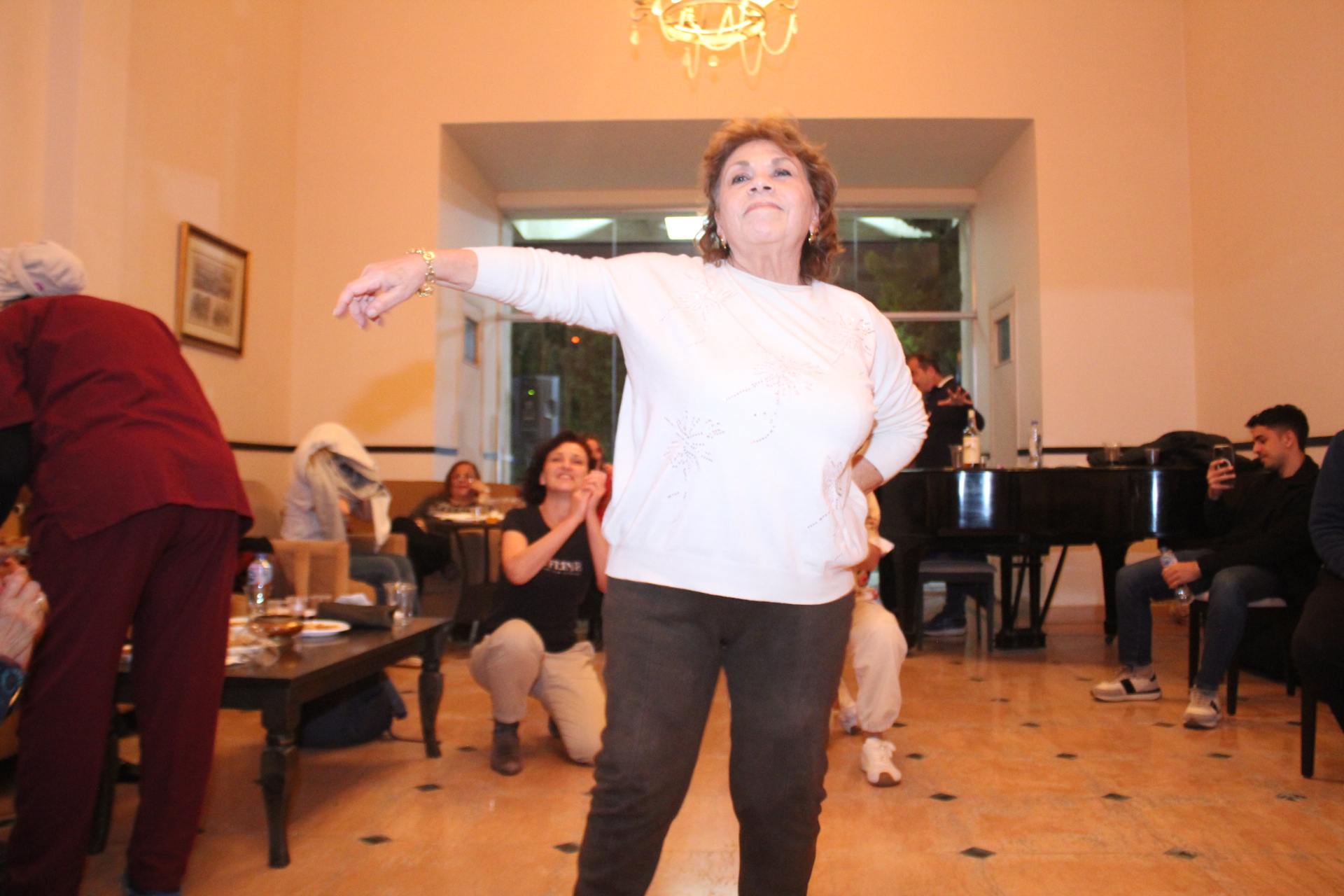 Είναι μεγάλη συγκίνηση να βλέπεις ανθρώπους να στηρίζονται  στο μπαστούνι τους και να χορεύουν, να τραγουδούν και να παρασύρουν ο ένας τον άλλον στο γλέντι που απλόχερα  χαρίζανε οι φίλοι μας μουσικοί. Η αγάπη του κόσμου προς το εξ Ελλάδος συγκρότημα, ήταν τέτοια που ενώ αρχικώς είχε προγραμματιστεί μία ώρα, κράτησε η διάρκεια του μουσικού απογεύματος  ένα τρίωρο. Ξεκίνησε ως μουσικό απόγευμα και κατέληξε μουσική βραδιά. Σημαντικό επίσης για όλους που παρακολουθούσαμε και συμμετείχαμε στη ψυχαγωγία της Τρίτης 14 Απριλίου 2026, ήταν η ανάγκη να εκφραστεί και το προσωπικό του ιδρύματος. Γι’ αυτό όλοι οι εργαζόμενοι και το νοσηλευτικό προσωπικό έγιναν μια παρέα διασκεδάζοντας κι αυτοί με τους διαβιούντες στο «Μάννα», αλλά και τους πάροικους που γέμισαν την αίθουσα υποδοχής.