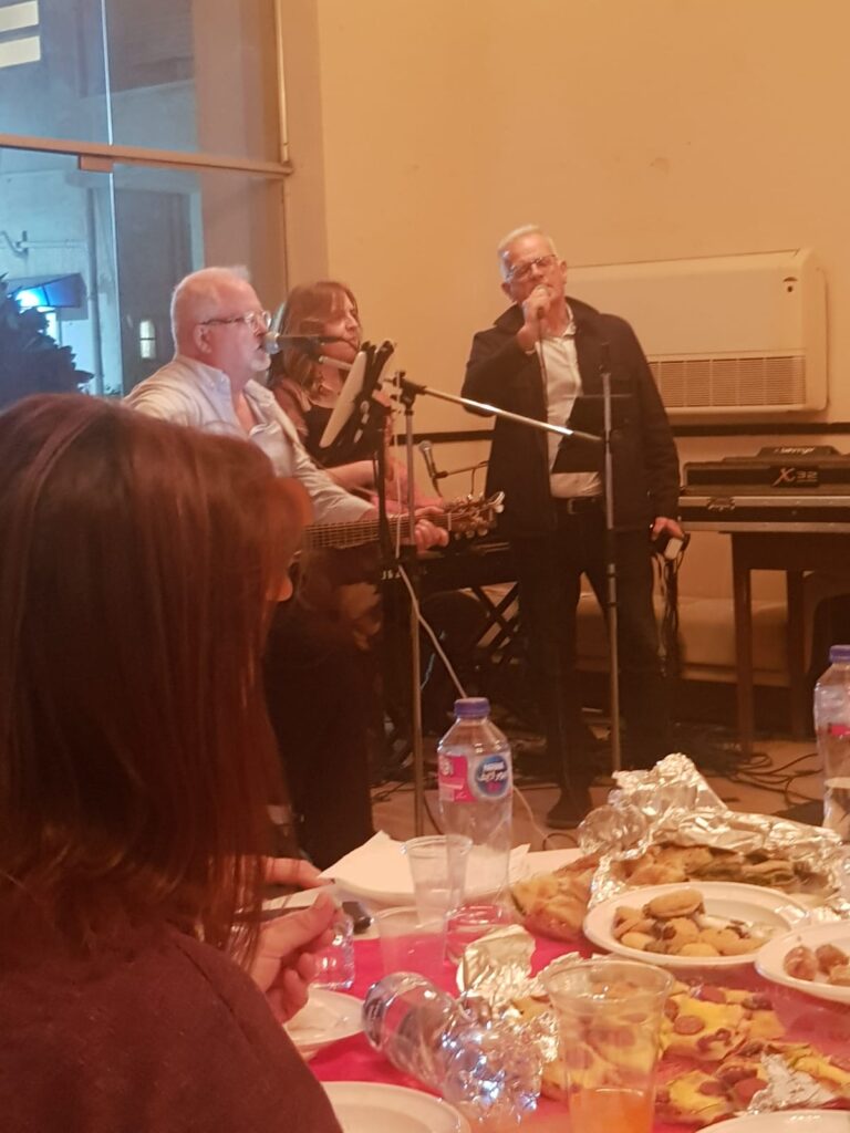 Έτσι και φέτος λοιπόν,  εκτός του εορταστικού γεύματος που παρέθεσε η Κοινότητα την Κυριακή του Πάσχα παρουσία και του Μακαριωτάτου, πραγματοποιήθηκε ένα μουσικό απόγευμα στο σαλόνι του ισογείου, όπου εκεί οι έχοντες τη δυνατότητα να μετακινηθούν, απόλαυσαν το συγκρότημα «turbo music» αποτελούμενο από τους δεινούς  ερμηνευτές και μουσικούς που ξεσήκωσαν την παροικία τη Λαμπρή στο Εντευκτήριο της Κοινότητας. Αυτή τη φορά η Ναυσικά, ο Δημήτρης, ο Αντώνης και ο Μανώλης με ρεπερτόριο αρκετά ρομαντικό και έντεχνο, αλλά προς το τέλος όταν χρειάστηκε και λαϊκό, προσέφεραν μια μοναδική μουσική εκδήλωση που θα μείνει αξέχαστη σε όλους μας.