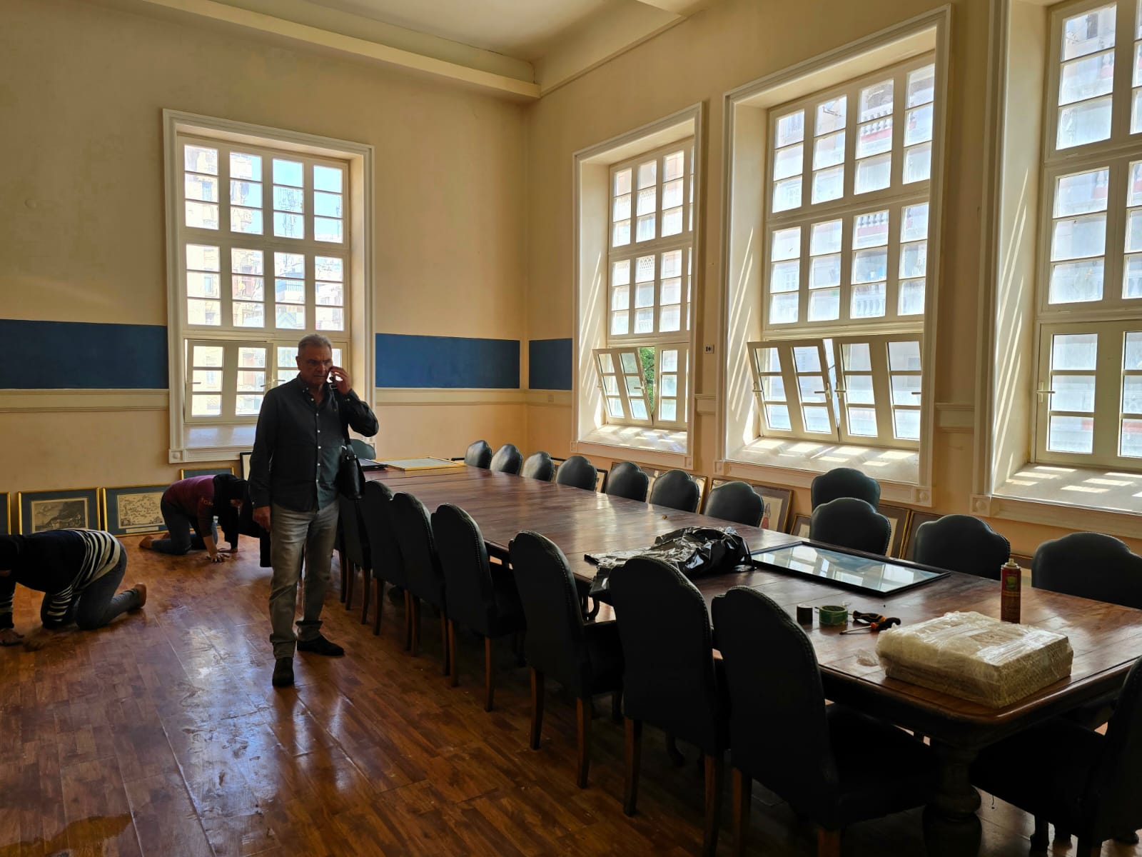 Στις κάτωθι φωτογραφίες που τράβηξε ο Πρόεδρος κ. Ανδρέας Βαφειάδης, εις ανάμνηση του σημαντικού γεγονότος, απεικονίζονται στιγμιότυπα από τις εργασίες της μετακόμισης με τους δύο Αντιπροέδρους Α΄ και Β΄, της ΕΚΑ, κ. Ιωάννη Παπαδόπουλο και κ. Νικόλαο Κόπελο, καθώς και την Πρόεδρο του Εμπορικού Επιμελητηρίου Αλεξανδρείας κα Μάχη Γαβαλά και το Μέλος του Δ.Σ. κ. Δημάρατο Τσάκο.