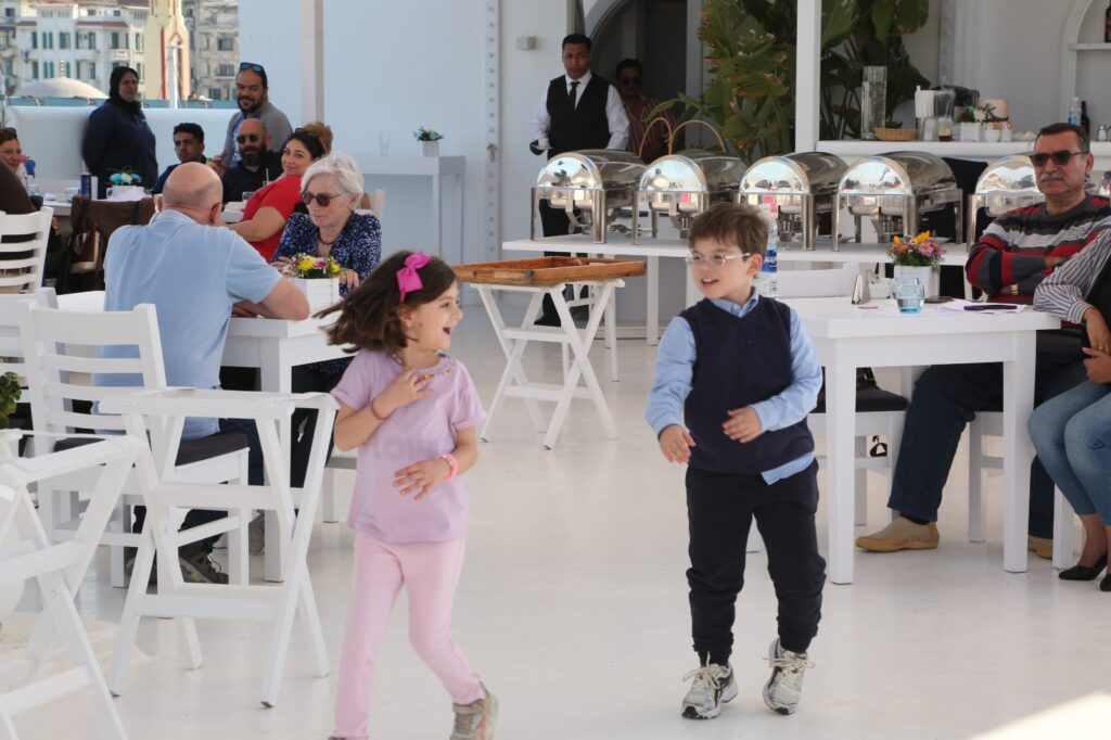 Στην βεράντα του Olive Island – το οποίο λειτουργεί υπό την διοίκηση του επιτυχημένου επιχειρηματία και νυν Κοινοτικού Επιτρόπου κ. Ιωάννη Σιόκα – με την πανοραμική θέα, την Δευτέρα του Πάσχα ο Ελληνικός Ναυτικός Όμιλος Αλεξανδρείας πραγματοποίησε το δικό του εορταστικό τραπέζι.