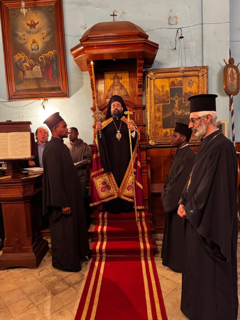 Συμπροσευχήθηκαν ο Πανοσιολογιότατος Αρχιμανδρίτης κ. Μάρκος, ο αραβόφωνος Ιερέας π. Σάμυ και Διάκονοι του Πατριαρχείου Αλεξανδρείας.