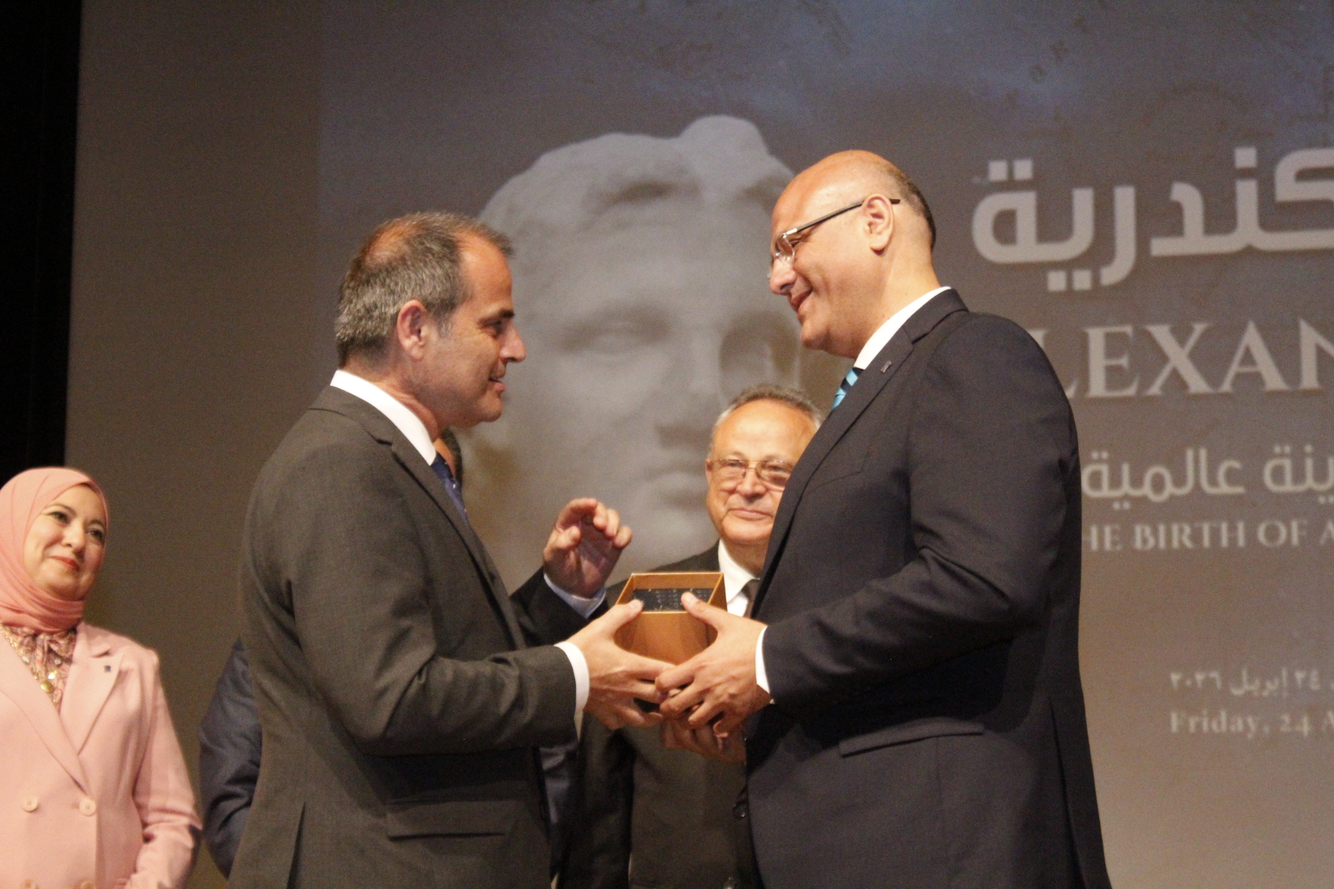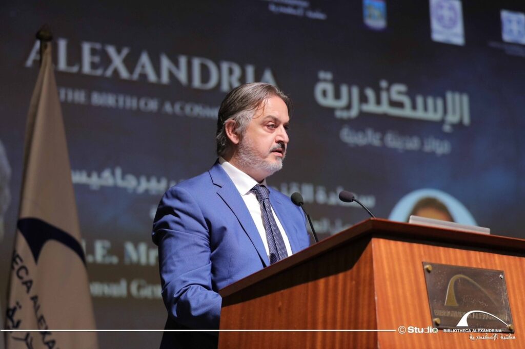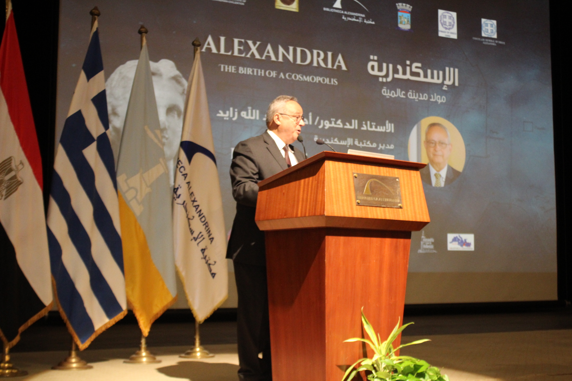 Ο διευθυντής της Βιβλιοθήκης της Αλεξάνδρειας Δρ Ahmed Zayed, επεσήμανε ότι από την ίδρυσή της, η πόλη της Αλεξάνδρειας συνδέεται με ανθρωπιστικό όραμα και πολιτισμένο μοντέλο βασισμένο στη συνάντηση και την ανοιχτότητα. Η Αλεξάνδρεια δεν υπήρξε ποτέ κλειστή πόλη, αλλά παρέμενε πάντα σημείο συνάντησης και γέφυρα μεταξύ πολιτισμών, κάτι που εκδηλώνεται σήμερα σε αυτή την πανηγυρική τελετή που ενώνει την αιγυπτιακή και την ελληνική κληρονομιά σε μια αντανακλαστική εικόνα.