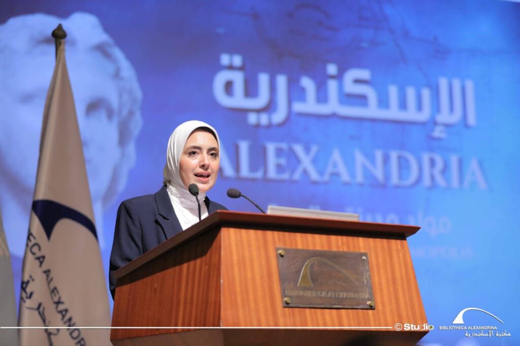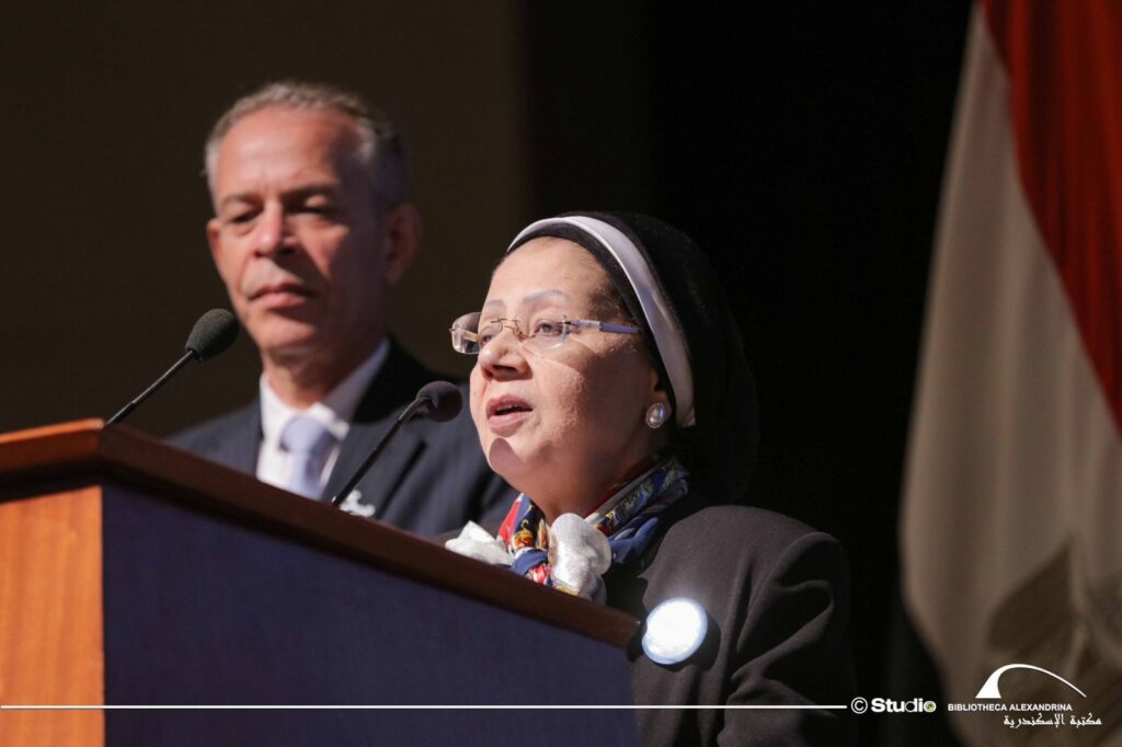 Επιβεβαίωσε ότι με τη φιλοξενία της Βιβλιοθήκης Αλεξανδρείας, όντας μέρος αυτής της εορταστικής γιορτής, επιβεβαιώνει τη δέσμευσή της να αποκαταστήσει αυτόν τον ρόλο της διαφωτισμού, ώστε η Αλεξάνδρεια να παραμείνει όπως ήταν πάντα το επίκεντρο της παραγωγής γνώσης, του διαλόγου μεταξύ πολιτισμών και το είδωλο σύγκλισης διανοητικών οριζόντων. Επίσης να είναι μια διαρκής αναζήτηση ανοχής, αδελφοσύνης, αγάπης και ειρήνης ώστε να συνεχίσει να αποτελεί το κέντρο από το οποίο εκπέμπονται οι ακτίνες του διαφωτισμού και οι εκφάνσεις της ομορφιάς.