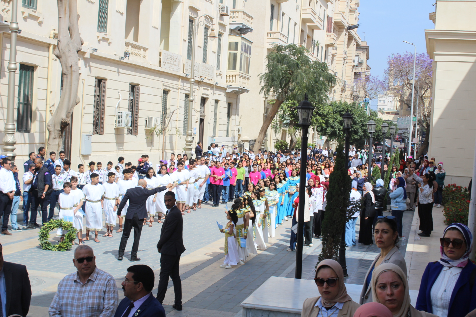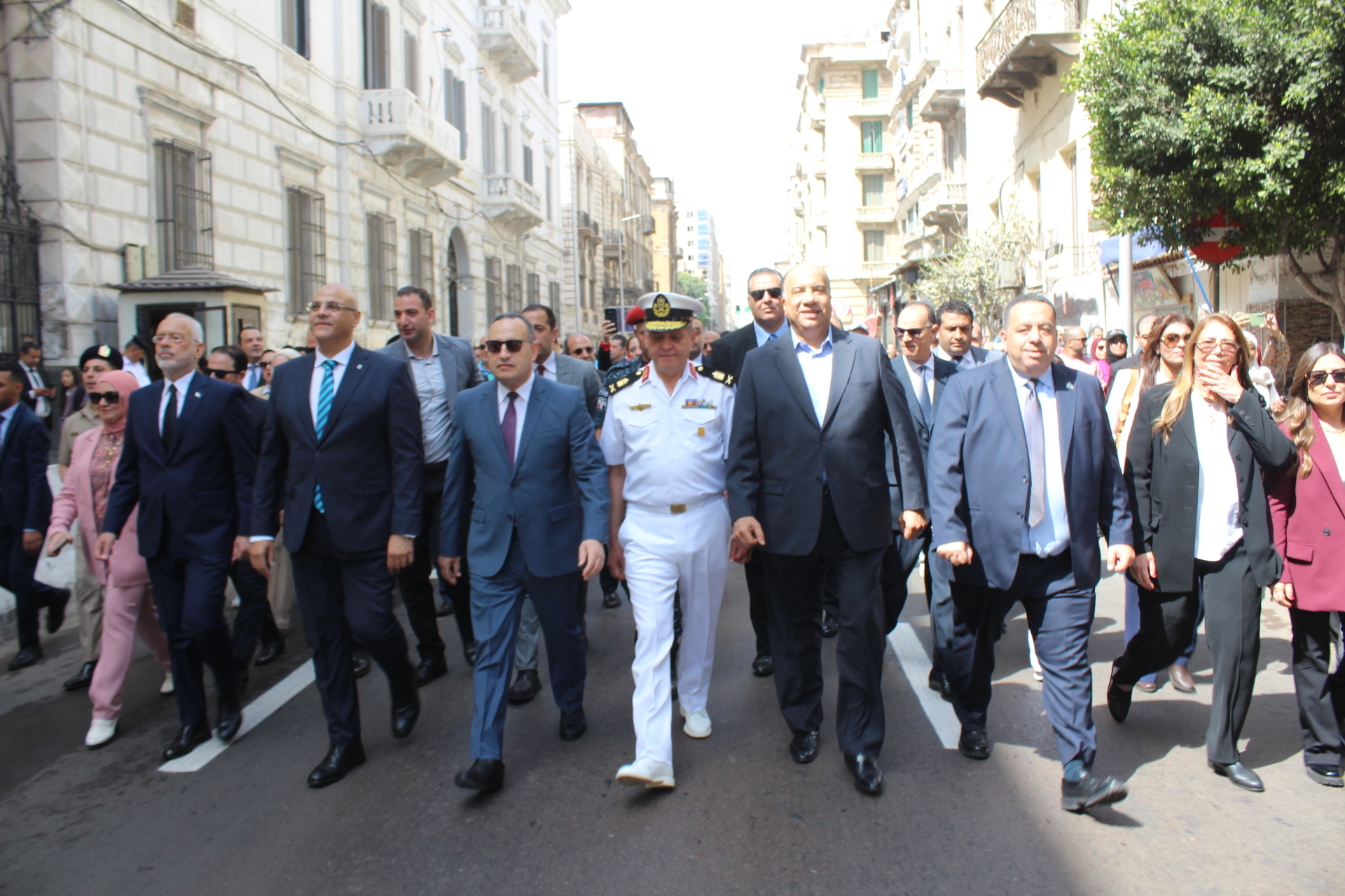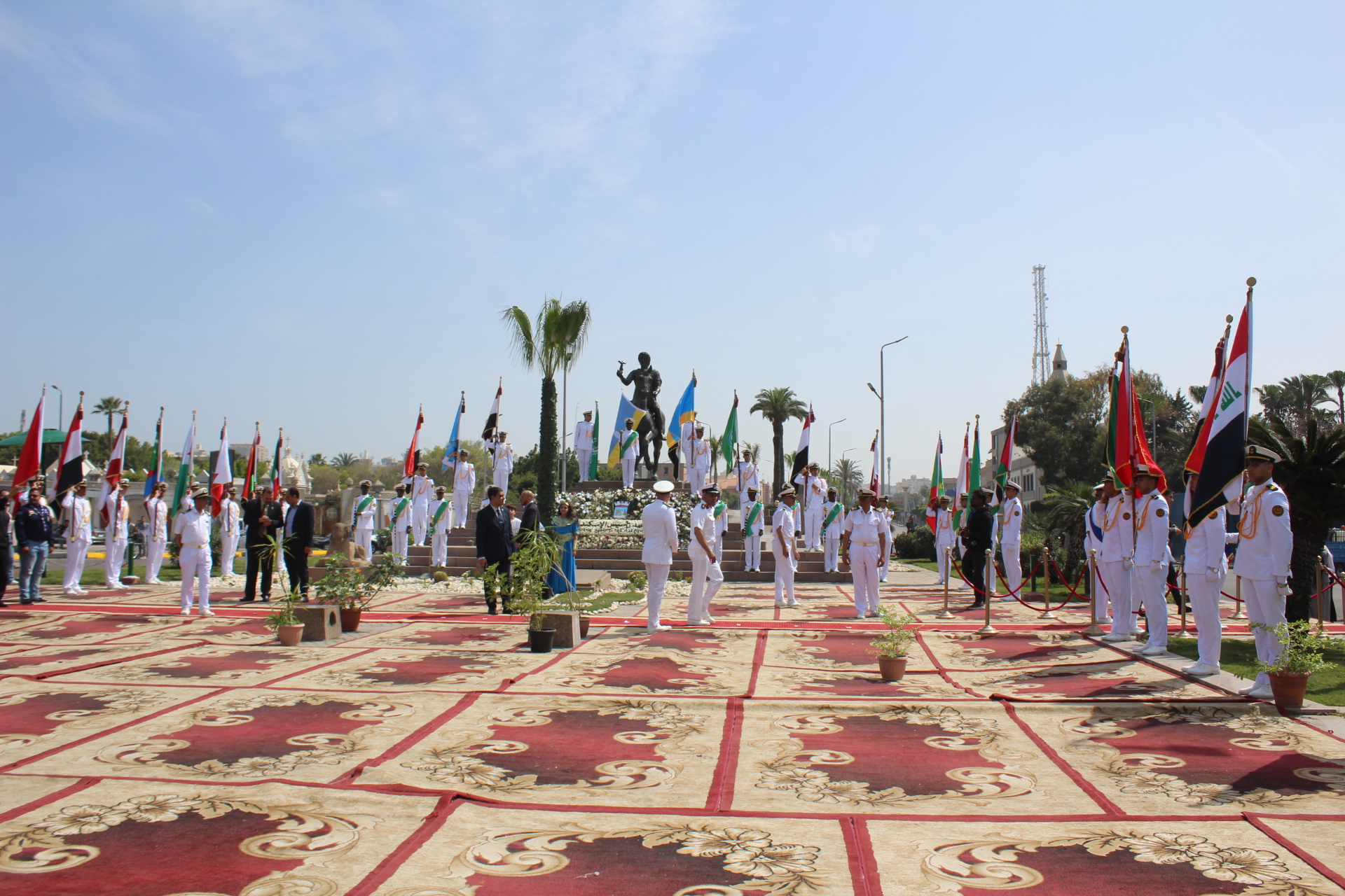 Παρουσία του Δρ Amira Yassen, Αντιπεριφερειάρχη Αλεξανδρείας, του Πρέσβη της Ελλάδας στο Κάϊρο κ. Νικόλαου Παπαγεωργίου, του Γενικού Προξένου της Ελλάδας στην Αλεξάνδρεια, κ. Ιωάννη Πυργάκη, του Διοικητή της Βόρειας Σημαίας Στρατηγού Bahri A.H. George Shawky, του Στρατηγού A.H. Osama Fouzi, Βοηθού Διοικητή της Βόρειας Περιφέρειας, του Προέδρου της Ελληνικής Κοινότητας κ. Ανδρέα Βαφειάδη, της Δρ Μόνα Hadj, Προέδρου της Αρχαιολογικής Εταιρείας στην Αλεξάνδρεια, της κας Καλλιόπης Παπακώστα, Διευθύντριας του Ινστιτούτου Έρευνας Ελληνικού και Αλεξανδρινού Πολιτισμού, διαφόρων Προξένων και πολιτειακών πρεσβευτών, πολλών μελών της Βουλής των Αντιπροσώπων και Γερουσιαστών, πέντε θρησκευτικών ηγετών, υψηλόβαθμων στελεχών της ασφάλειας, εκτελεστικών ηγετών της επαρχίας, καθώς και εκπροσώπων αιγυπτιακών και ελληνικών σωματείων και βέβαια πλήθος κόσμου, η πομπή ξεκίνησε έμπροσθεν του Ελληνορωμαϊκού Μουσείου και μέσω της οδού Φουάντ, κατέληξε στο άγαλμα του Μεγάλου Αλεξάνδρου στην πλατεία Ανθορολογιού.