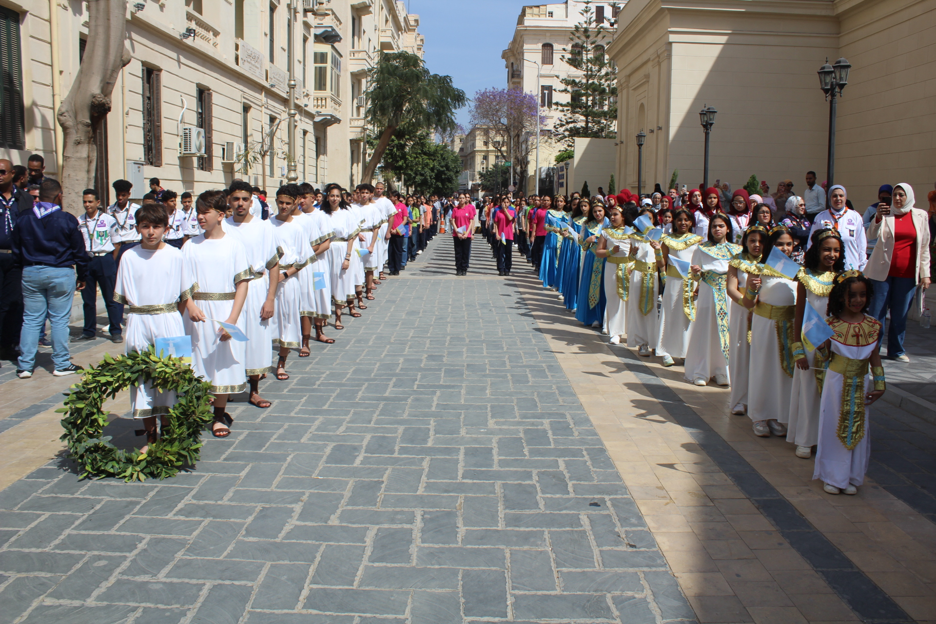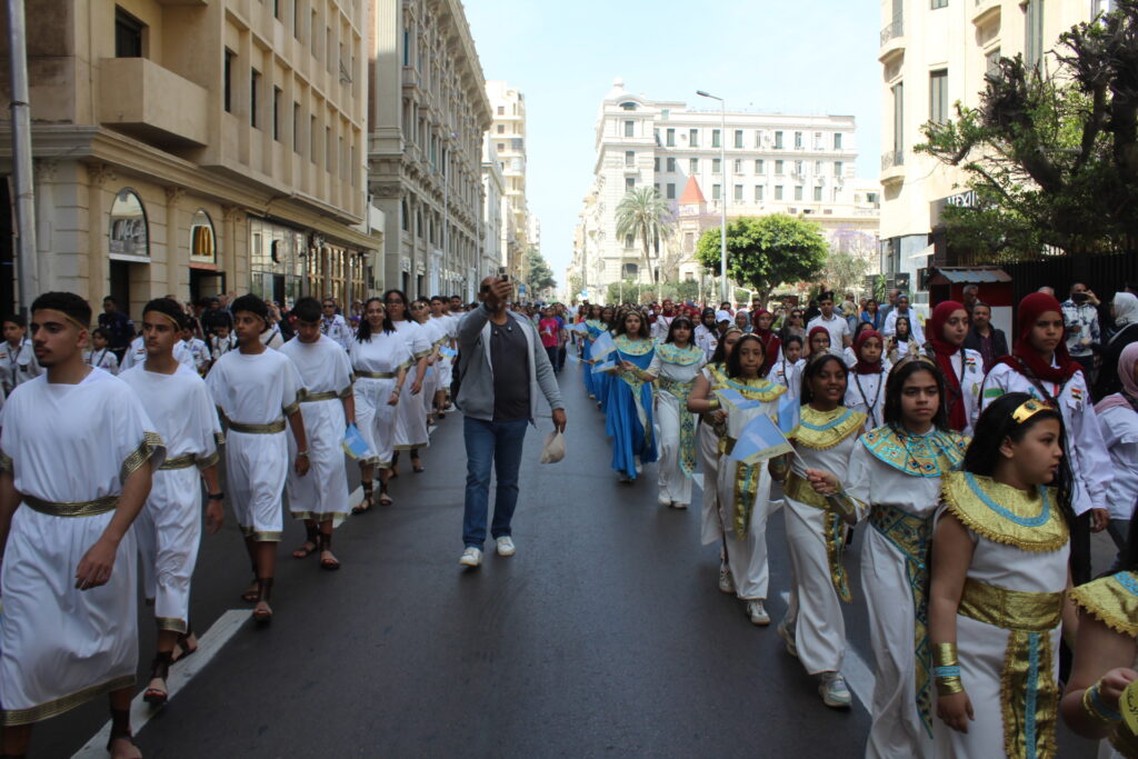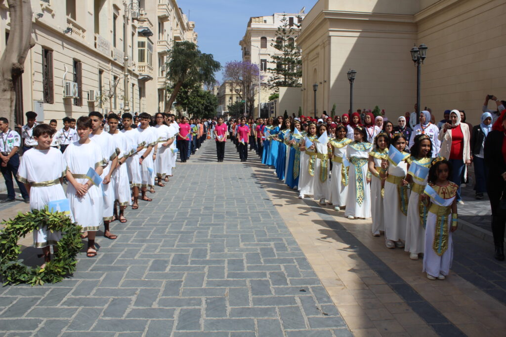 Στην παρέλαση συμμετείχαν Αιγυπτιόπουλα και Ελληνόπουλα, παιδιά και έφηβοι μαθητές, με παραδοσιακές φορεσιές και κρατώντας τη σημαία της Αλεξάνδρειας, σε μια συμβολική έκφραση της εγκαθίδρυσης των πρώτων κατοίκων της, με τη σημειολογική απεικόνιση της πόλης που δημιούργησε την αρμονία ανάμεσα σε διαφορετικούς πολιτισμούς, ενώ παράλληλα γέννησε και φιλοξένησε πλήθος εκδηλώσεων, καλλιτεχνικών παραστάσεων και εκθέσεων που αντικατοπτρίζουν την πολιτιστική κληρονομιά της πόλης.