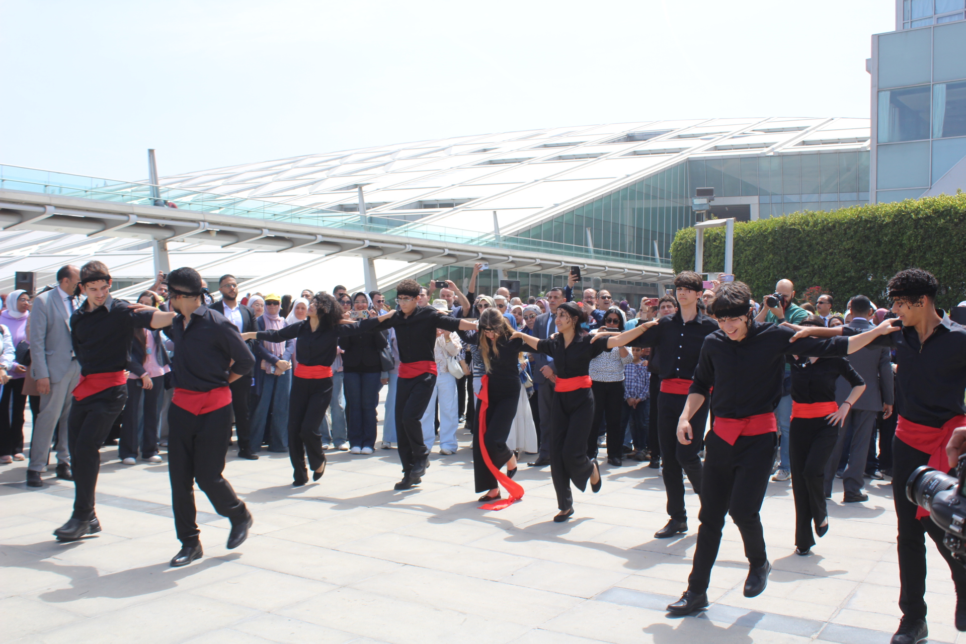 Μετά την υπόκλιση Μνήμης στο άγαλμα του ιδρυτού της Πόλης, Μεγαλέξανδρου, άπαντες κατευθύνθηκαν στην Βιβλιοθήκη Αλεξανδρείας, όπου εκεί οι μαθητές του Αβερωφείου μαζί με των αιγυπτιακών σχολείων, κατενθουσίασαν τους φίλους που είχαν κατακλύσει τον προαύλιο χώρο της Βιβλιοθήκης. Υπό την καθοδήγηση της εκπαιδευτικού τους κας Μπέτυς Ζέρβα, τα παιδιά μας χόρεψαν εξαιρετικά ελληνικούς χορούς, τη δε στιγμή που ακούστηκε η «Φραγκοσυριανή» ξεσήκωσαν όλους τους παριστάμενους αξιωματούχους και μη, οι οποίοι επιδοκίμαζαν ένθερμα τους χορευτές Αβερωφίτες με παλαμάκια.