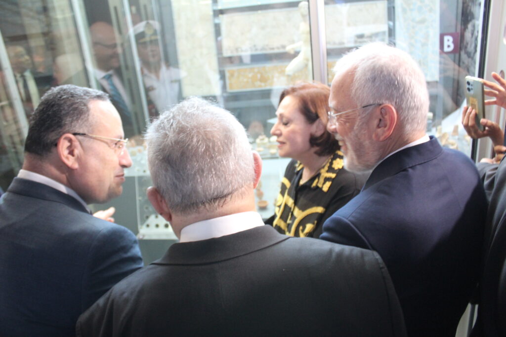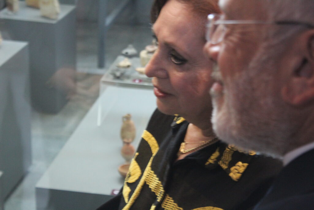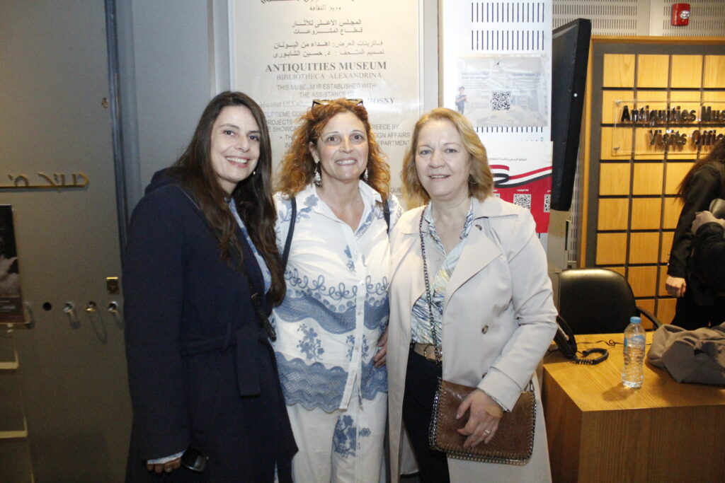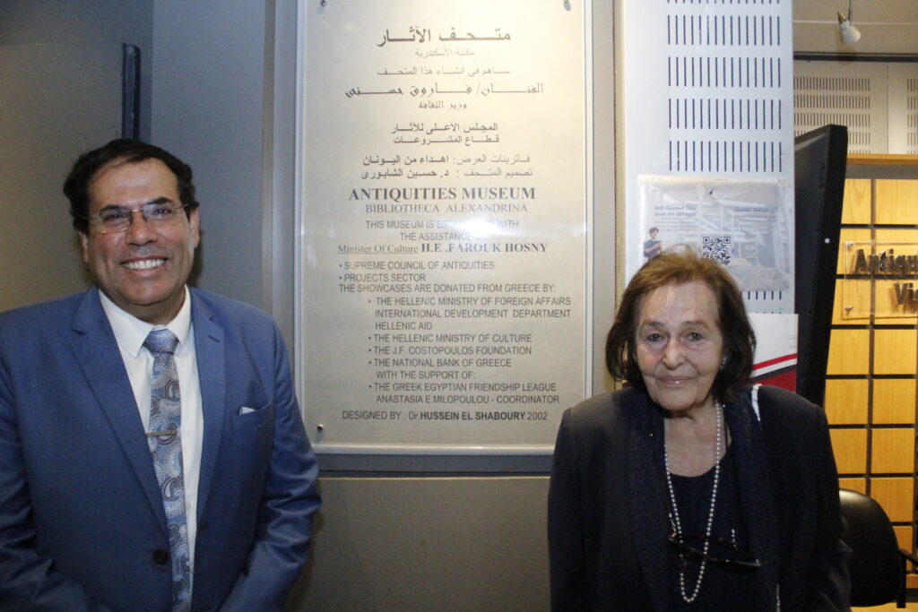 Ακολούθησε η Έκθεση της κας Καλλιόπης Παπακώστα, στο ισόγειο και συγκεκριμένα στο Μουσείο της Βιβλιοθήκης, όπου εκεί μετά την κοπή της κορδέλας από την ίδια, τον Κυβερνήτη και τους υψηλότατους αξιωματούχους της Αλεξάνδρειας, η οικοδέσποινα αρχαιλόγος τους ξενάγησε στο ανακαλυφθέν προ ετών άγαλμά της, το οποίο εκτίθεται στο ανακαινισμένο Ελληνορωμαϊκό και ένεκα της Επετείου μεταφέρθηκε στην Βιβλιοθήκη.