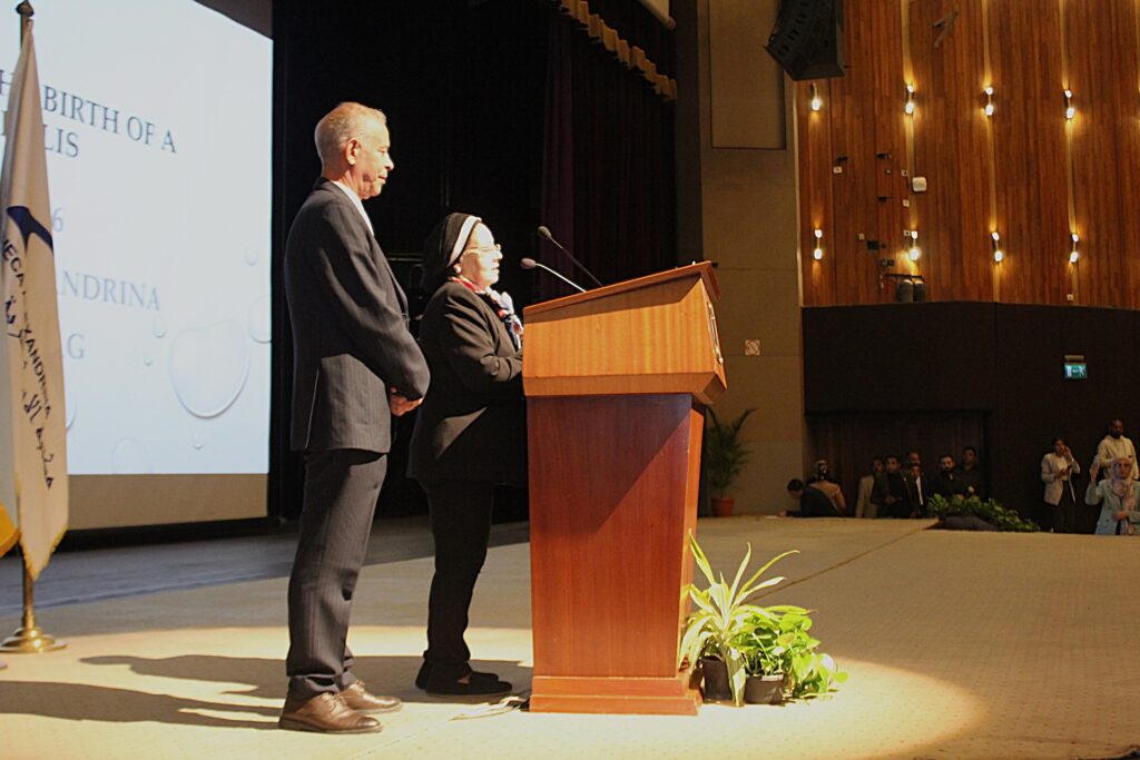 Στην ομιλία της, η Δρ Mona Haj ευχαρίστησε τον Δρ Subhi Ashour, ιδιοκτήτη της ιδέας του εορτασμού της ίδρυσης της Αλεξάνδρειας, και όλους τους διοργανωτές και χορηγούς, ιδιαίτερα το Κυβερνείο της Αλεξάνδρειας για την οργάνωση της τελετής.