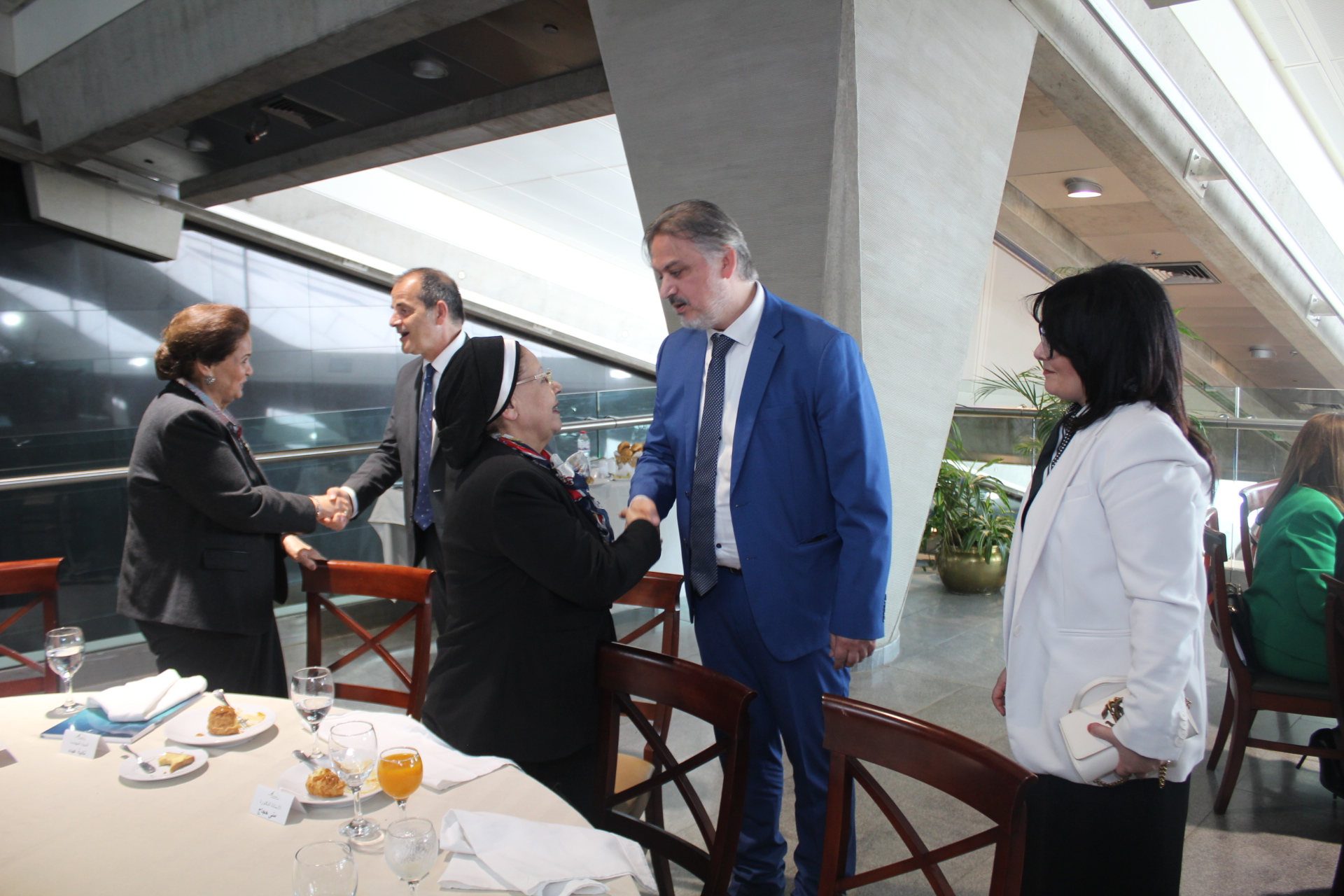 Ακολούθησε γεύμα που παρετέθη στην αίθουσα των επίσημων δεξιώσεων της Βιβλιοθήκης προς τους εκπροσώπους των θεσμών της εορτάζουσας Αλεξάνδρειας.