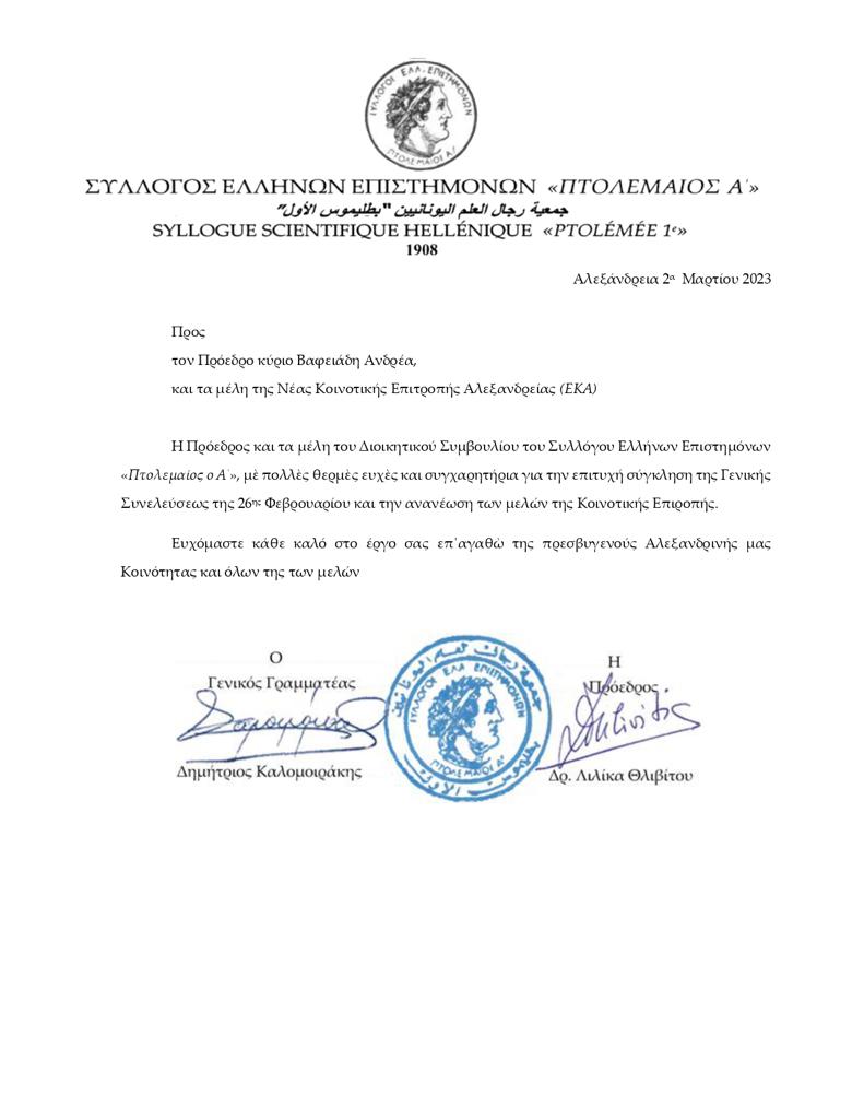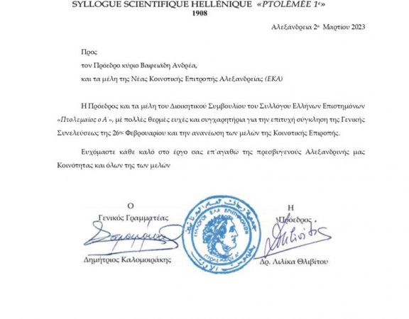 Η Ελληνική Κοινότητα Αλεξανδρείας, συντετριμμένη στο σύνολό της, απ’ το τραγικό γεγονός που συγκλονίζει ολόκληρο τον ελληνικό λαό, συμμετέχει στο τριήμερο εθνικό πένθος με τις σημαίες […]