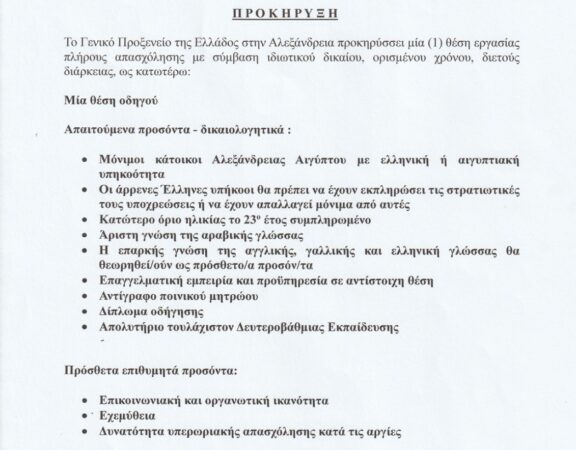 Ο Έλληνας Πρέσβυς στο Κάϊρο κ. Νικόλαος Ππαγεωργίου, προσκαλεί σύμπασα την Ελληνική Παροικία στην Αίγυπτο, στην τελετή επιίδοσης των παρασήμων που έχουν επιδοθεί από την Πρόεδρο […]