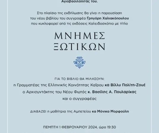 ΔΕΛΤΙΟ ΤΥΠΟΥ ΣΑΕ Ο Σύνδεσμος Αιγυπτιωτών Ελλήνων σας προσκαλεί στο Εντευκτήριό του, 3ης Σεπτεμβρίου 56, 1ος όροφος την Παρασκευή 23 Φεβρουαρίου 2024, ώρα 18.30 να παρακολουθήσετε […]