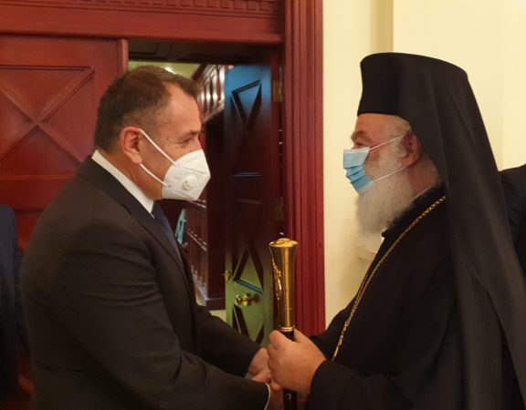Με το «Τη Υπερμάχω» και την ανάκρουση των Εθνικών Ύμνων Ελλάδας και Αιγύπτου, ο Πατριάρχης Αλεξανδρείας και πάσης Αφρικής κ.κ. Θεόδωρος υποδέχτηκε σήμερα το μεσημέρι στην […]