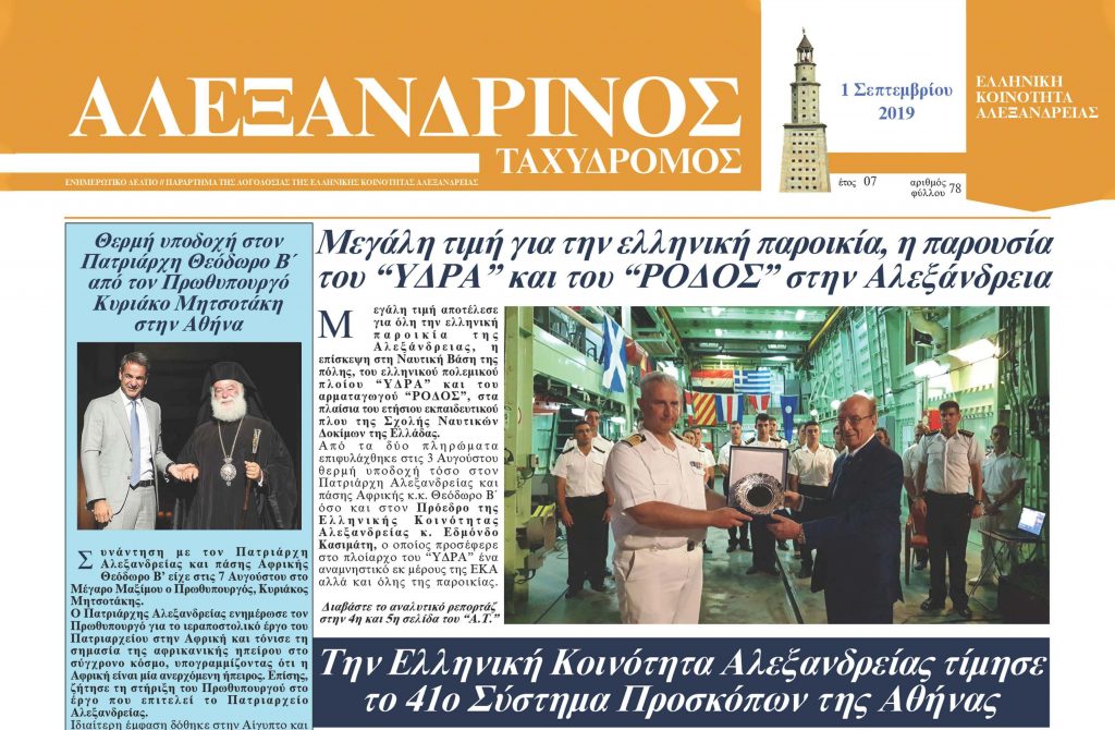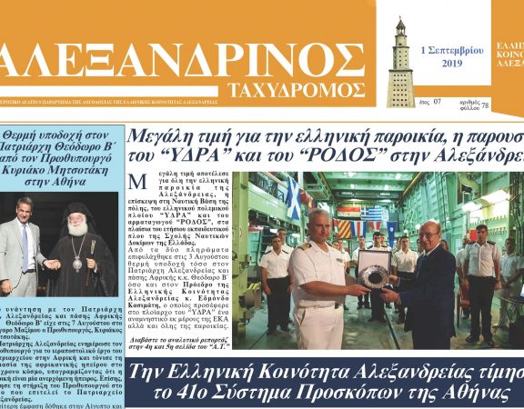 Με πλούσια ύλη κυκλοφόρησε το νέο φύλλο του «Αλεξανδρινού Ταχυδρόμου», της μηνιαίας εφημερίδας της Ελληνικής Κοινότητας Αλεξανδρείας. Στην ύλη των οκτώ (8) έγχρωμων σελίδων, μπορείτε να […]