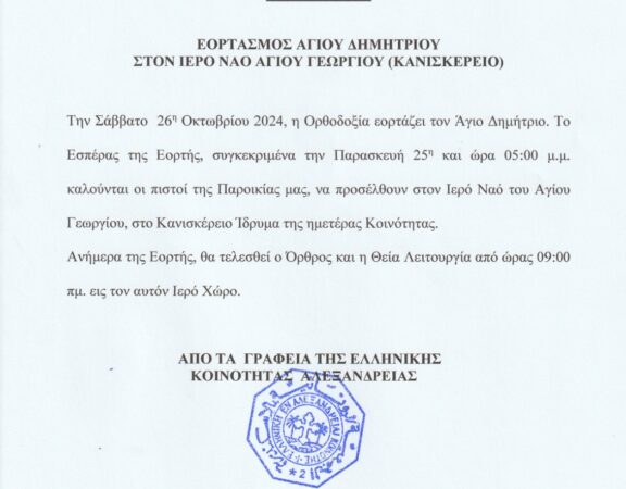 Τα νήπια, οι έφηβοι, οι εκπαιδευτικοί, οι γονείς και οι θεσμικοί εκπρόσωποι της παροικίας την 25η Οκτωβρίου 2024 ημέρα Παρασκευή και ώρα 10 – 12 το […]