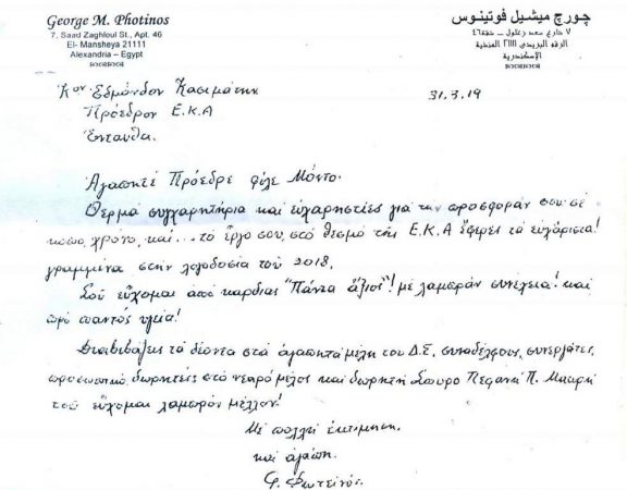 Μία συγκινητική επιστολή φέρνει στη δημοσιότητα σήμερα η ιστοσελίδα της Ελληνικής Κοινότητας Αλεξανδρείας. Πρόκειται για την επιστολή που απέστειλε ένα από τα πιο σημαίνοντα στελέχη της […]