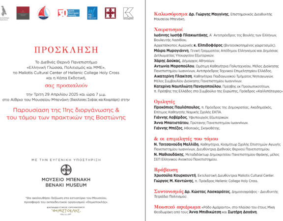 ΣΤΟ ΜΟΥΣΕΙΟ ΜΠΕΝΑΚΗ ΠΑΡΟΥΣΙΑΖΕΤΑΙ ΤΟ ΠΡΟΓΡΑΜΜΑ ΤΗΣ ΒΟΣΤΩΝΗΣ ΤΟΥ ΔΙΕΘΝΟΥΣ ΘΕΡΙΝΟΥ ΠΑΝΕΠΙΣΤΗΜΙΟΥ Στις 29 Απριλίου παρουσία σημαντικών προσωπικοτήτων Στο Μουσείο Μπενάκη και με τη συμμετοχή σημαντικών […]