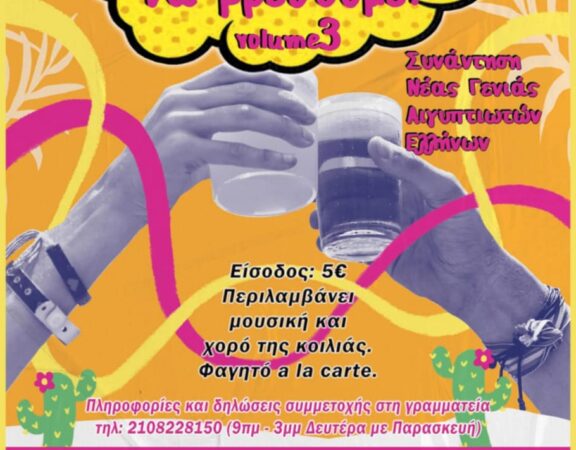Ο Σύνδεσμος Αιγυπτιωτών Ελλήνων, διοργανώνει και φέτος, για 3η συνεχόμενη χρονιά, στο φιλόξενο εντευκτήριό του, την εκδήλωση που έλαβε μεγάλη επιτυχία και έγινε πλέον θεσμός ” […]